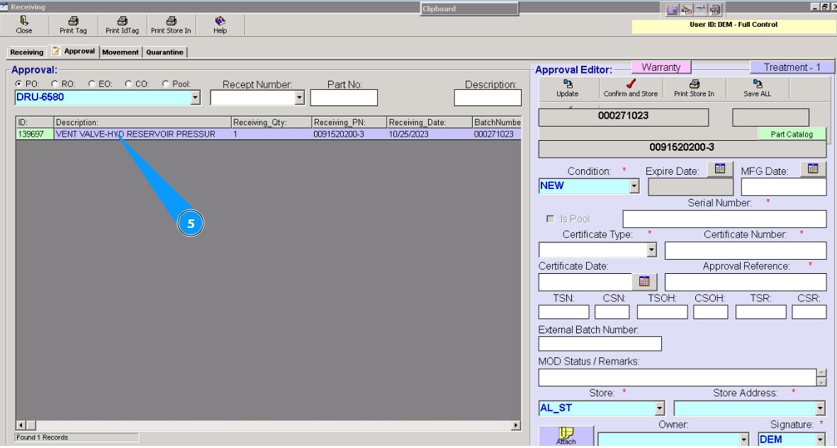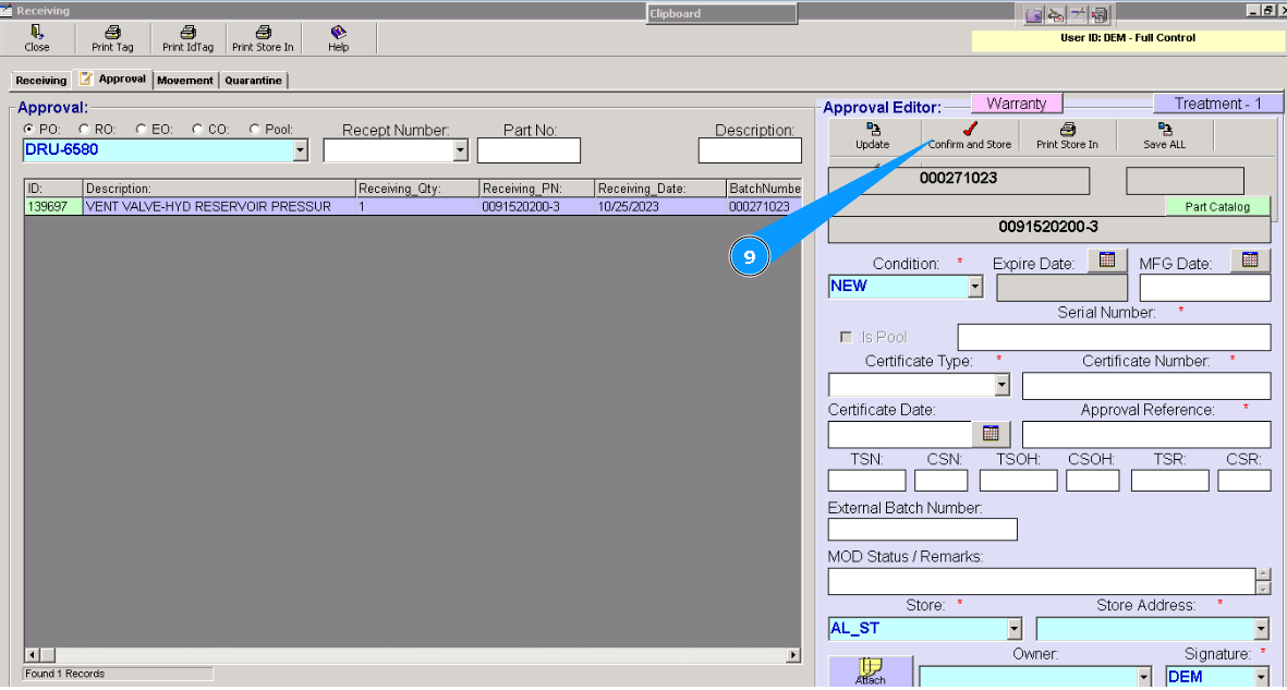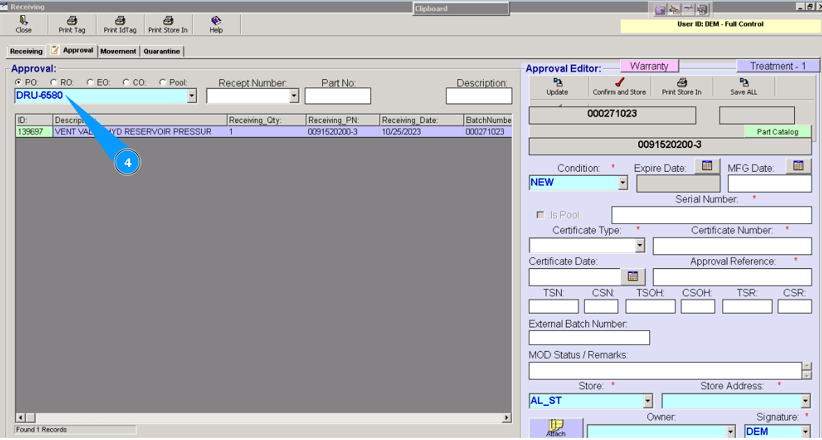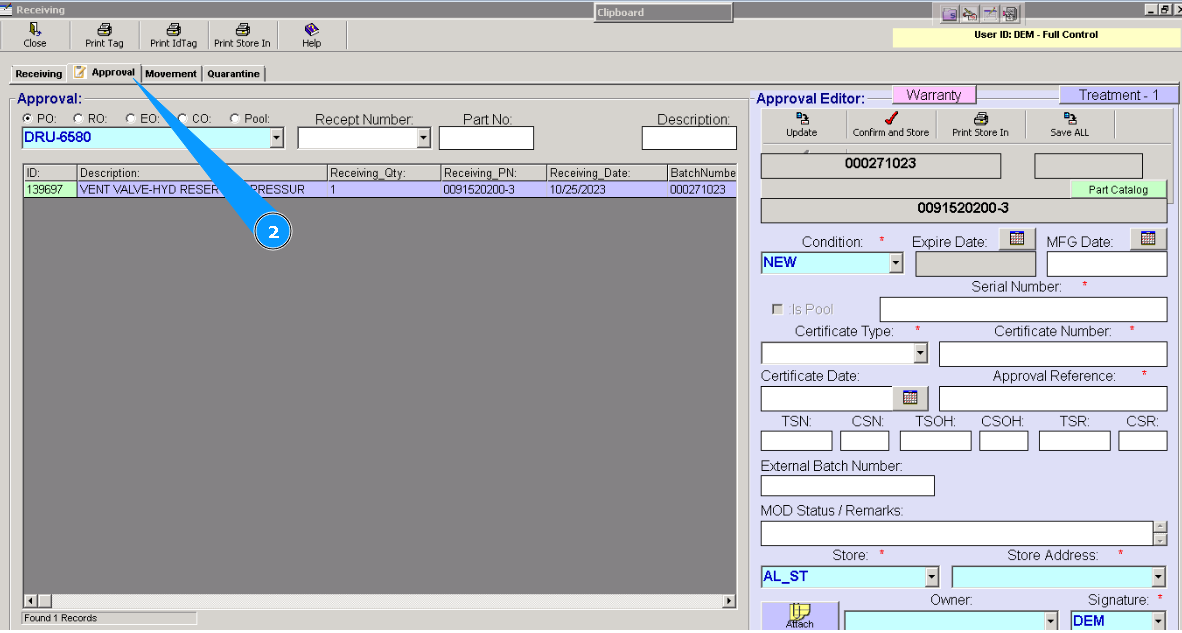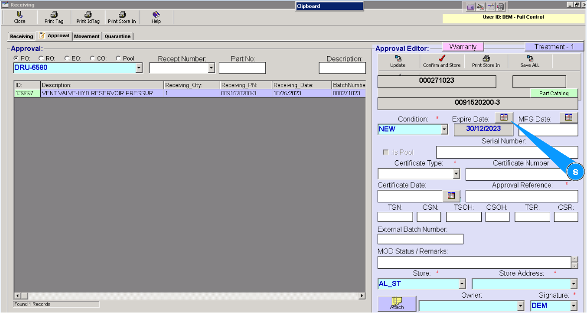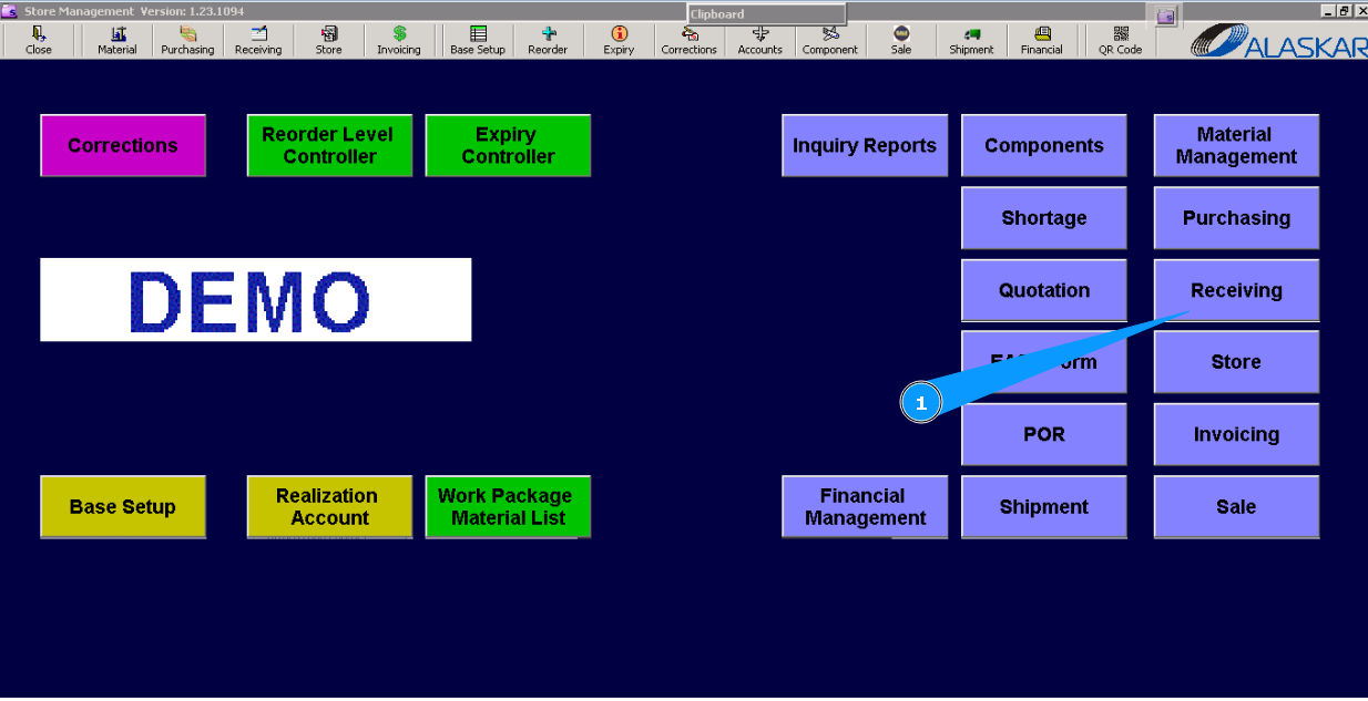 1. For setting the criteria Expire Date, necessary during the receiving process, go to submodule "Receiving".