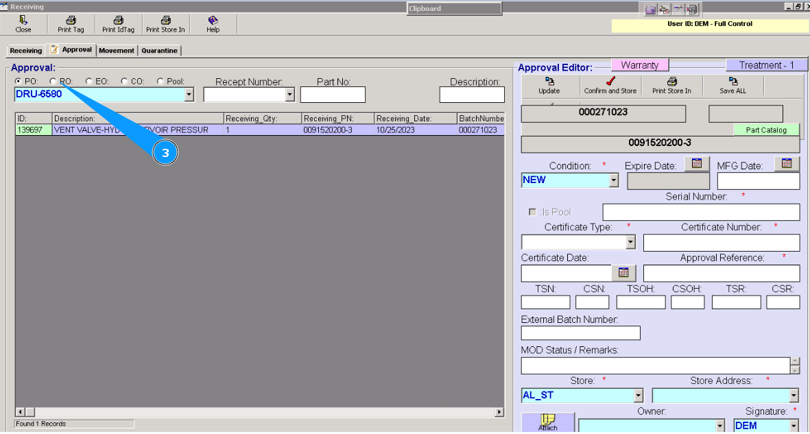 3. Select one of the following order types: PO, RO, EO, CO, or Pool.