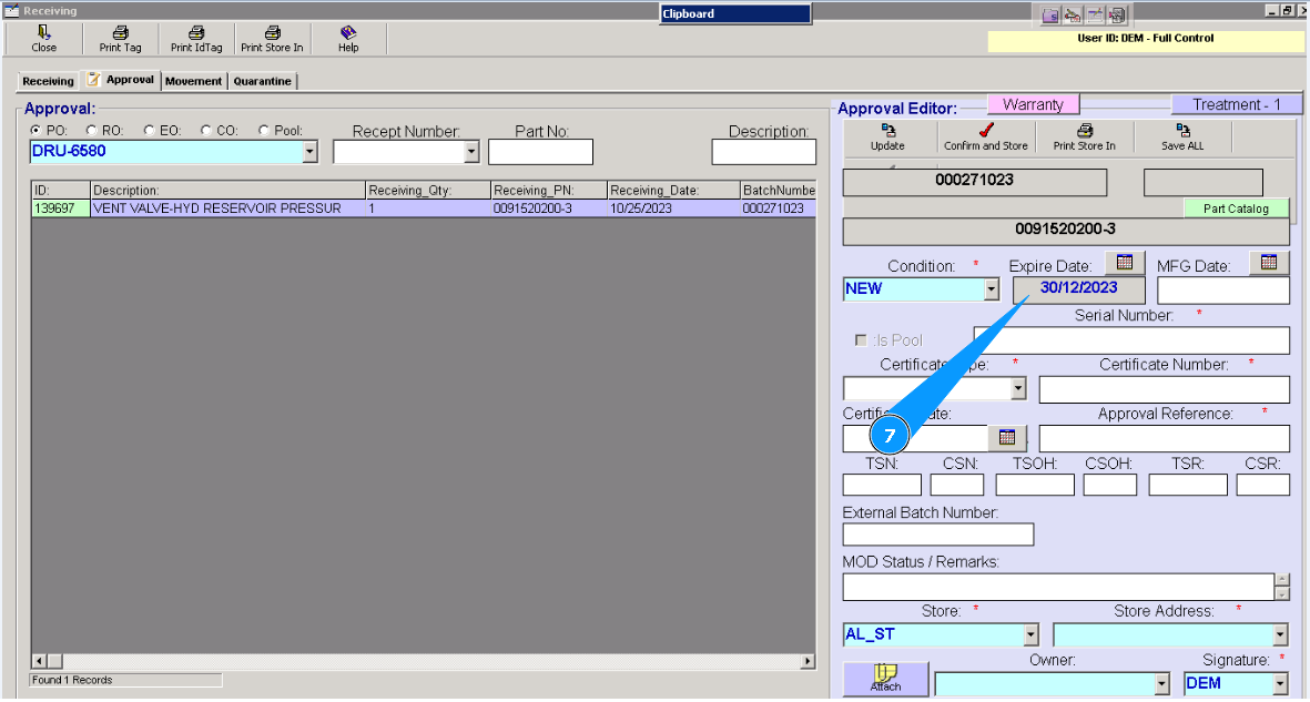Method №2. Setting the criteria "Expire Date" during receiving to store.