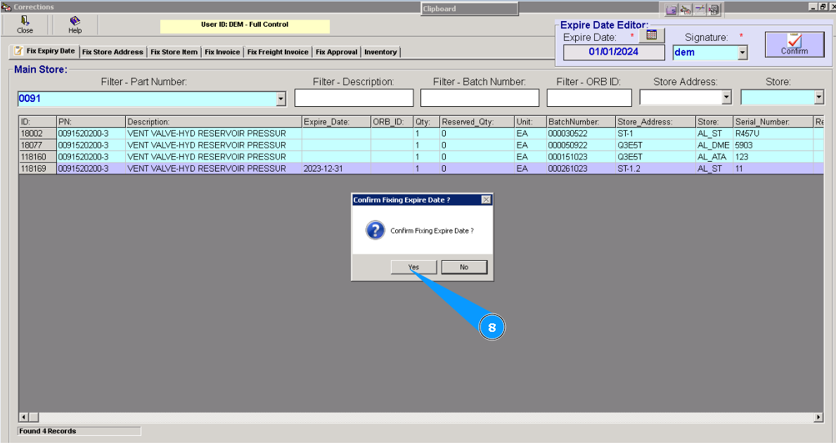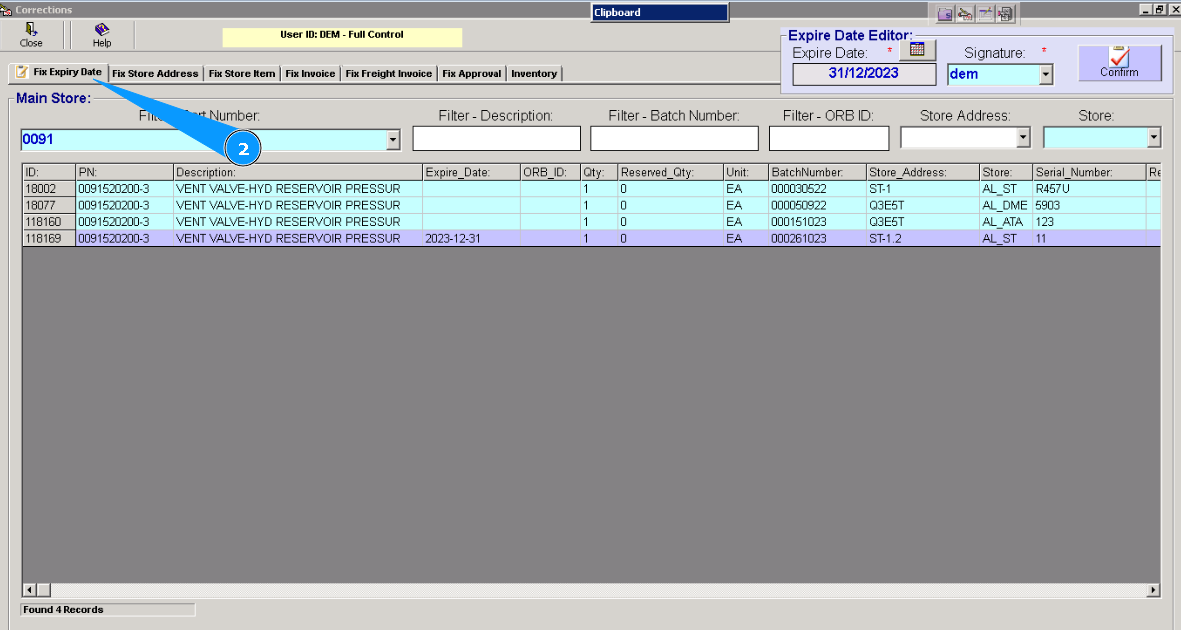 1. For correcting the criteria Expire Date, please go to submodule "Corrections".