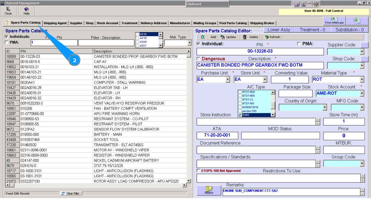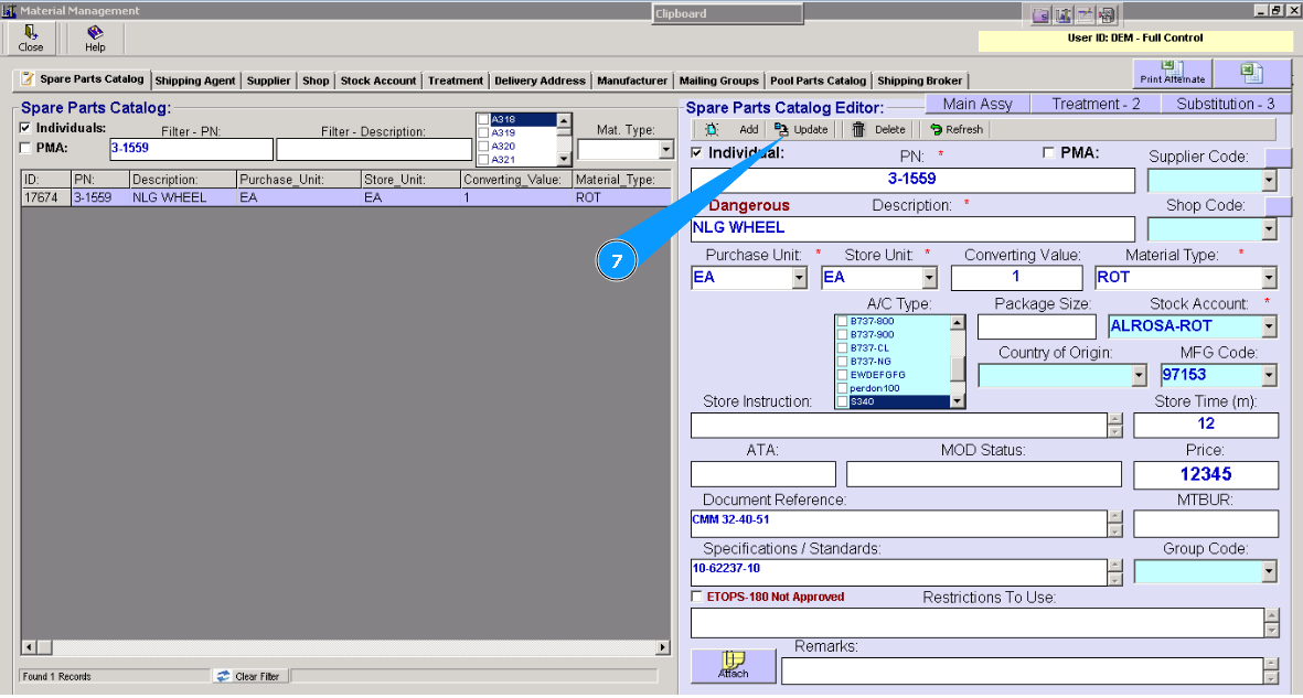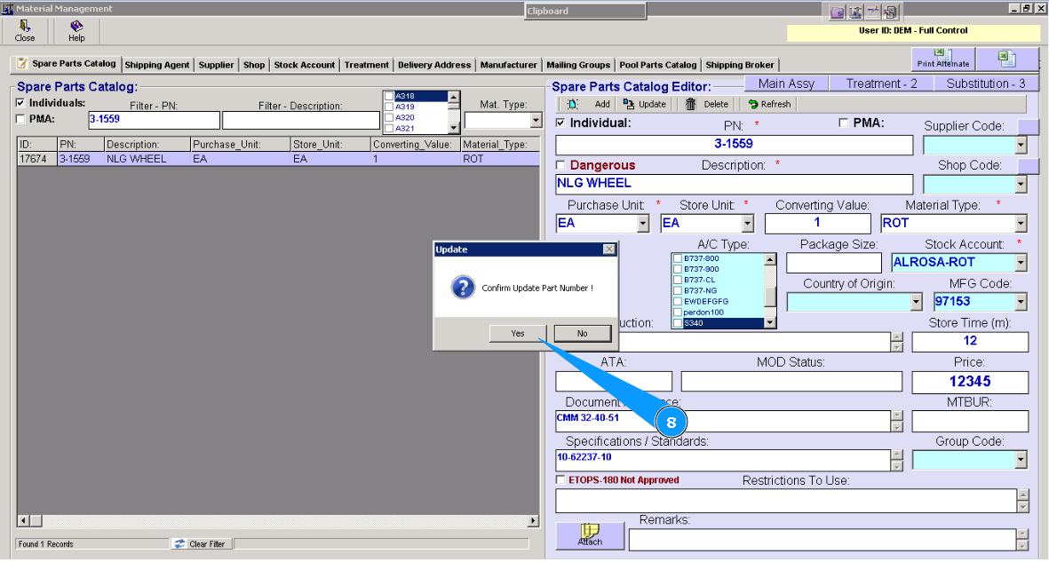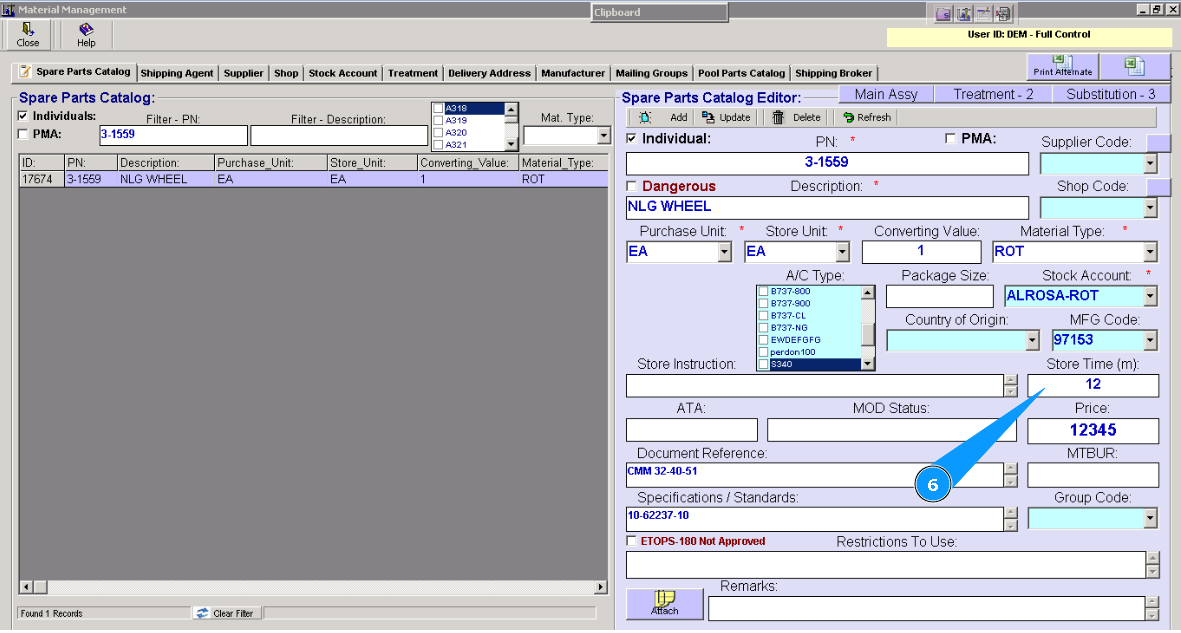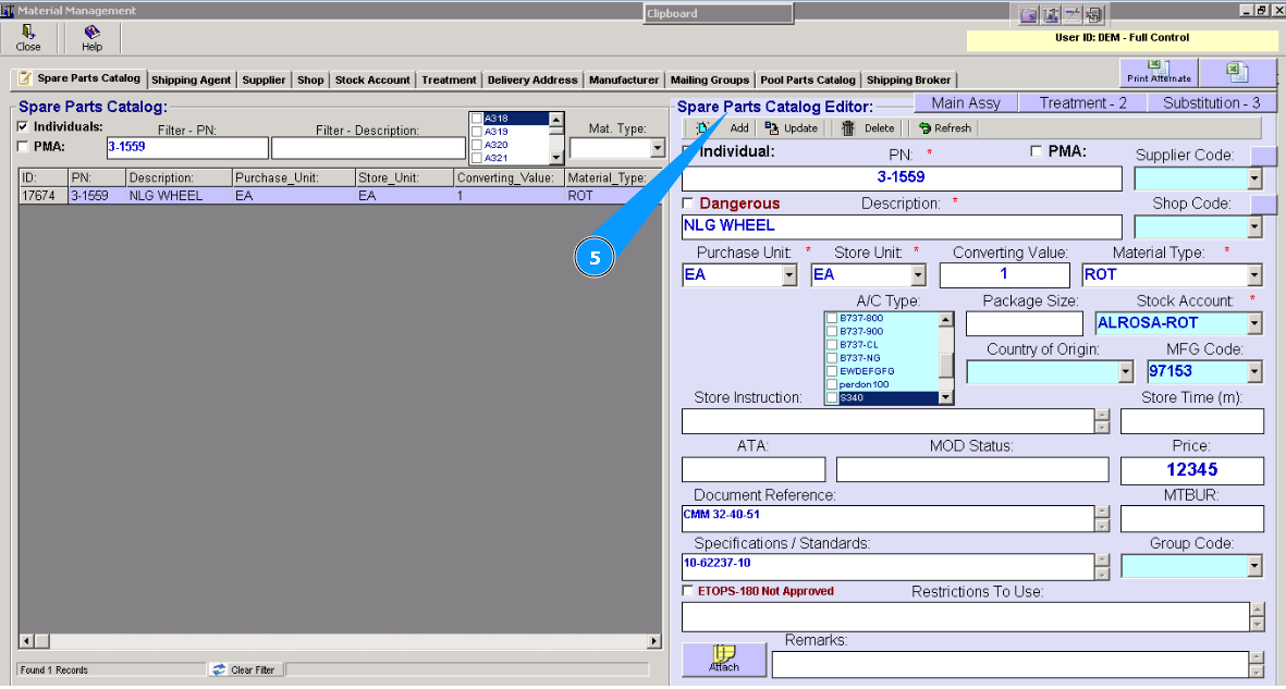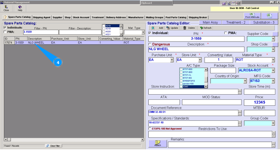 5. Visually check that component data is updated in the editor window "Spare Parts Catalog Editor".