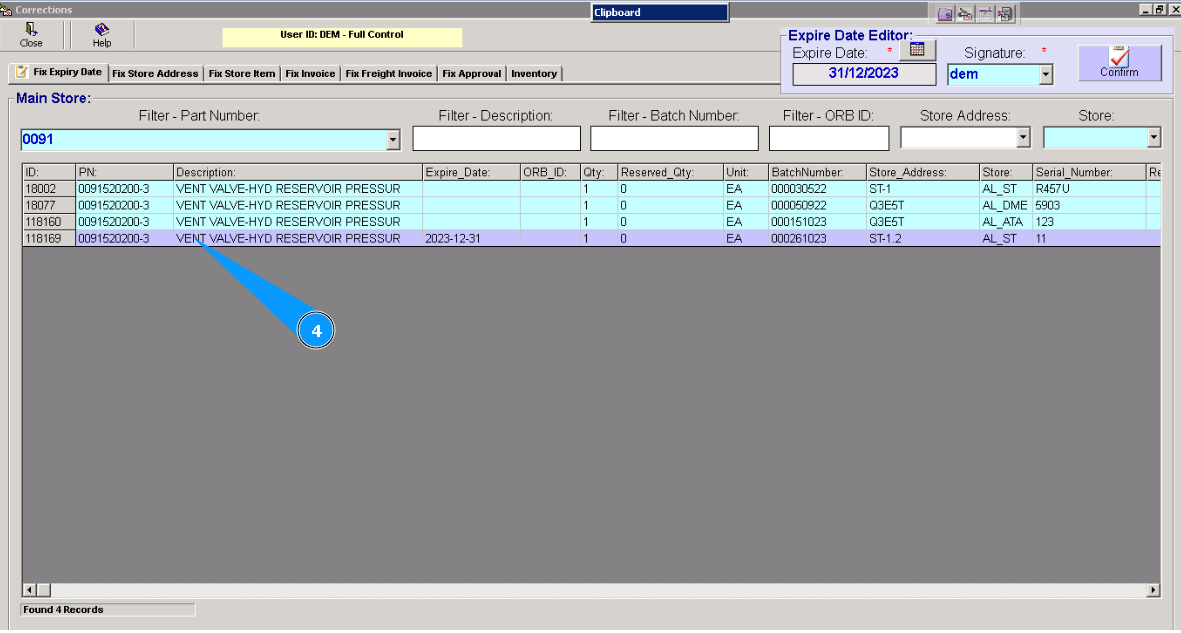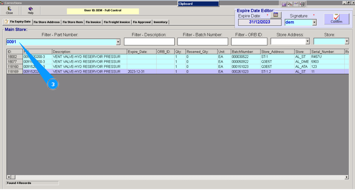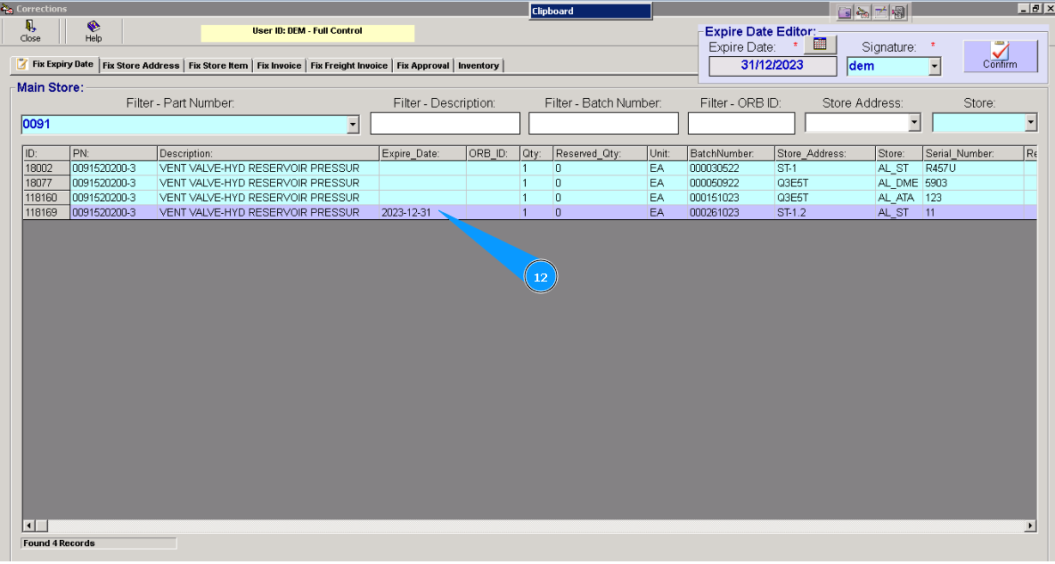 Method №3. Correction criteria Expire Date of the component that is being stored.