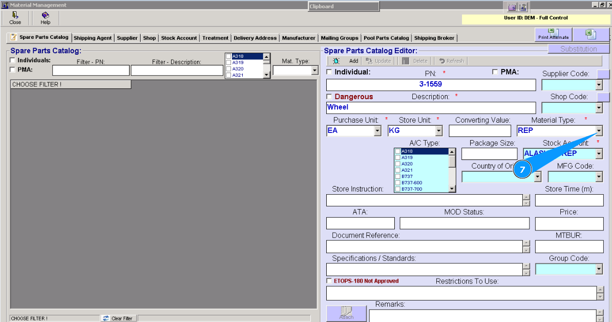 3. Enter part number in the field "PN". Note: If the units for purchasing and storing are not identical, enter the converting value between them in the field "Converting Value".