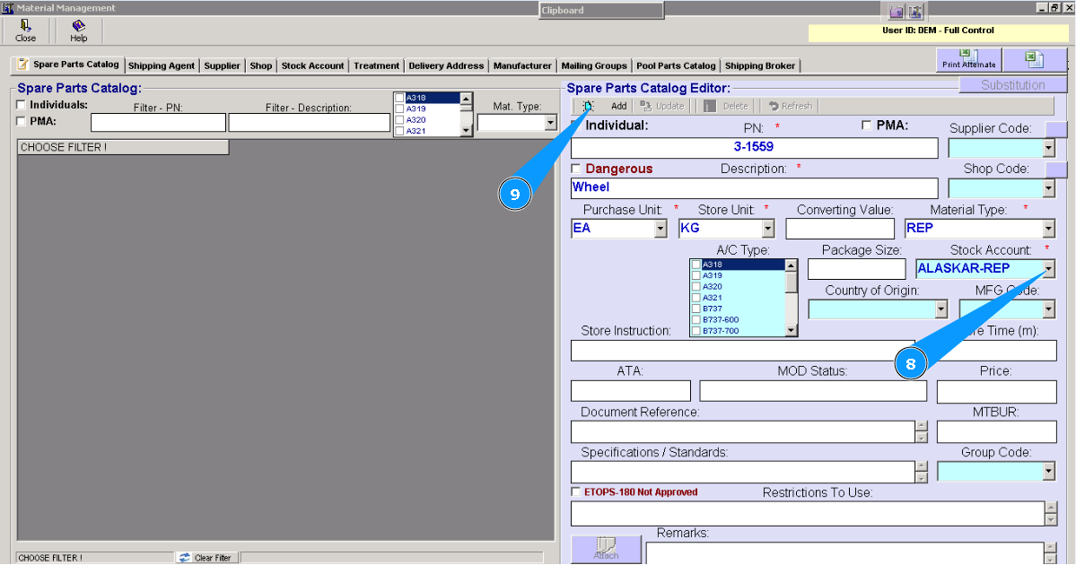1. For the implementation of new materials or components that are unknown in Alaskar, go to submodule "Material management".