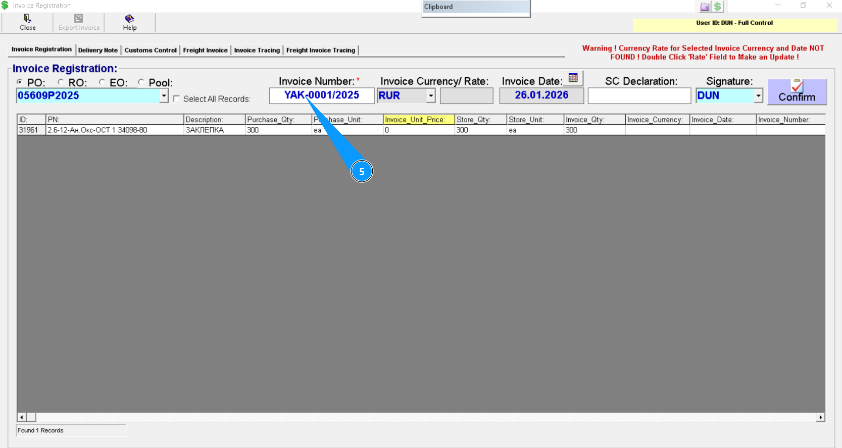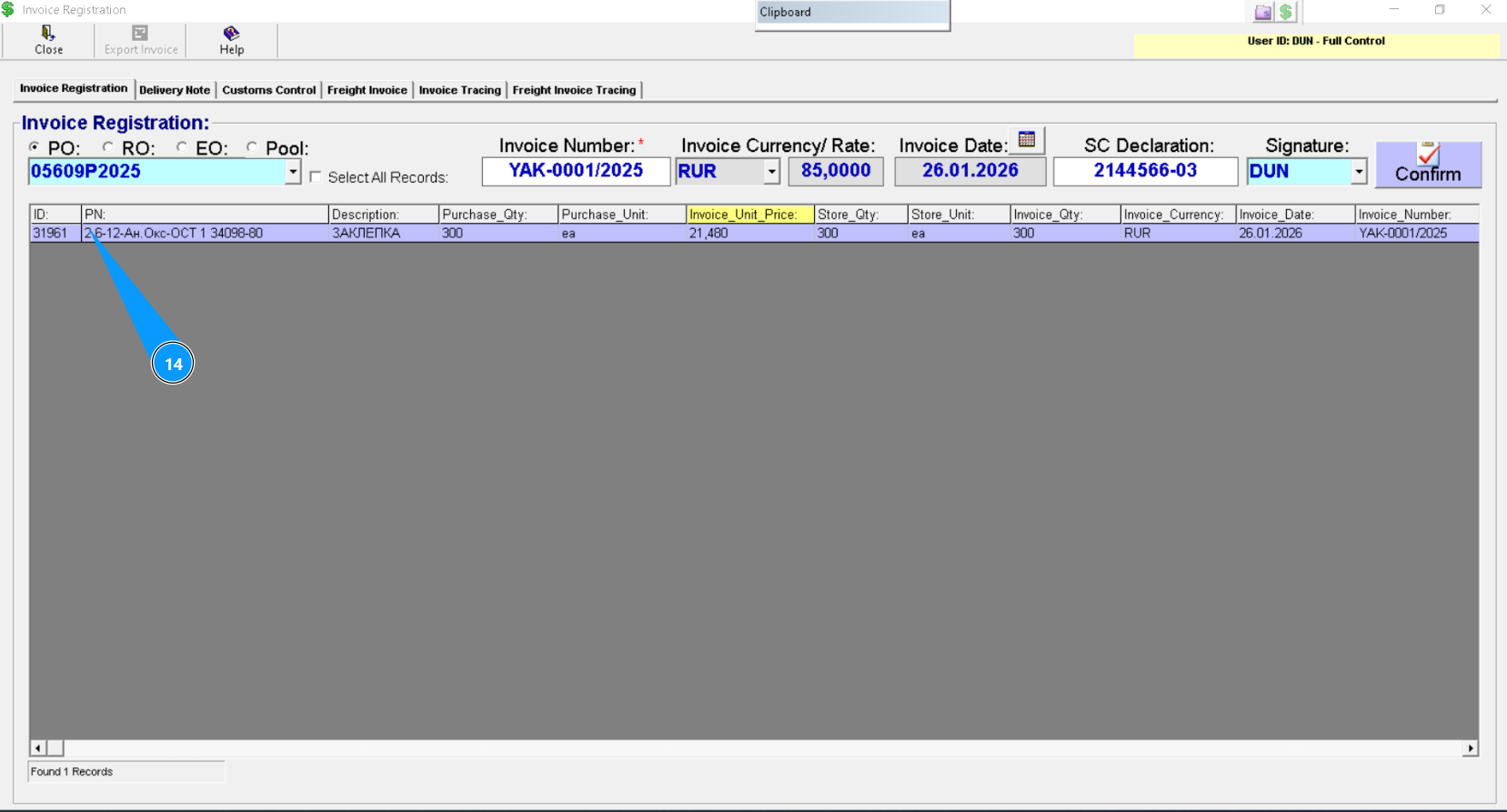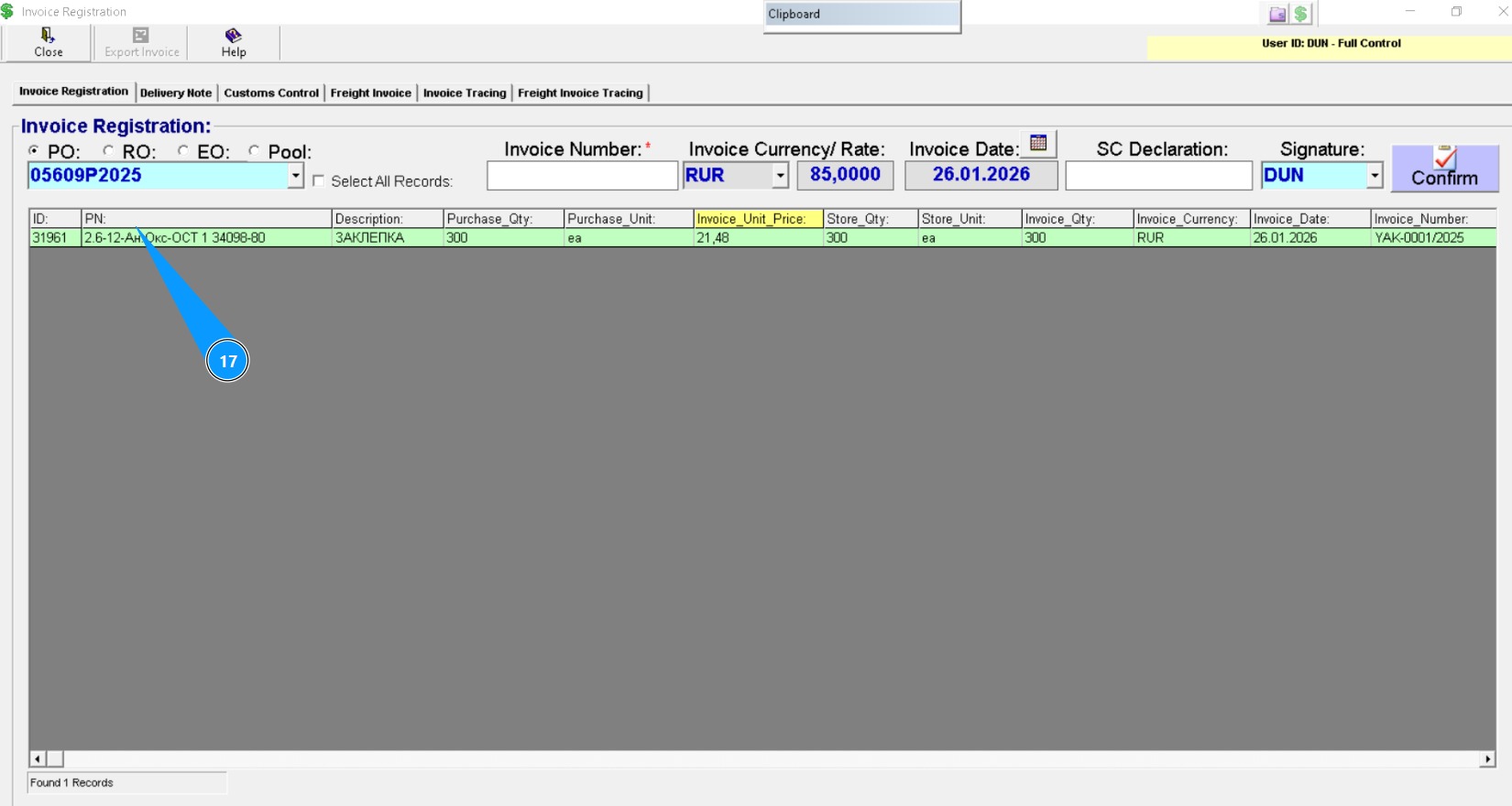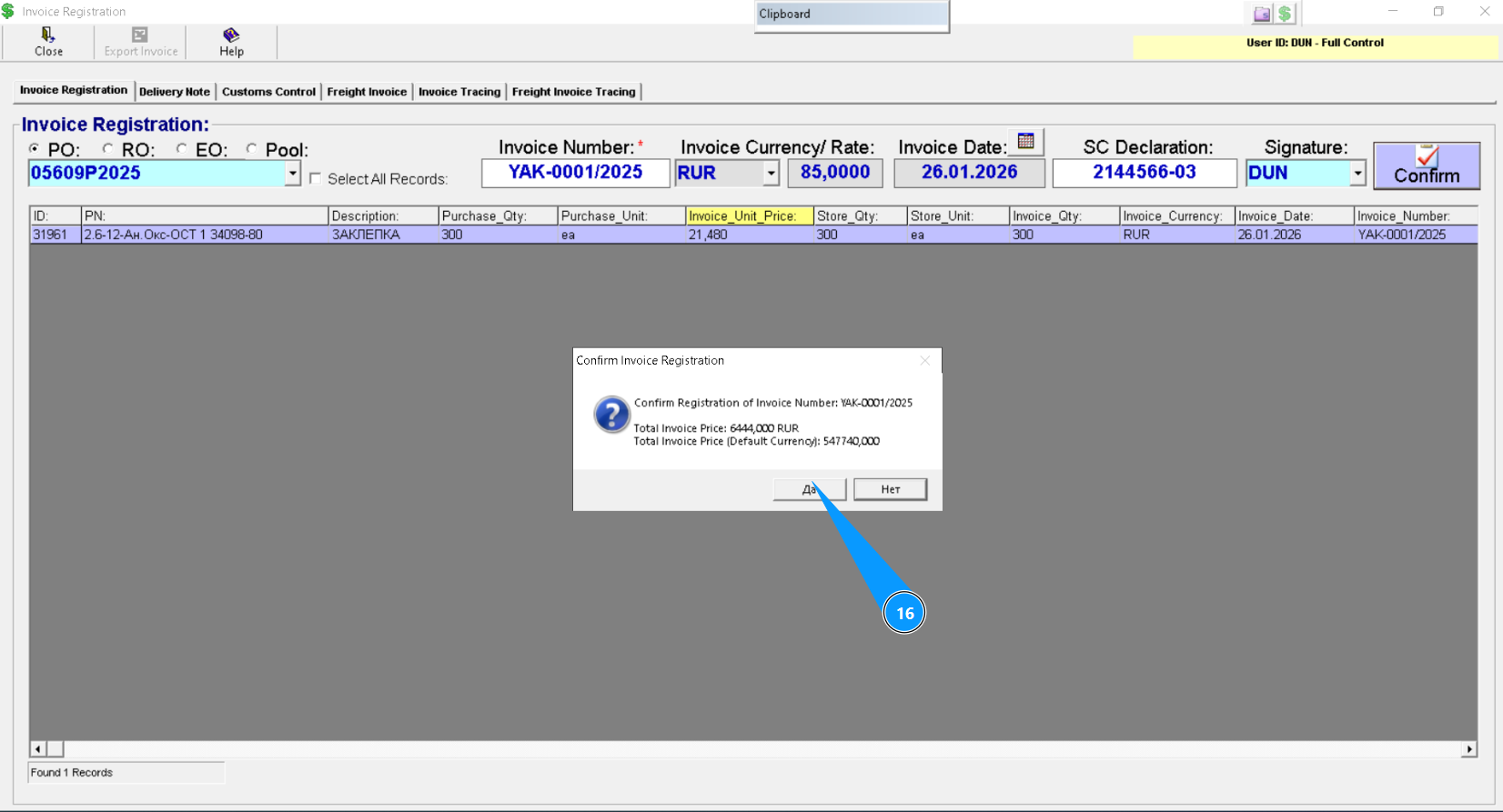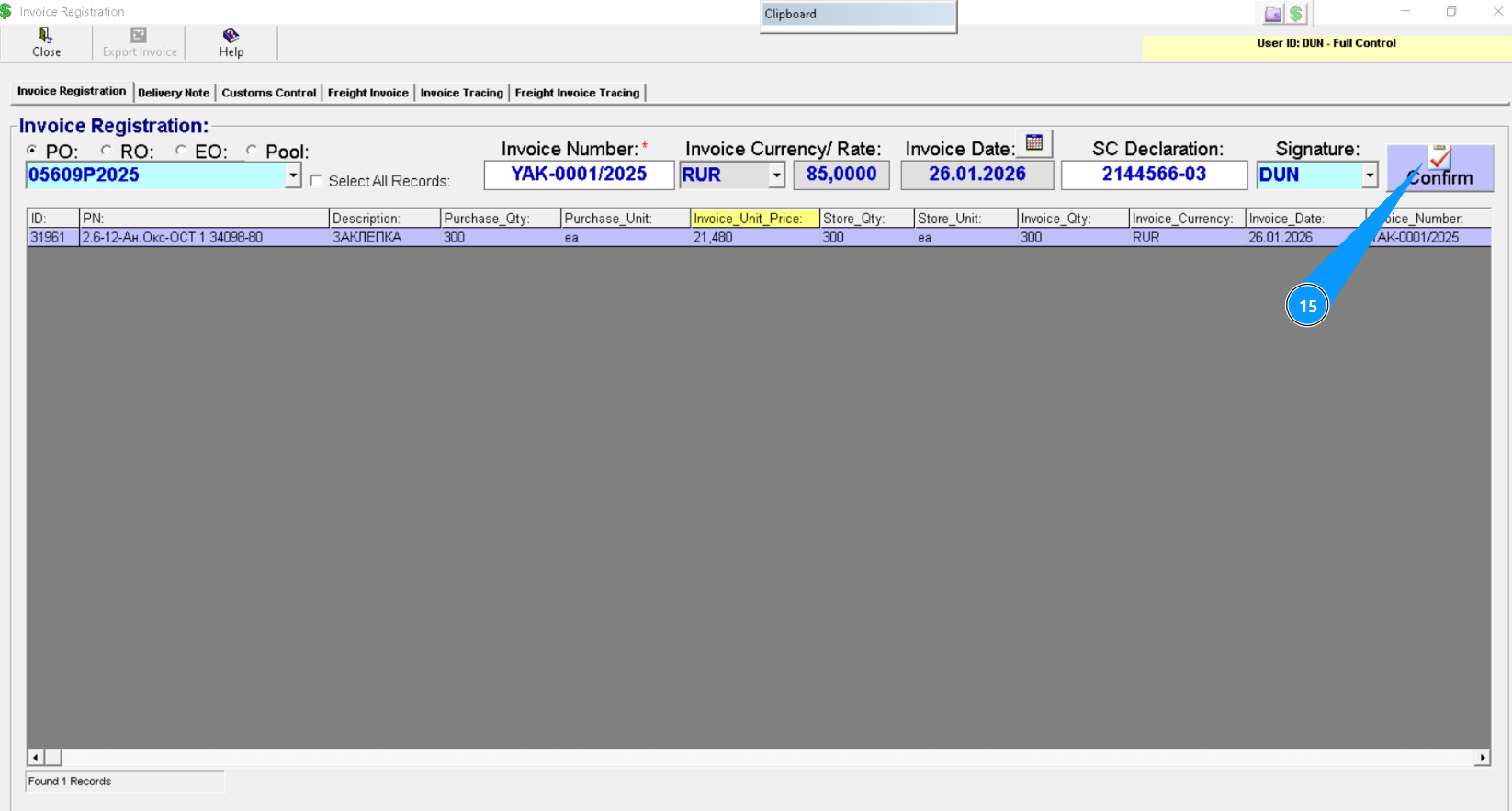 15. Click on the button, "Confirm", to registrate new invoice into program.