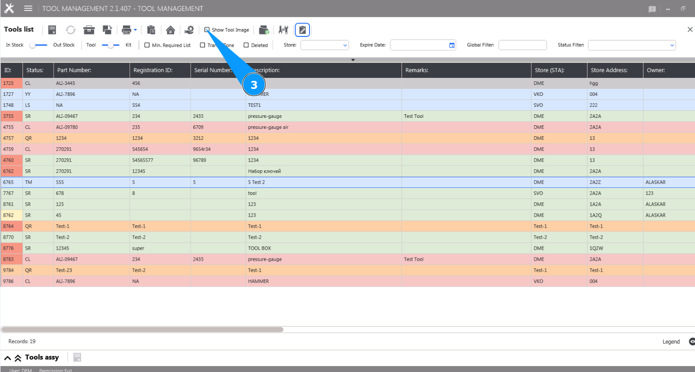 3. Click on the corresponding field "Show Tool Image".