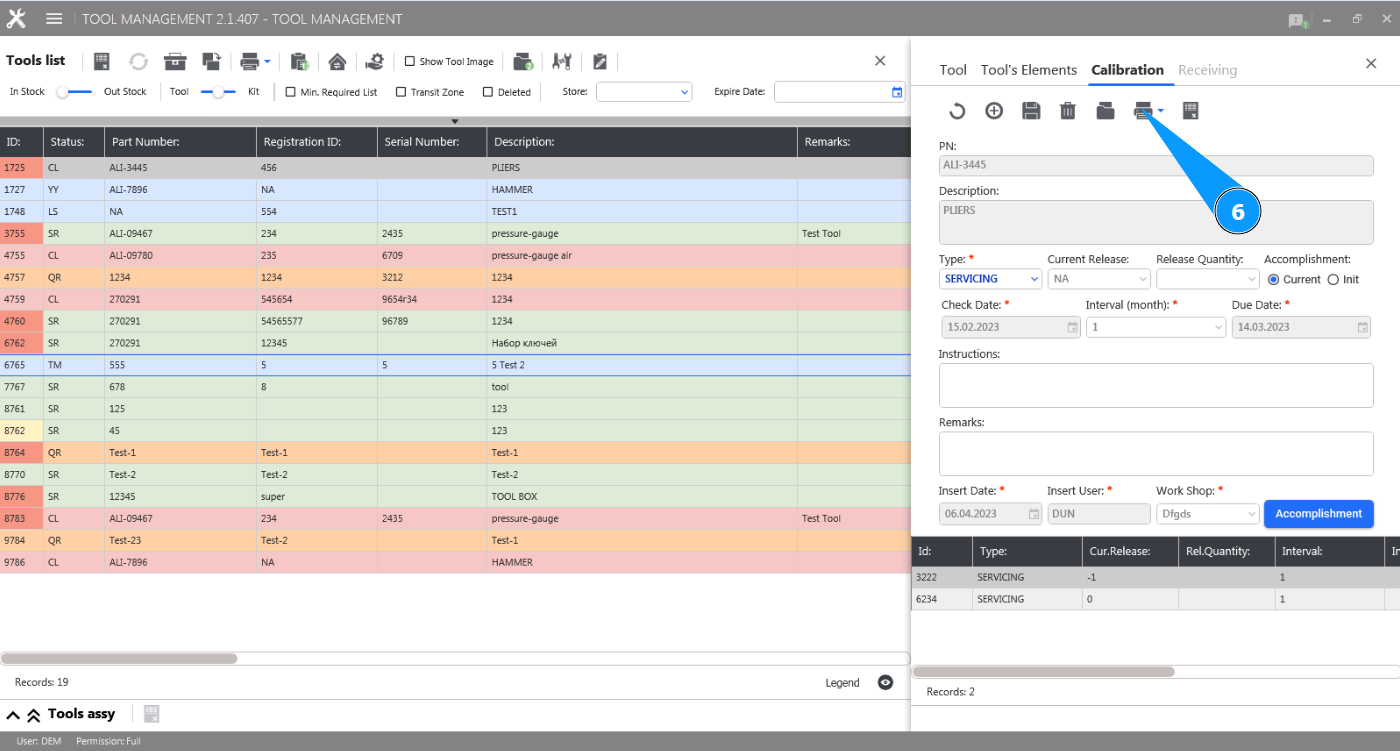 2. Select the required line with the tool and click on it in the window "Tool List".