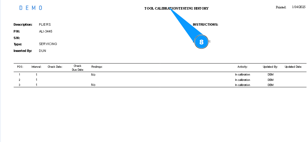 6. Click on the button "Choose Report to Print" to open the list of reports.