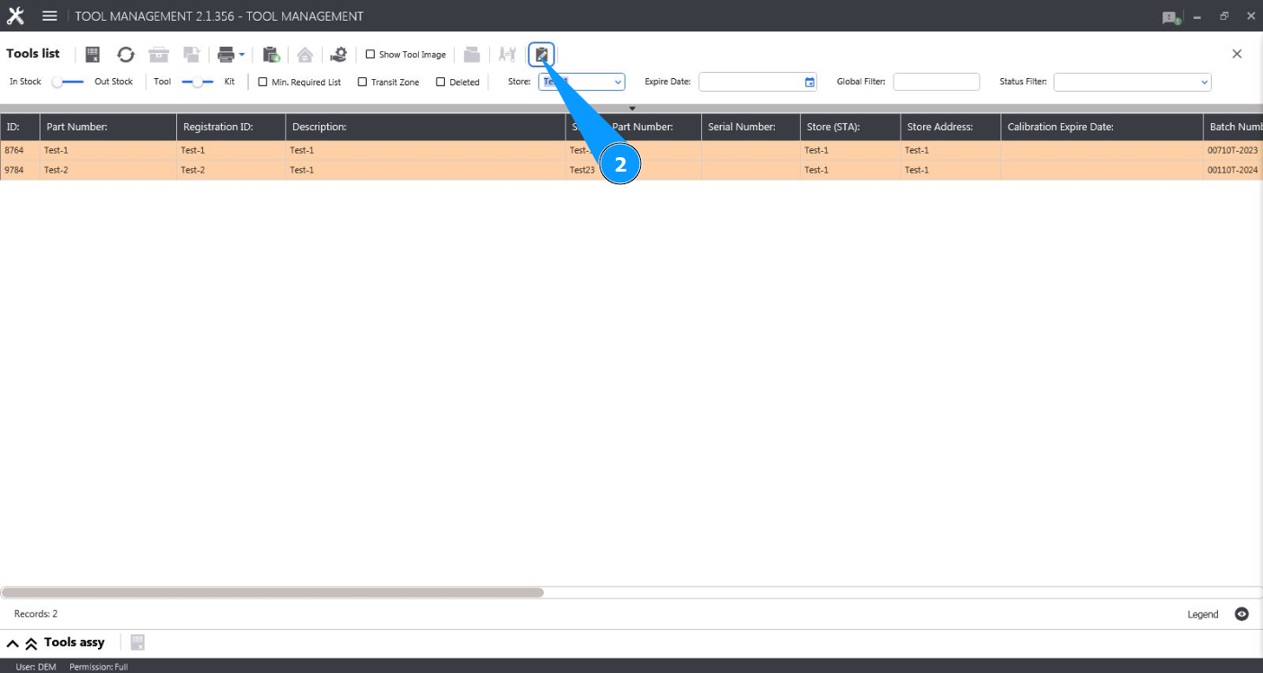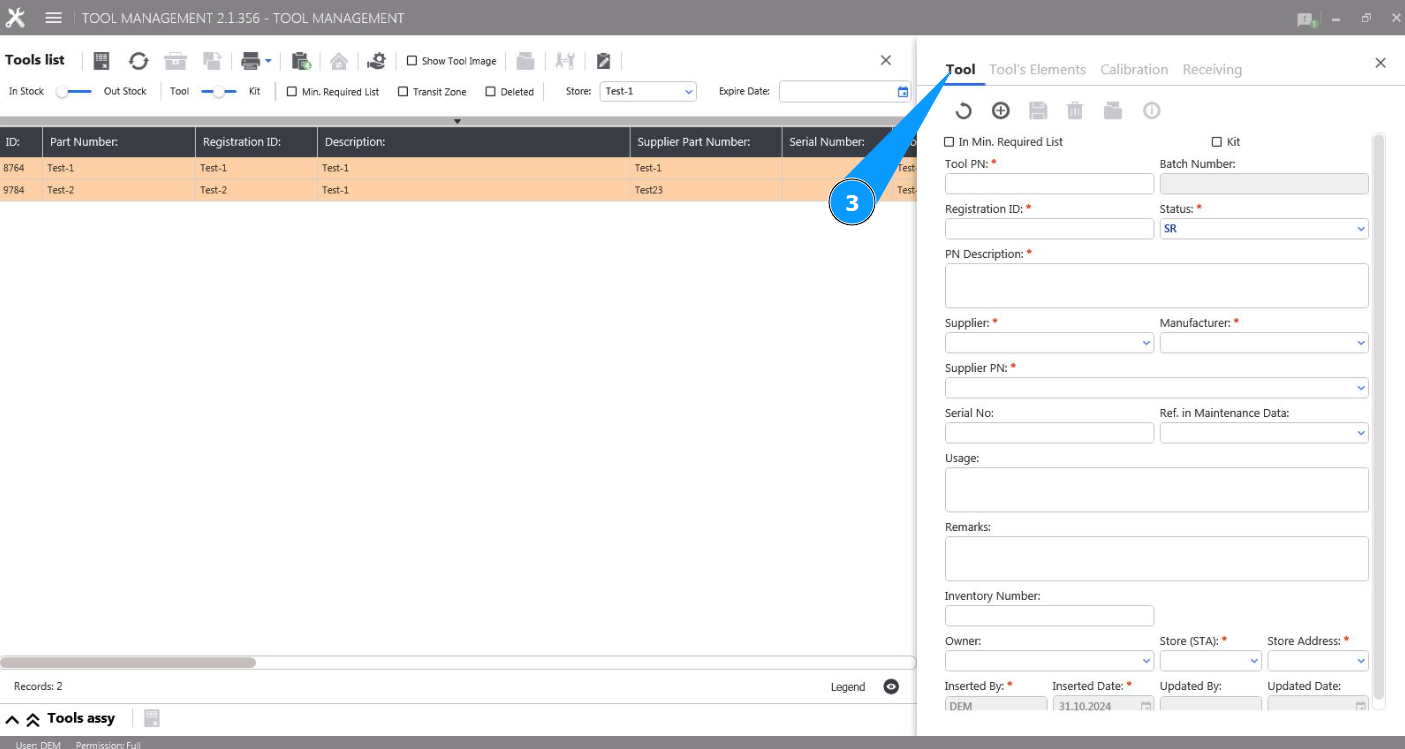 19. If necessary, put a marker to add the tool to the list of required tools in the field "In min.Reqired List".