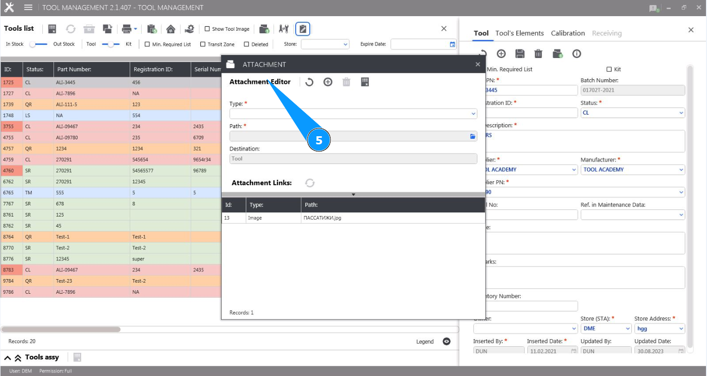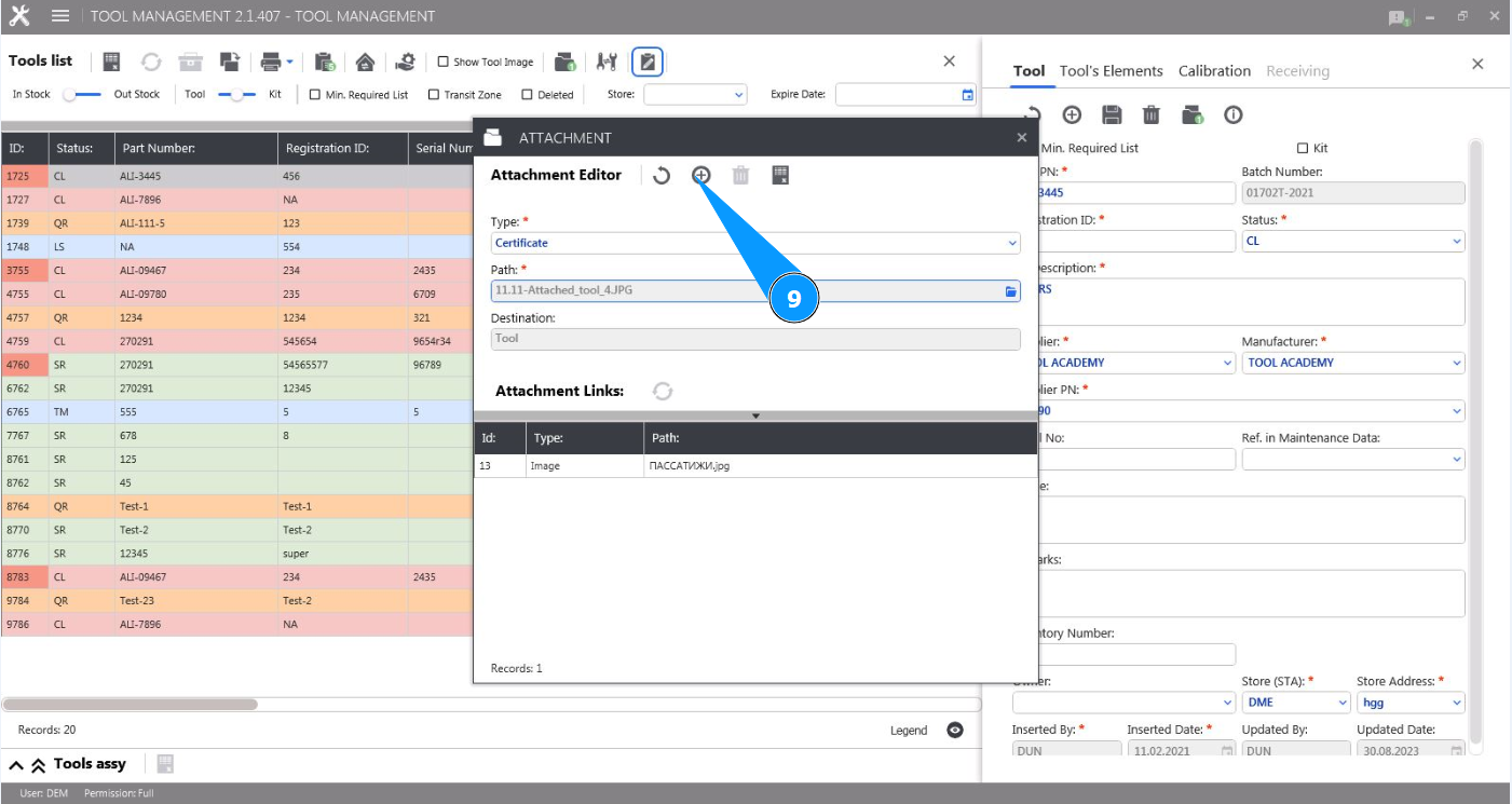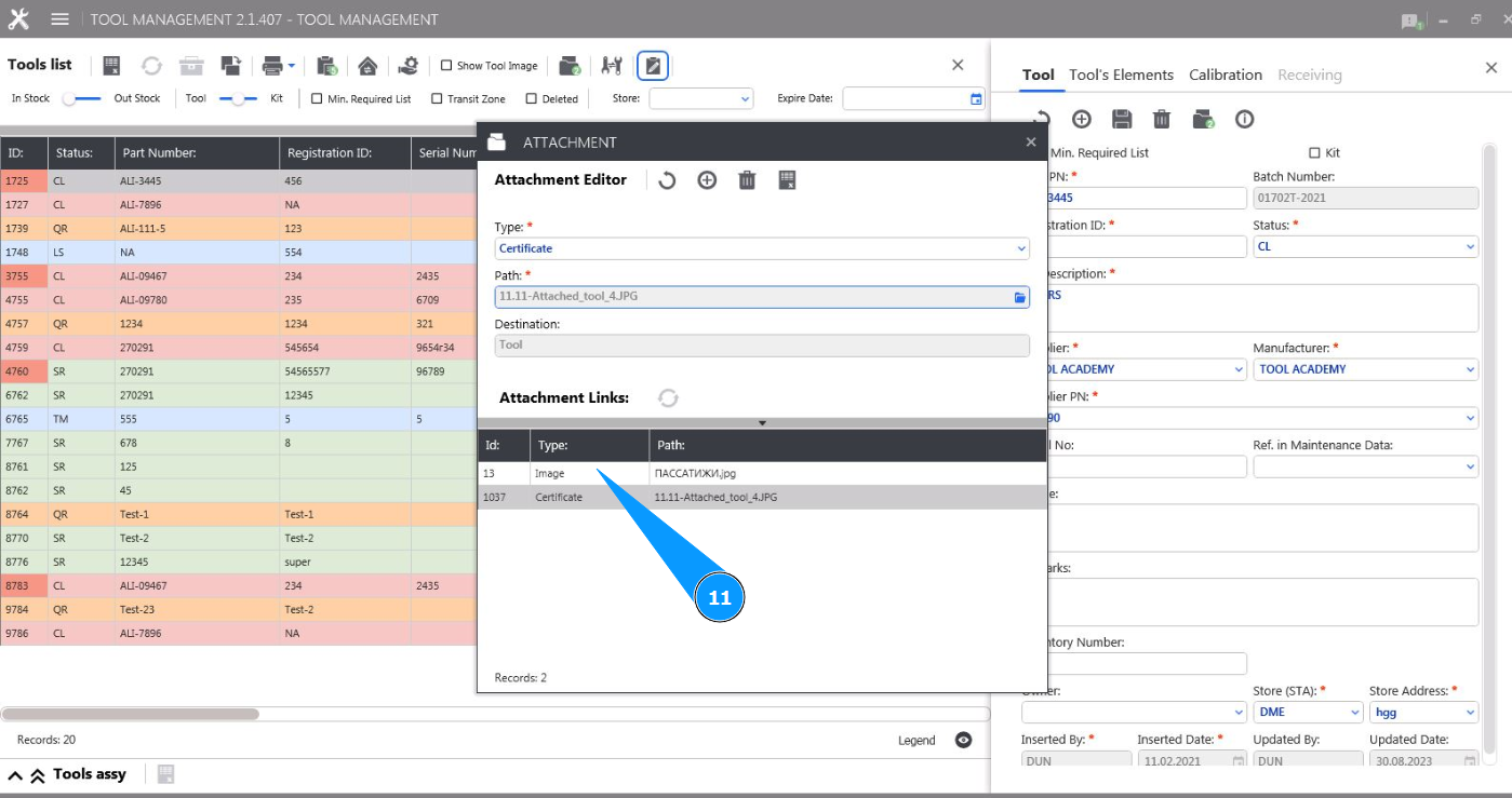 11. Check that the added image is displayed in the list of the window "Attachment List".