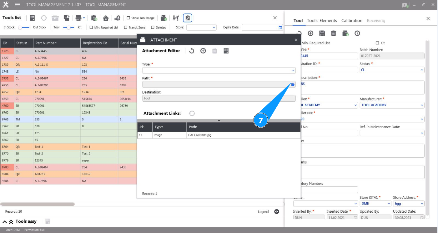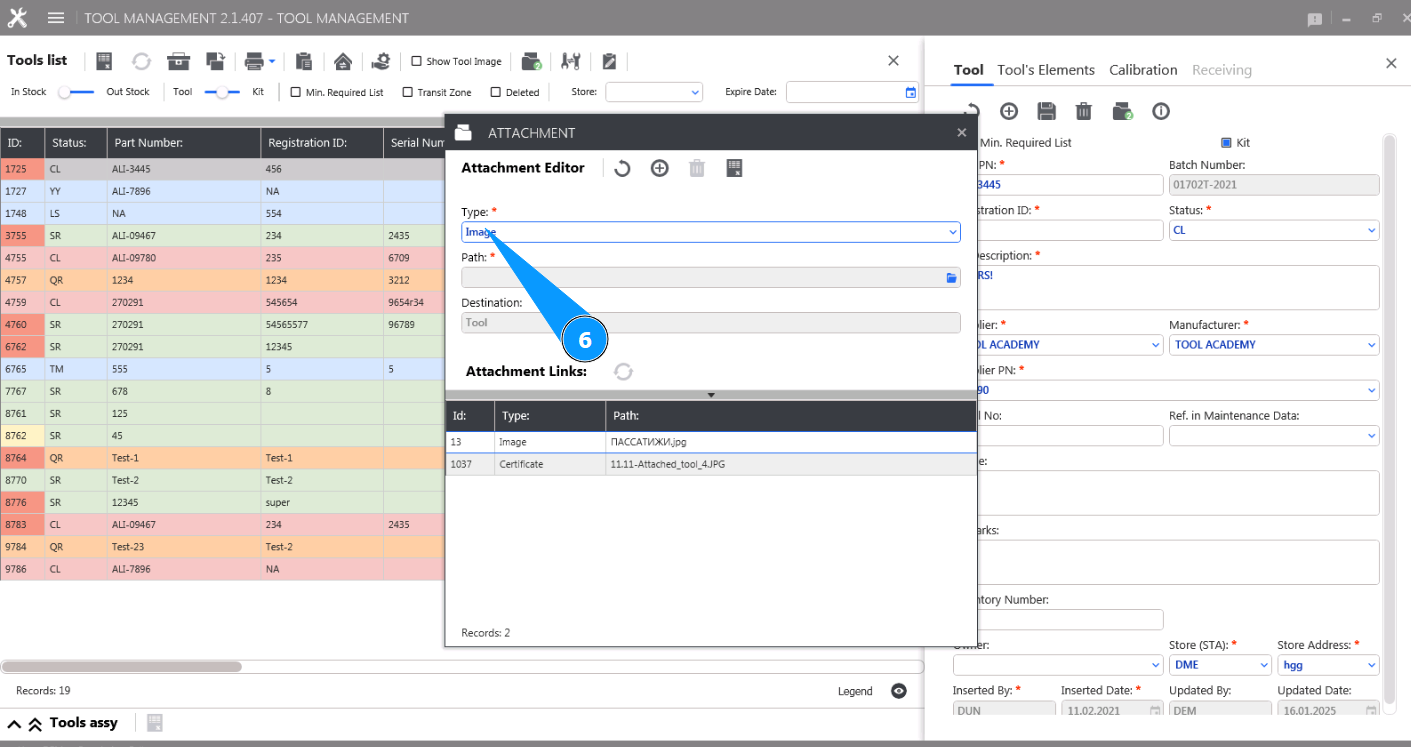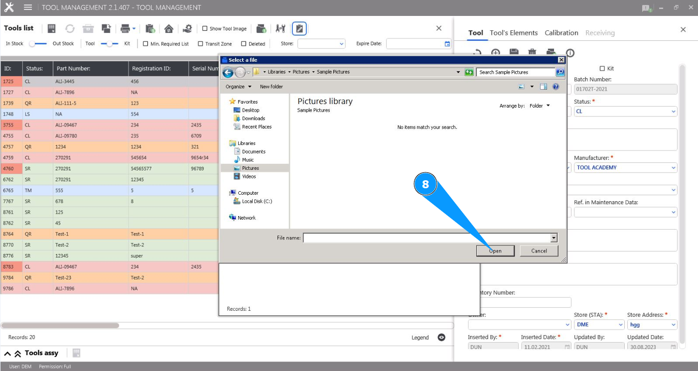 1. In order to upload a tool image to a tool card, go to the submodule "TMS".