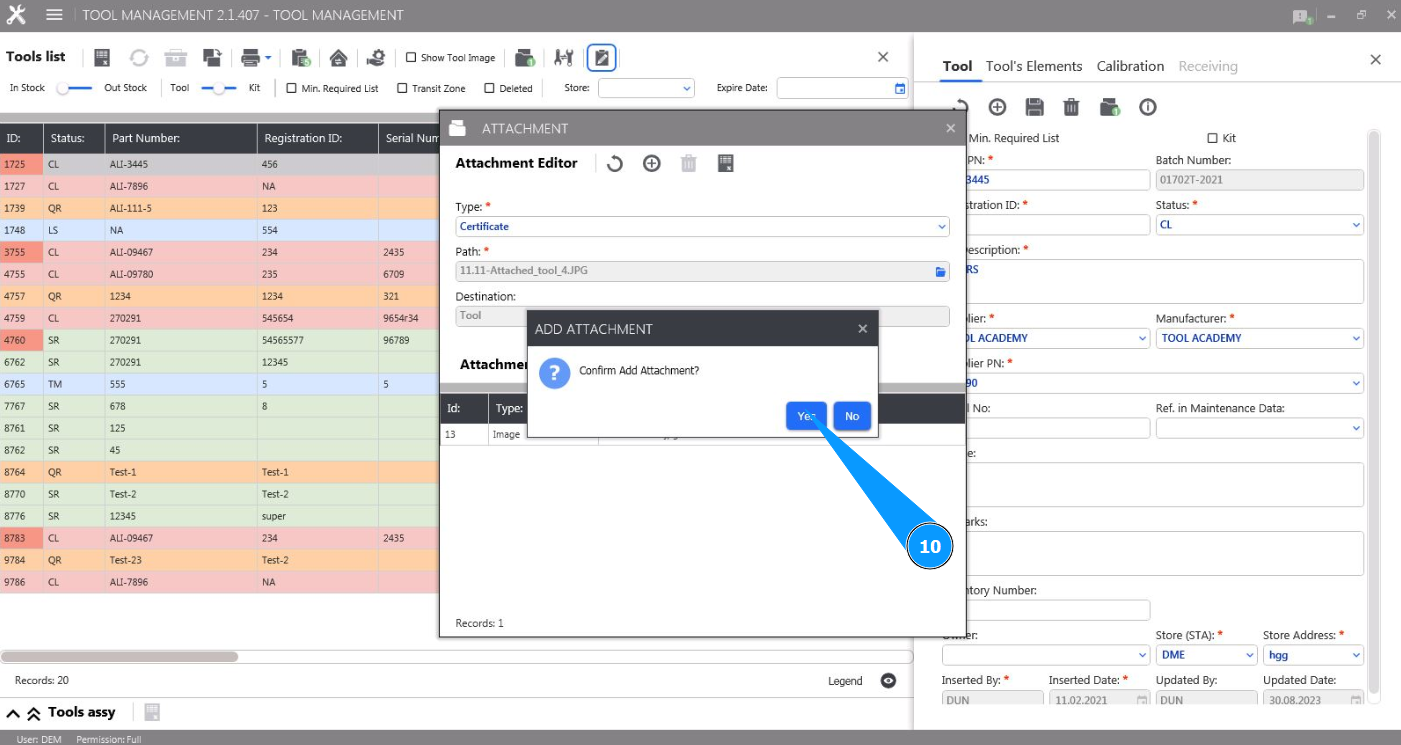10. Click on the button "Yes" to confirm adding the image to the tool card.