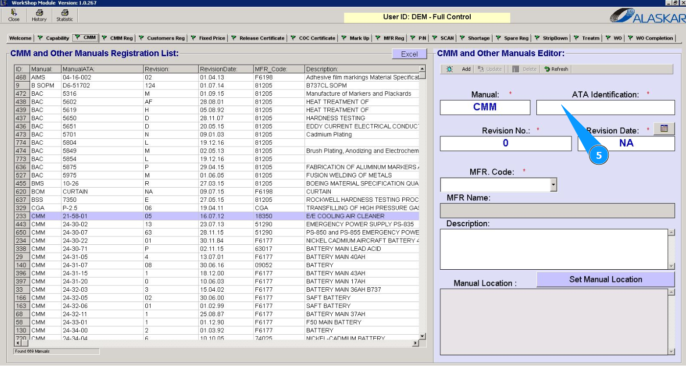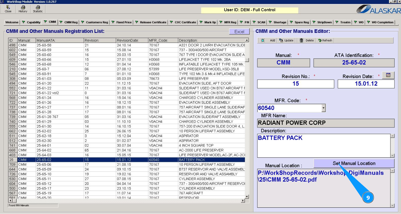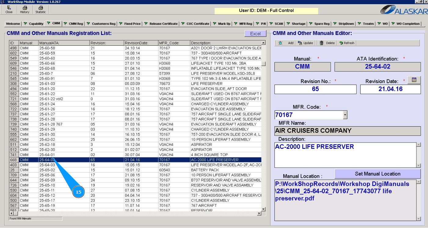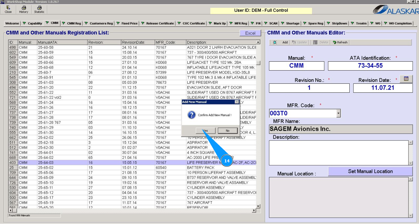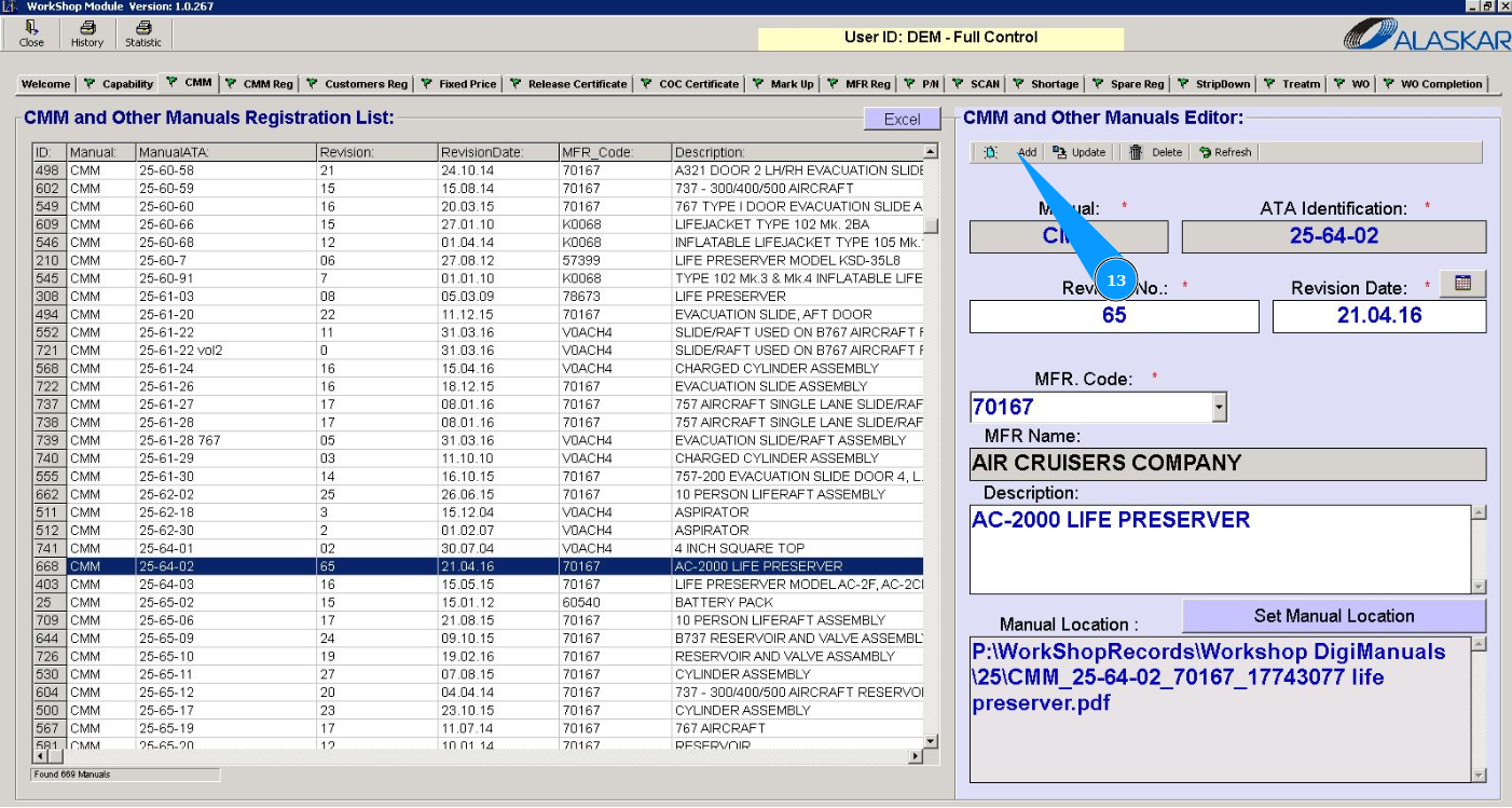 15. Check that your manual is displayed in the window "CMM and other Manuals Registration List".