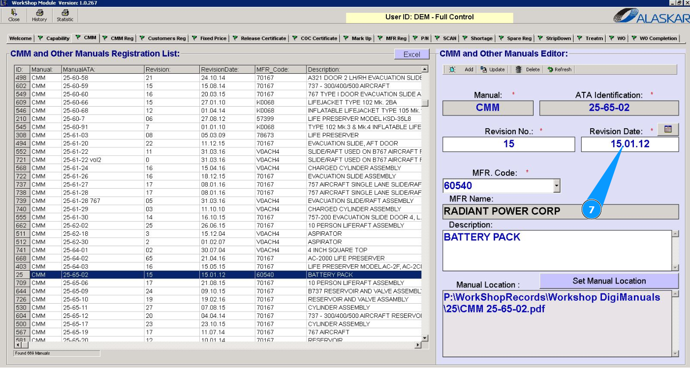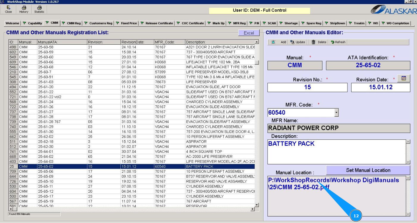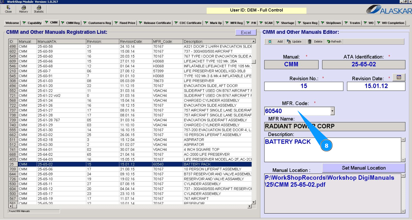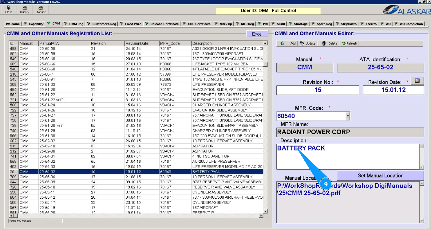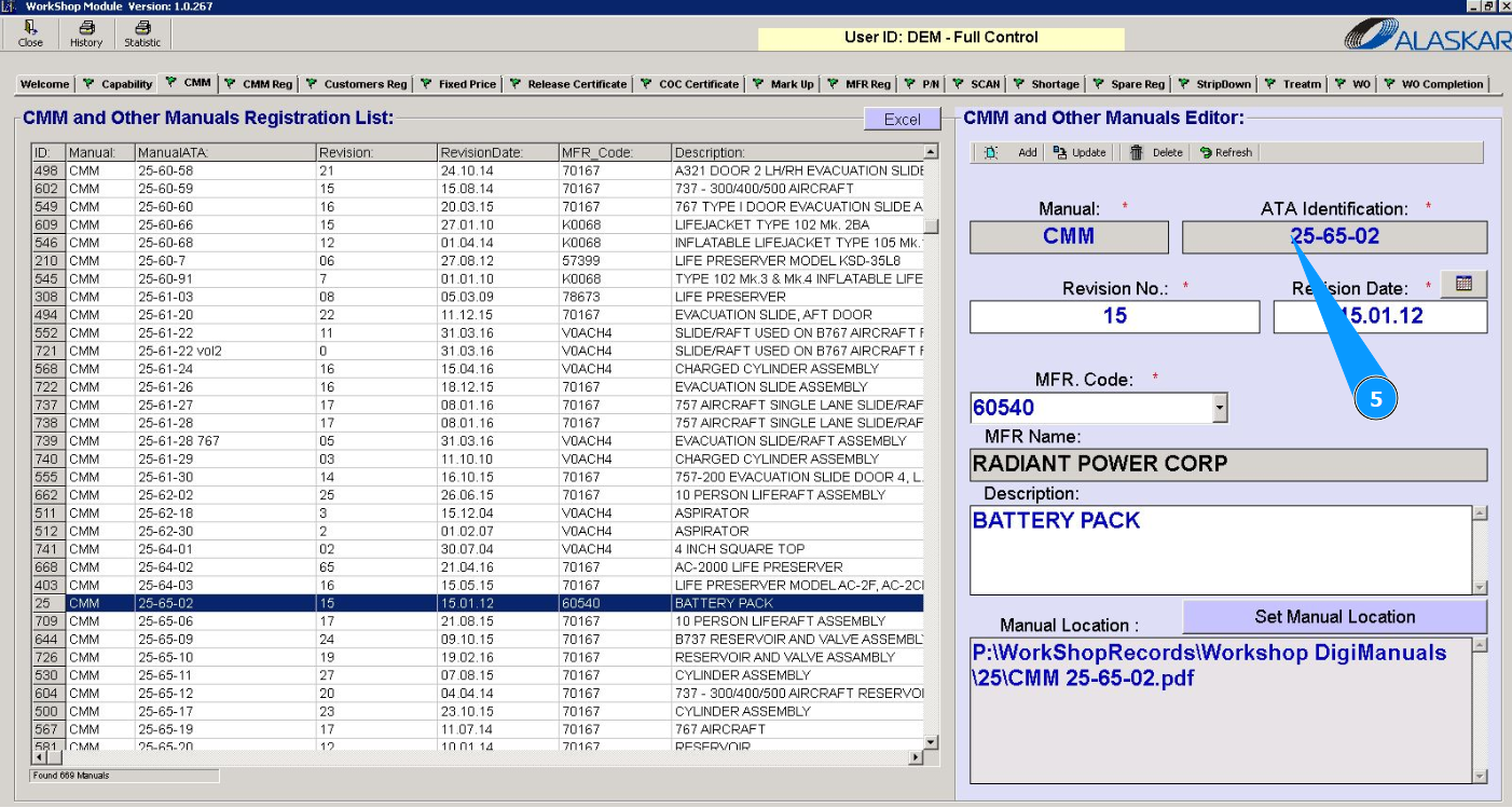 15. Check that your manual is displayed in the window "CMM and other Manuals Registration List".