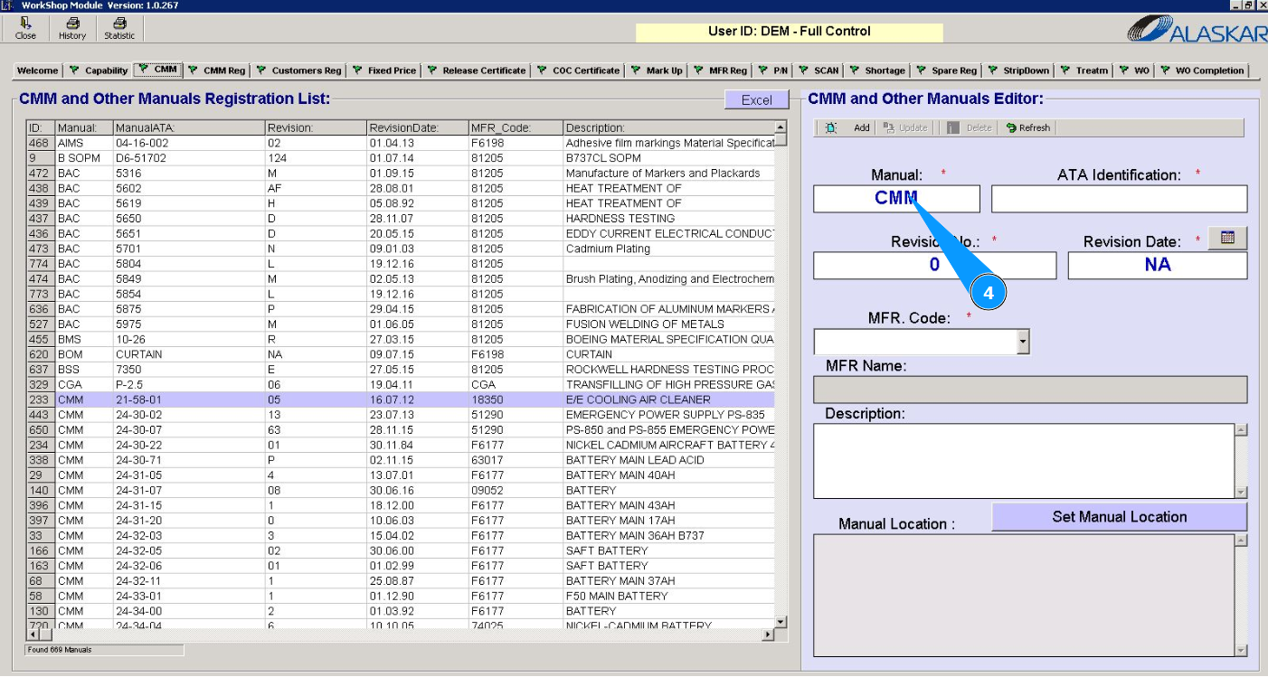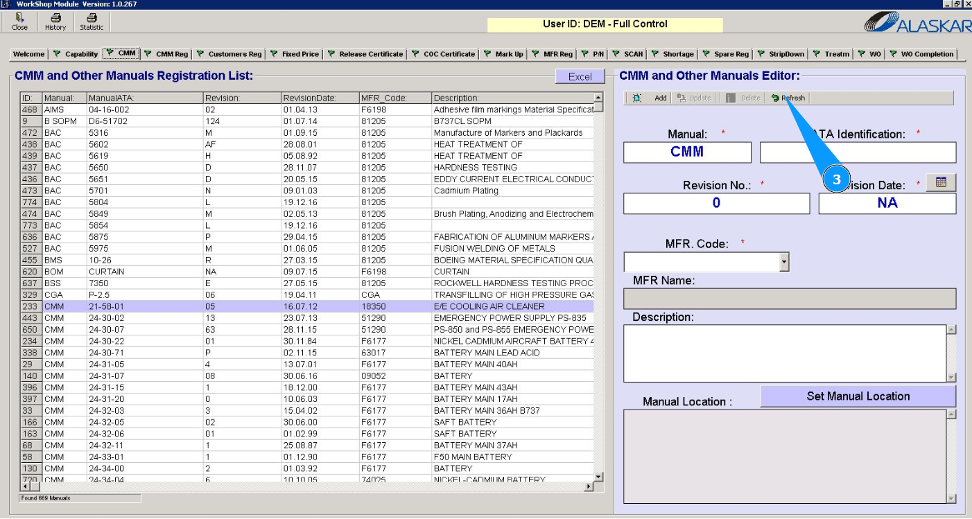 3. Click on the button "Refresh" to refresh the fields in the editor "CMM and other Manuals Editor".