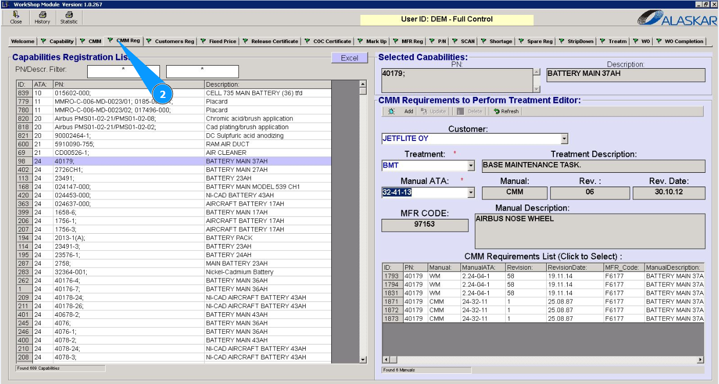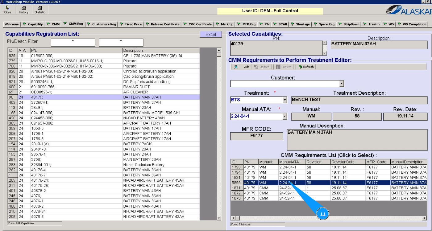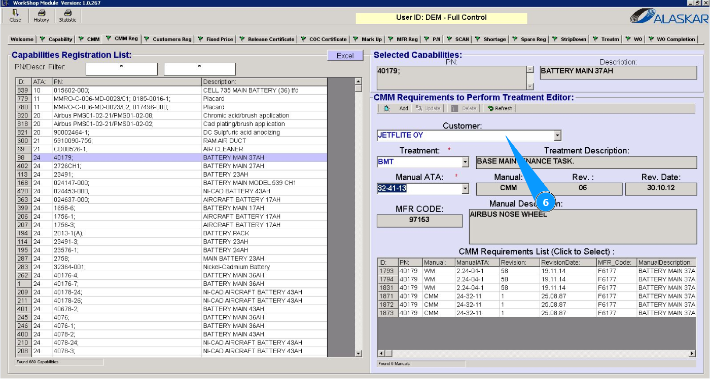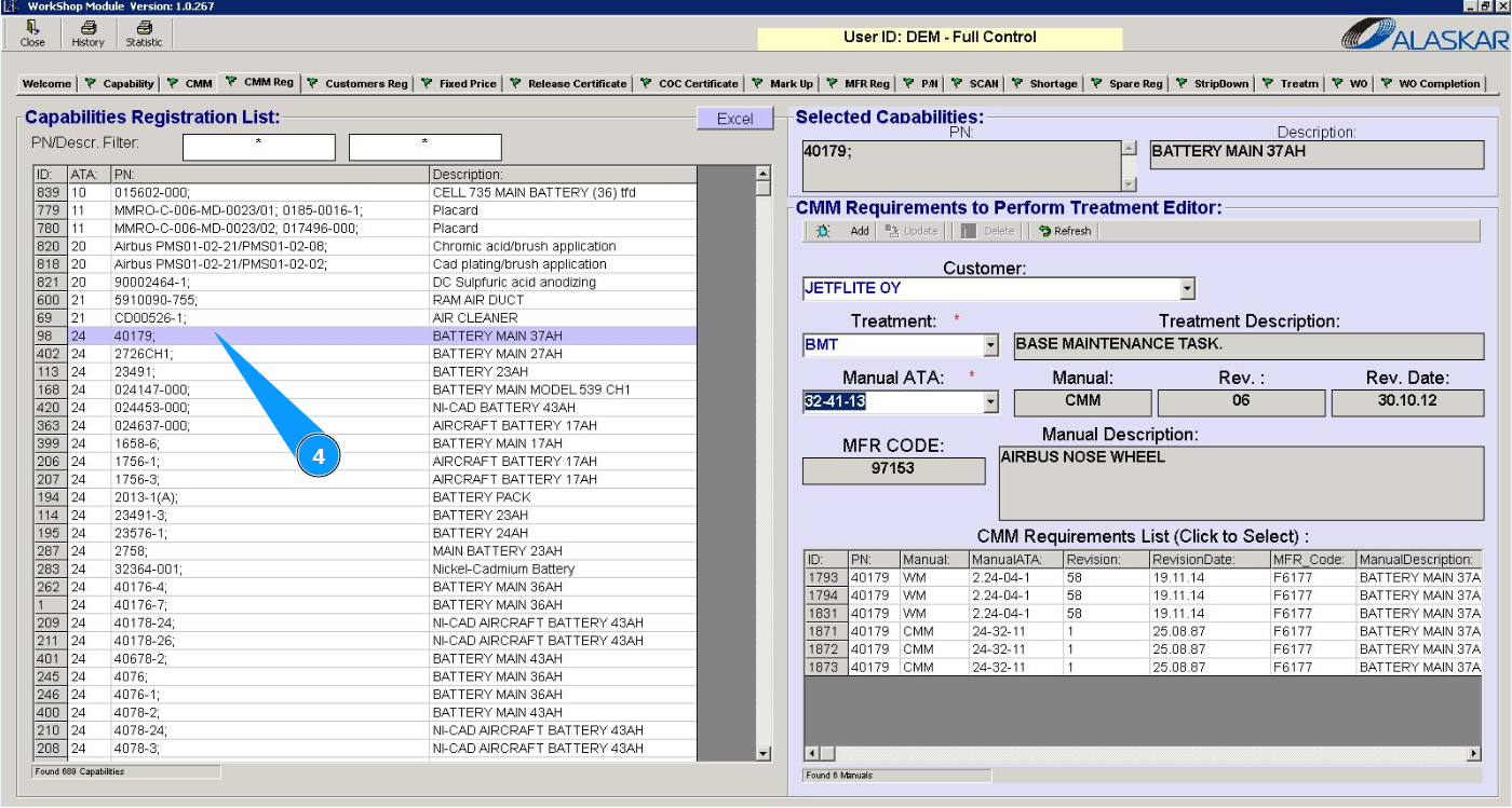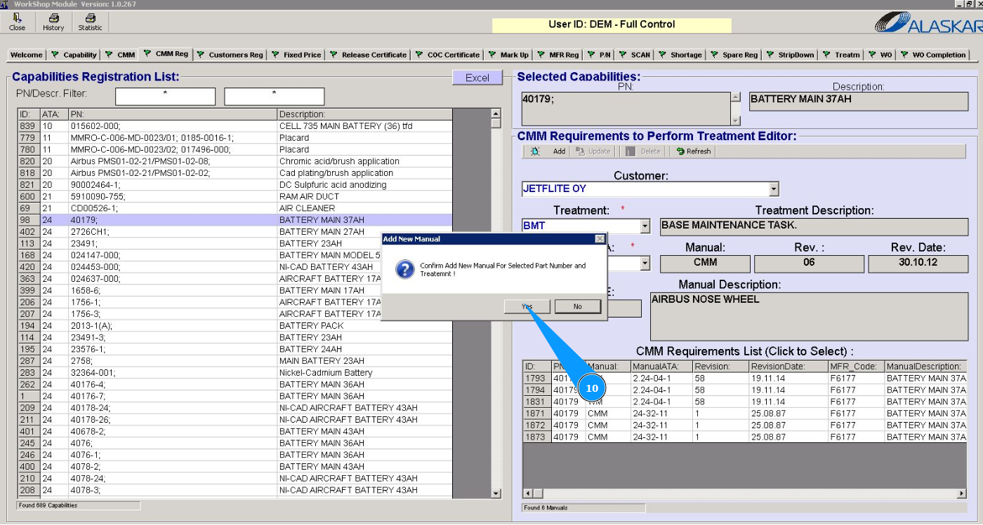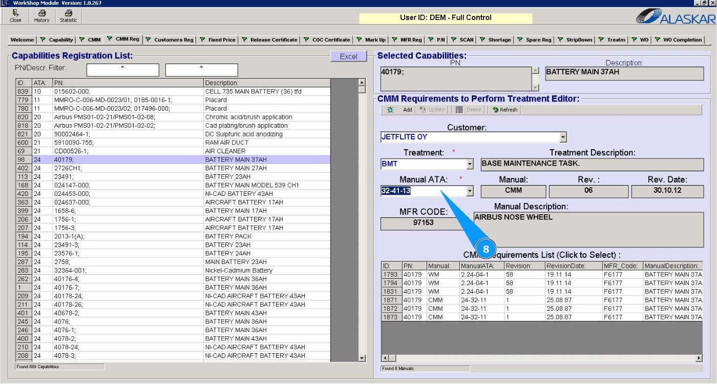 8. From the threatment list, select the appropriate ATA chapter of the manual (CMM) in the field "Manual ATA".