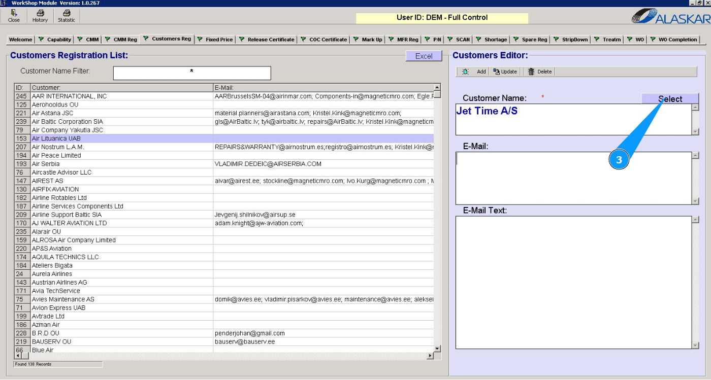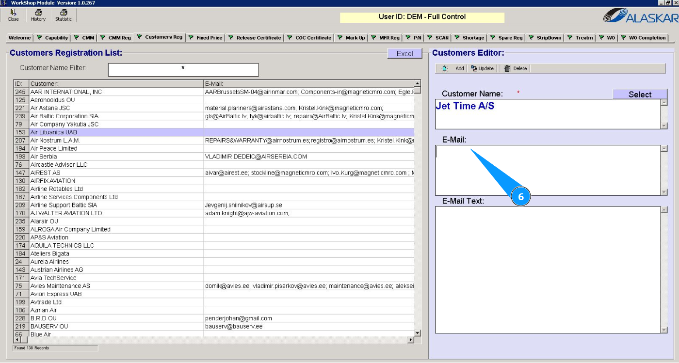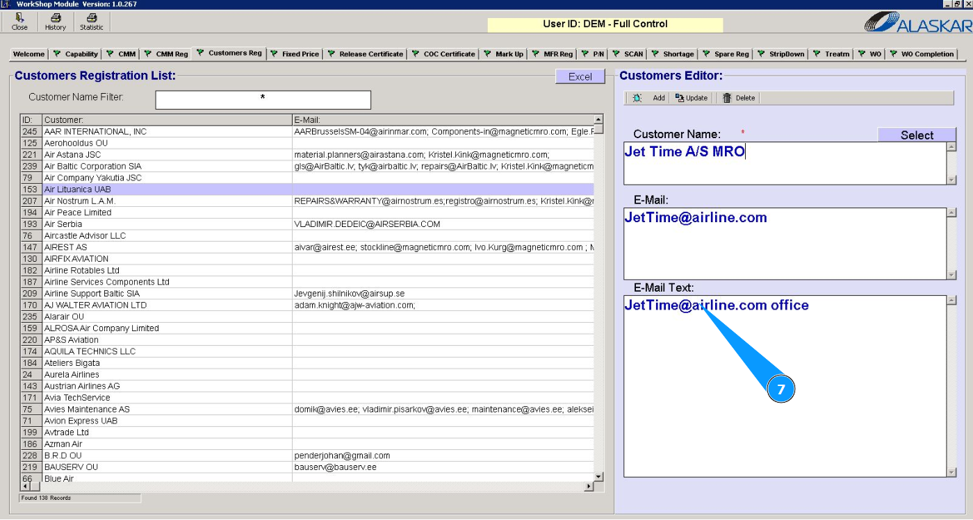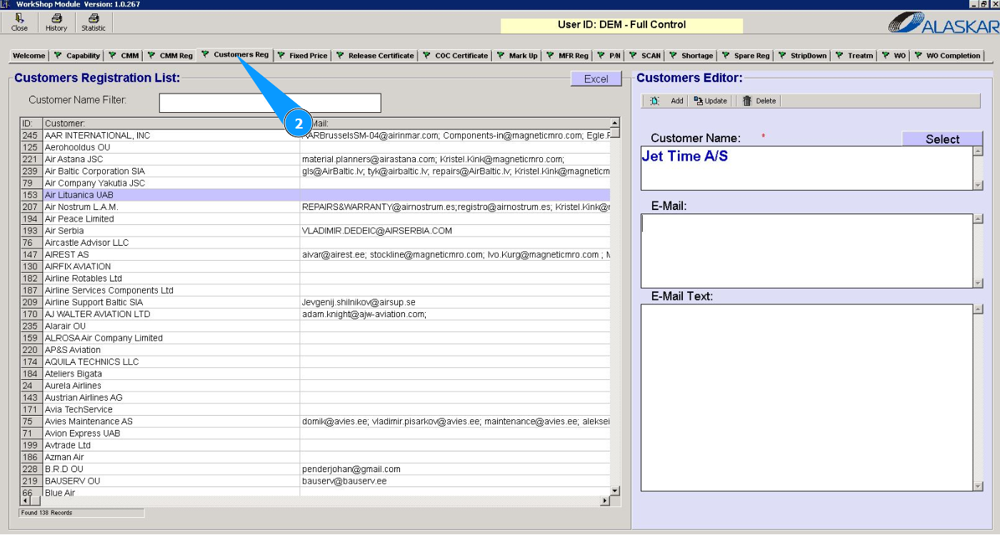 10. Check that the new customer is displayed in the window "Customer Registration List".