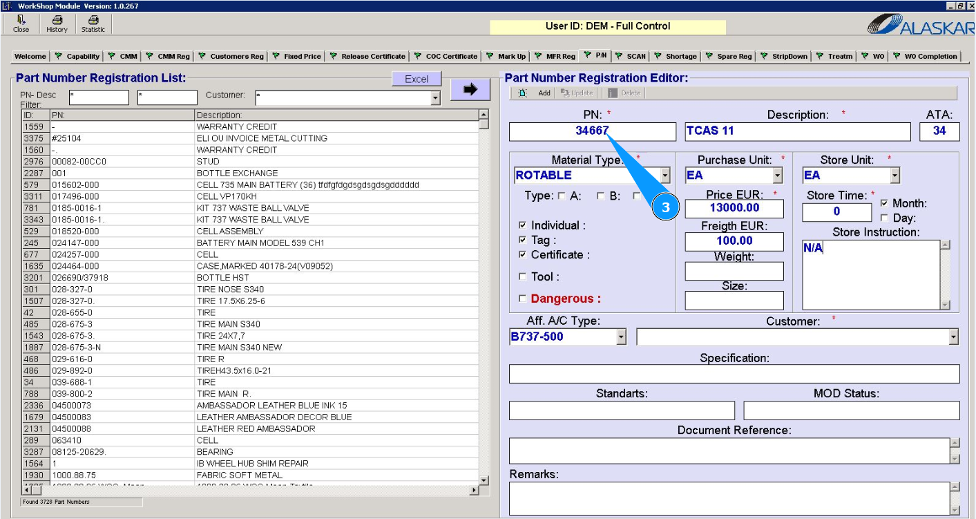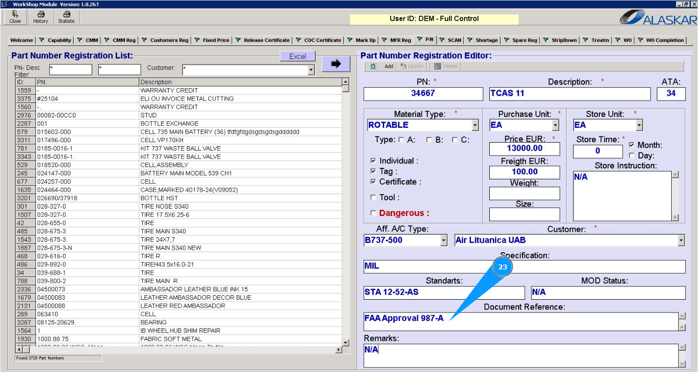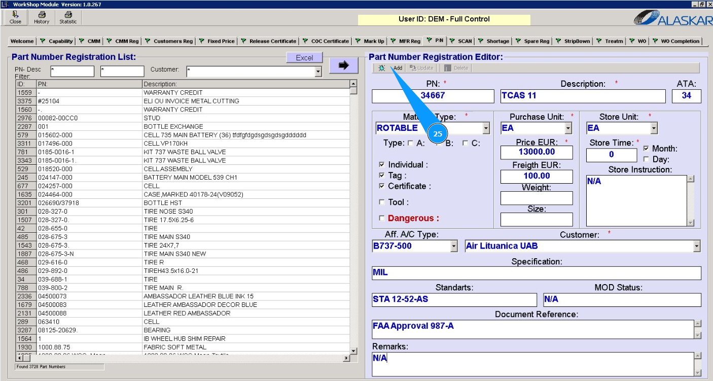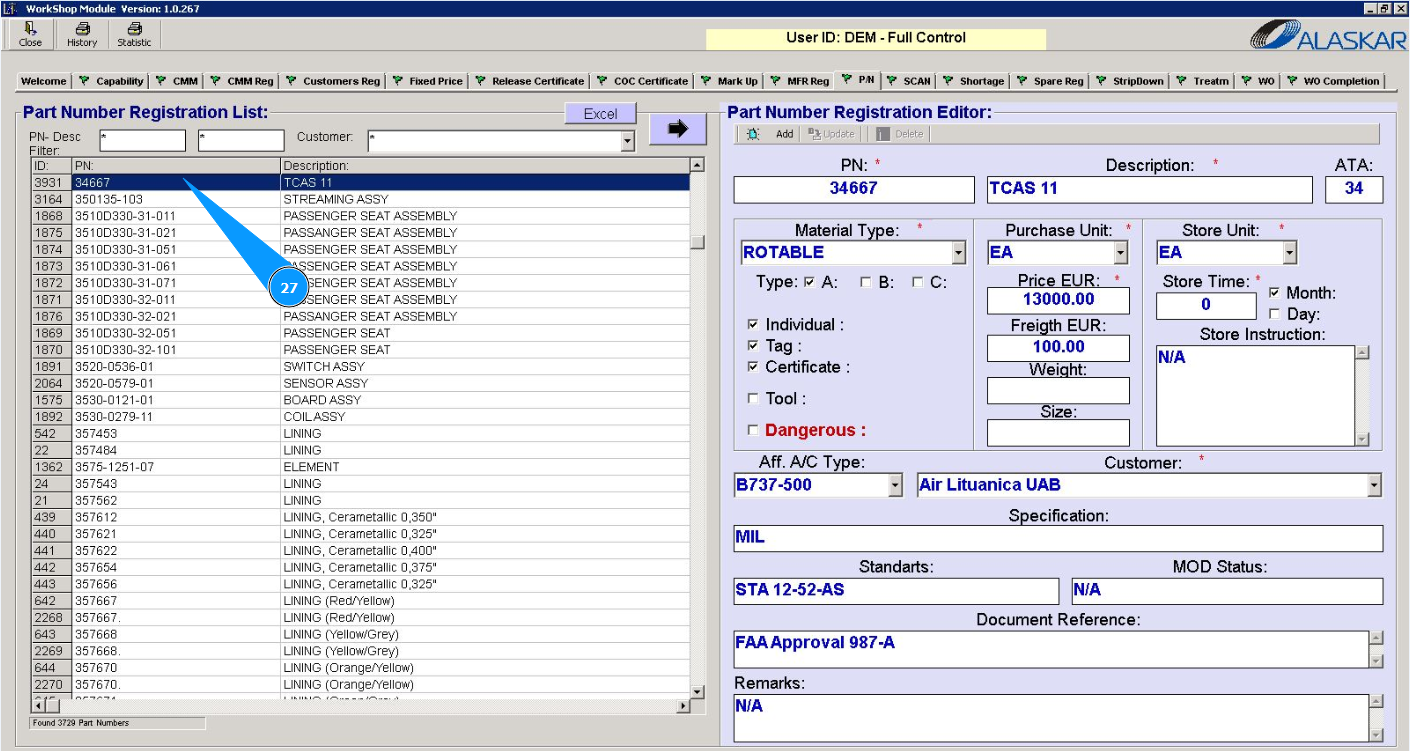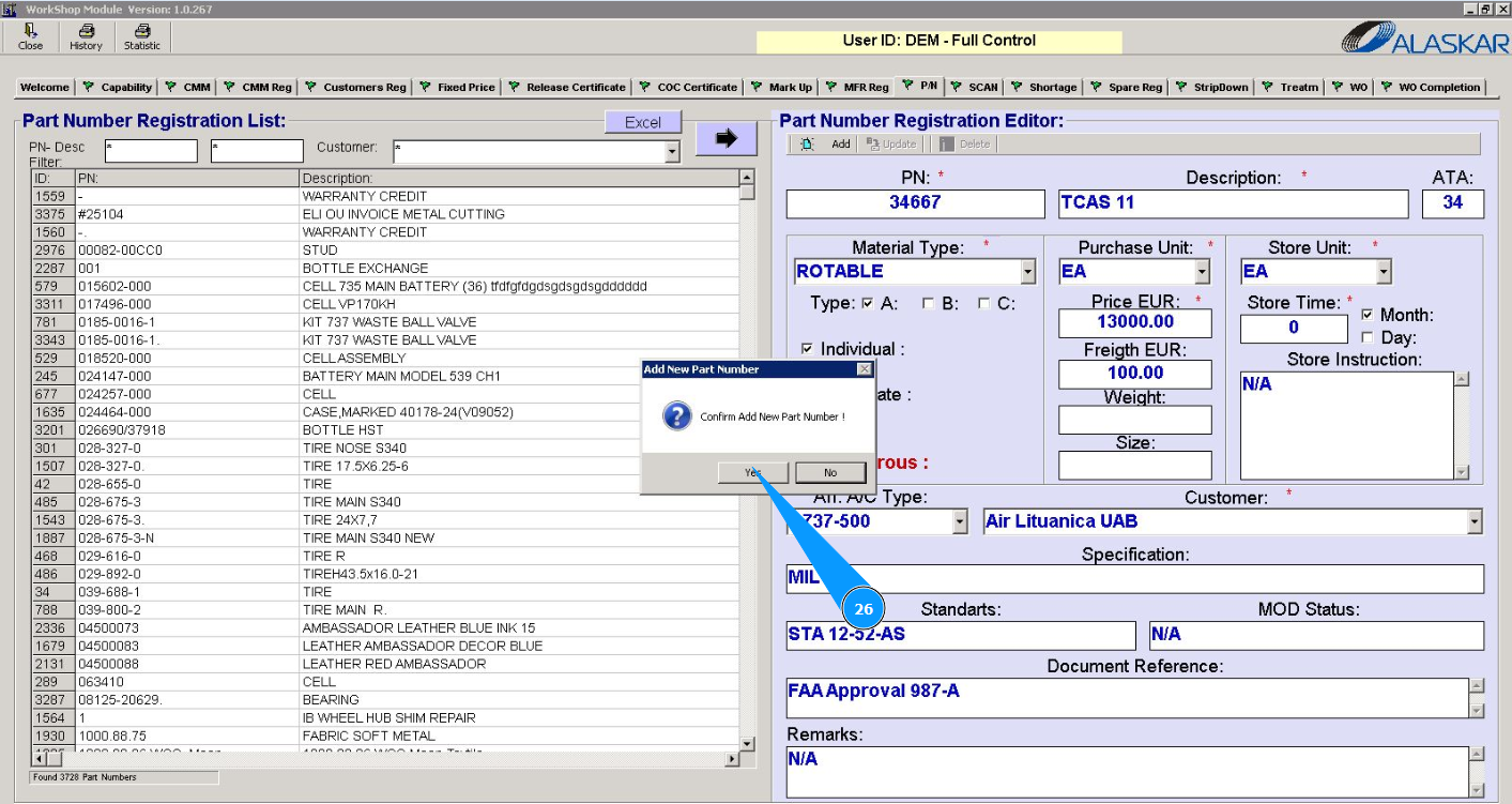27. Check that your part number is displayed in the window "Part Number Registration List".
