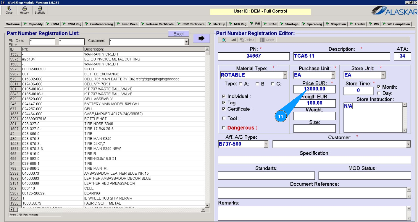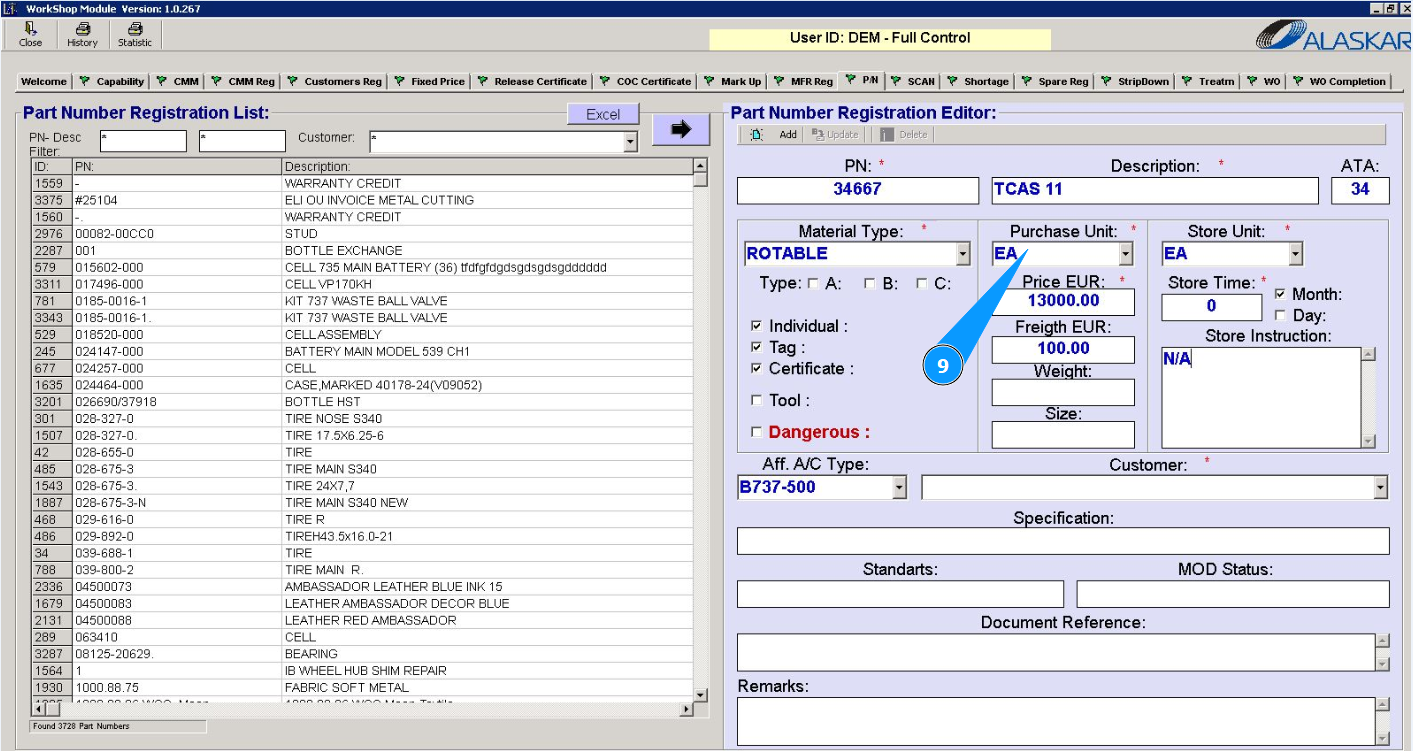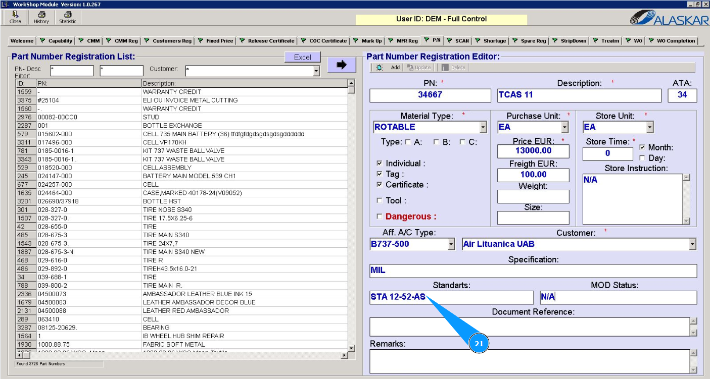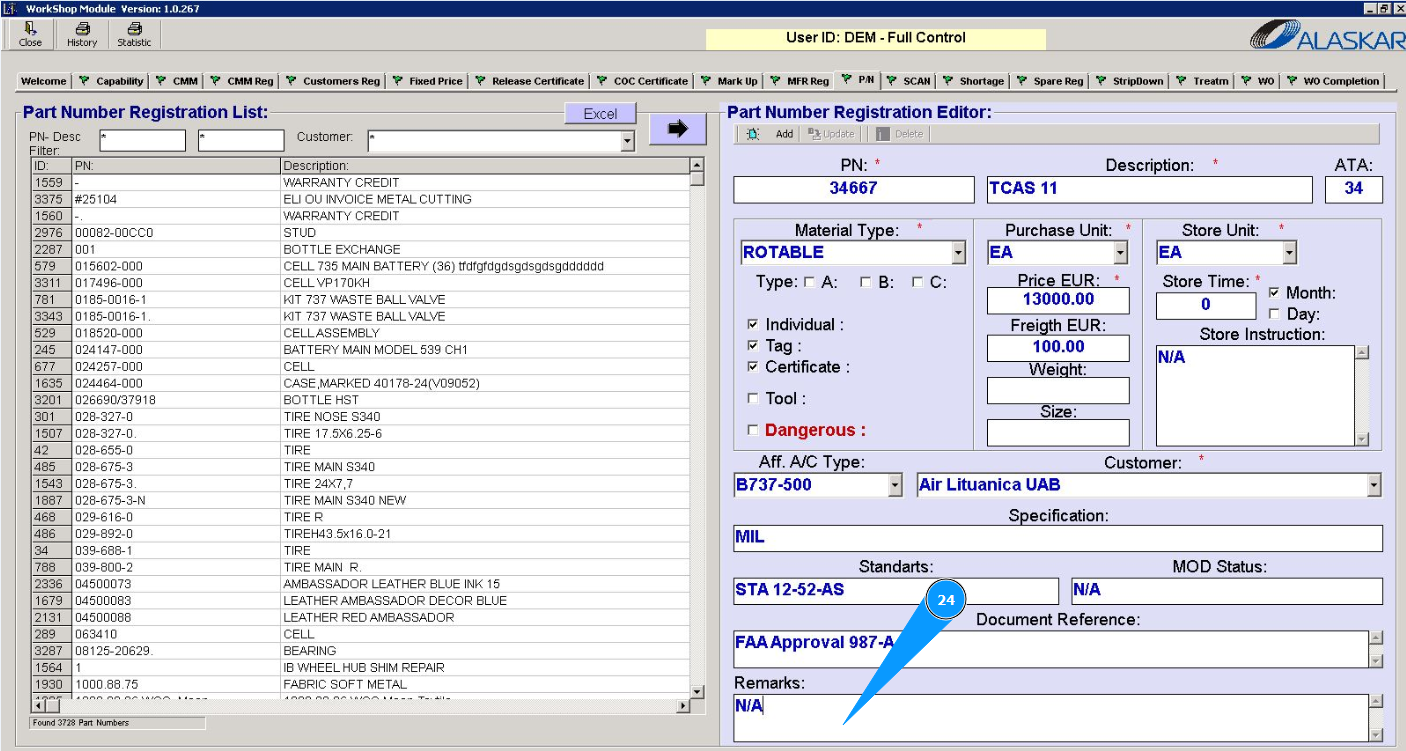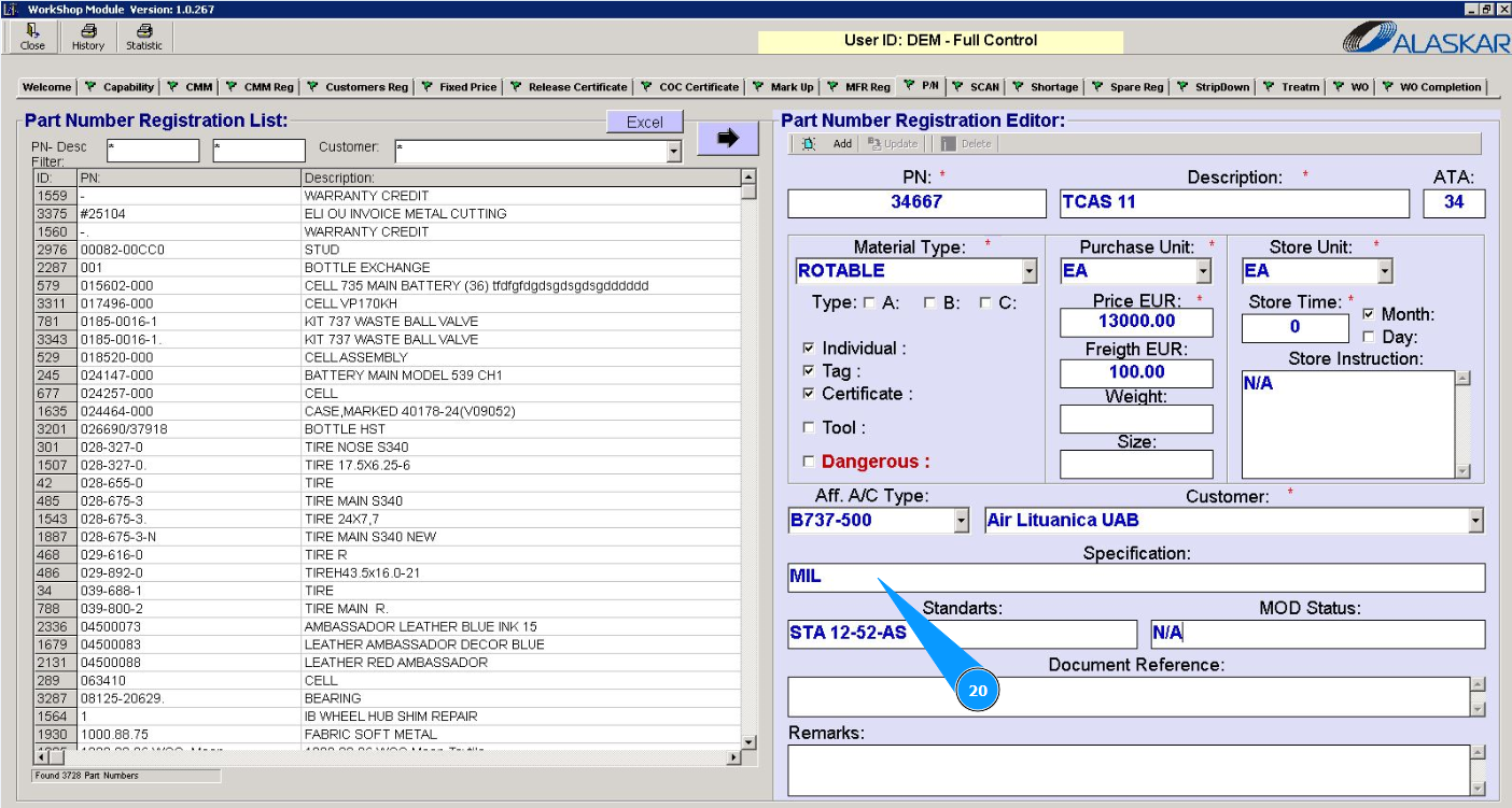 27. Check that your part number is displayed in the window "Part Number Registration List".