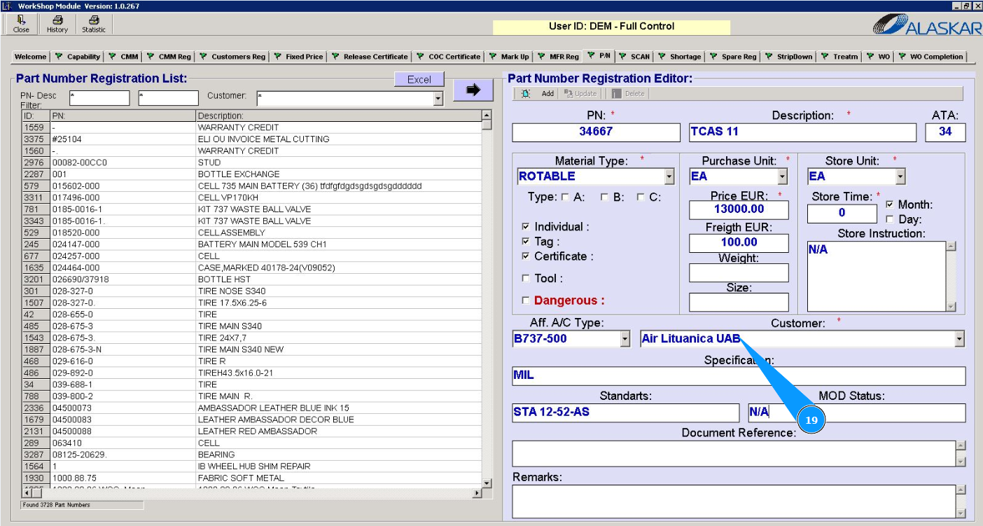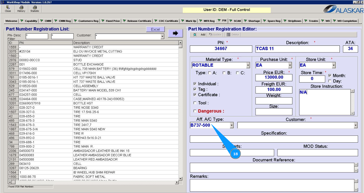18. Select the aircraft type from the dropdown list in the field "Aff. A/C Type".