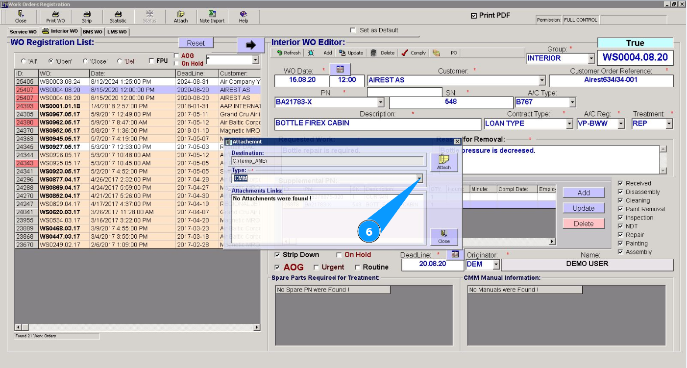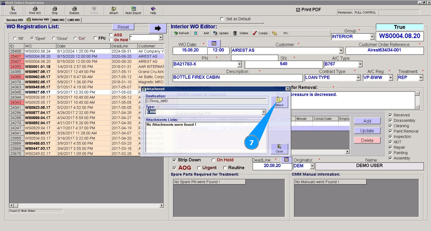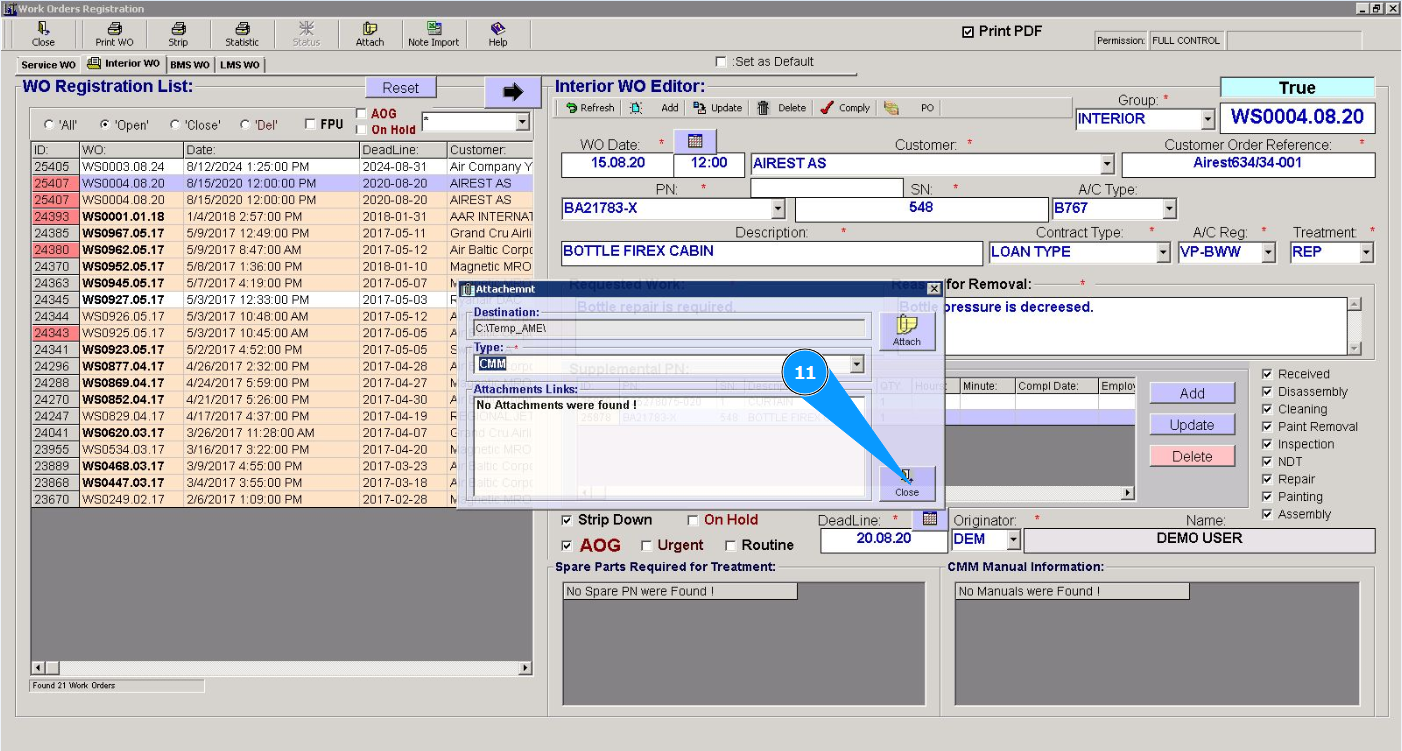 Note: It is possible to attach any document to any service WO or to a work order for interior equipment.