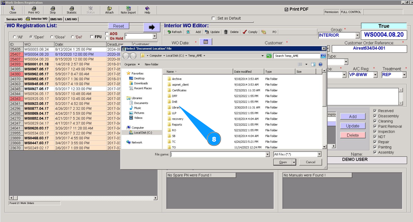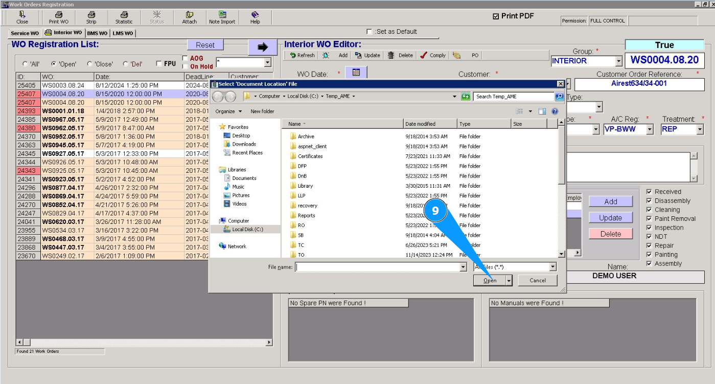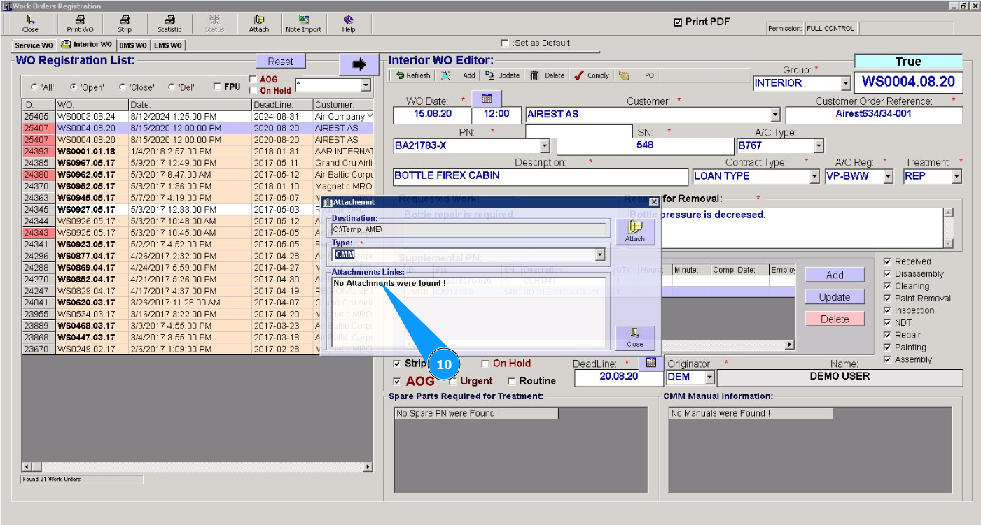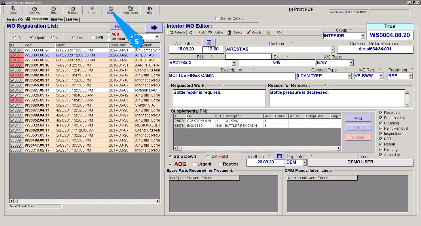 Note: It is possible to attach any document to any service WO or to a work order for interior equipment.