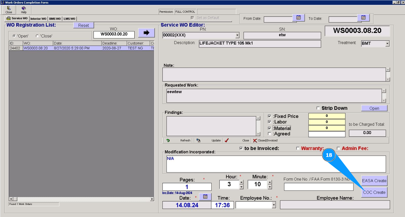 18. If necessary, to create a certificate of conformity, go to the creation editor and click on the button "CoC Create".
