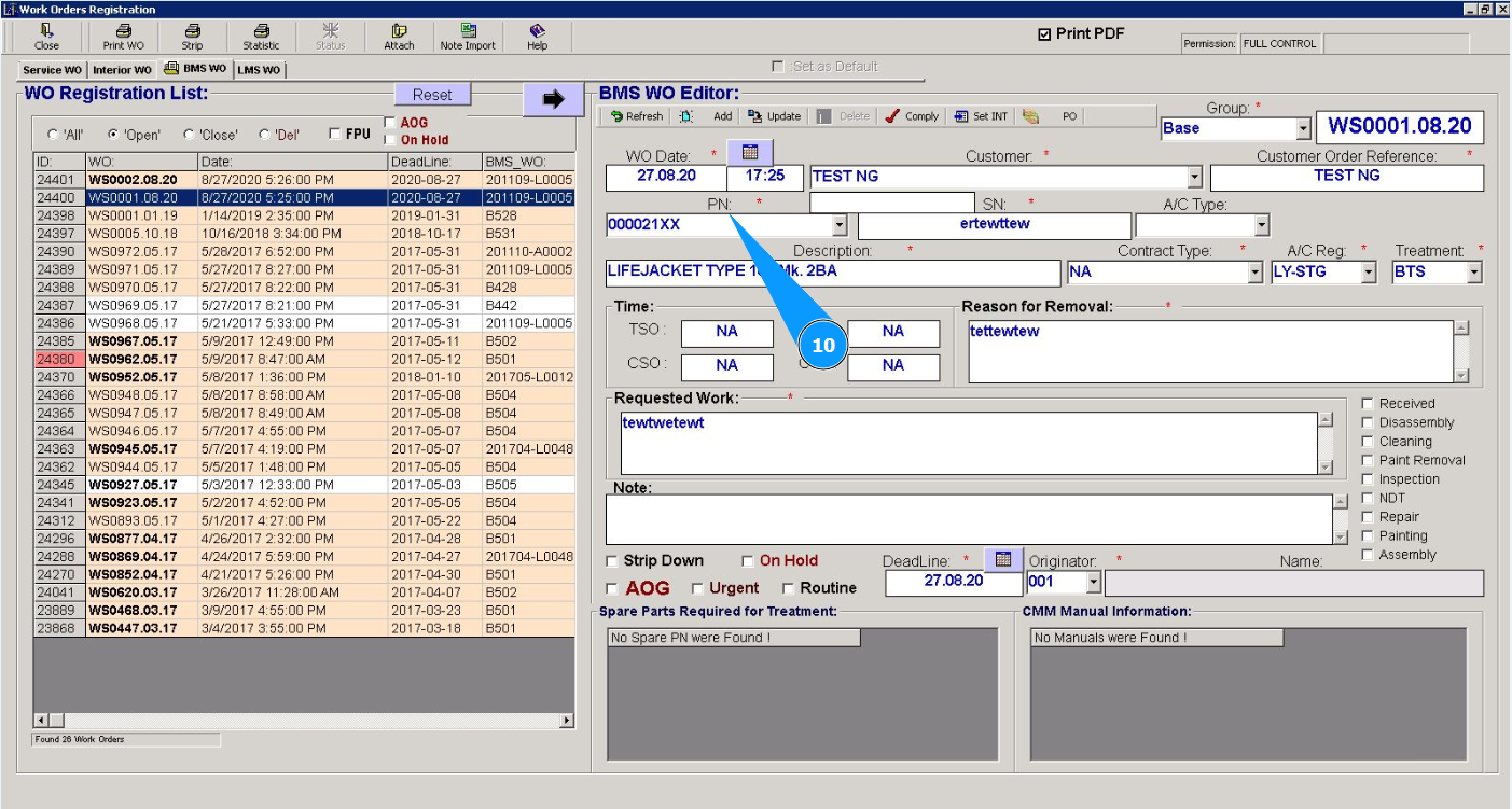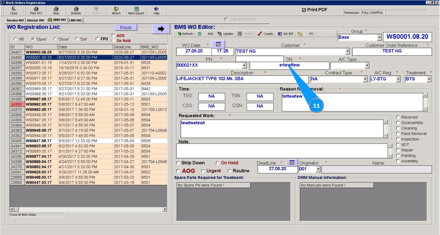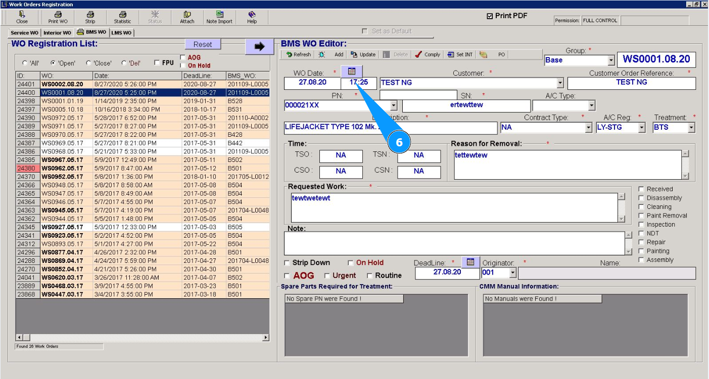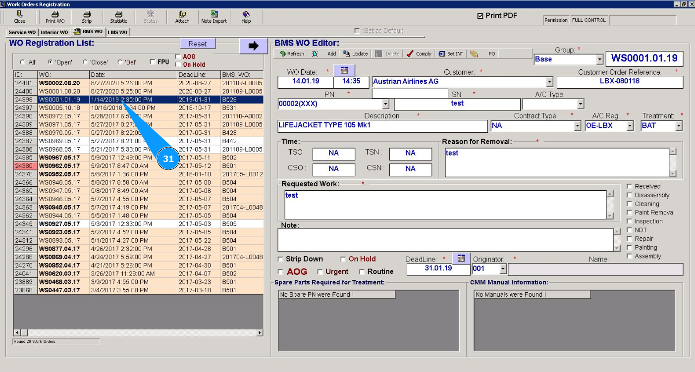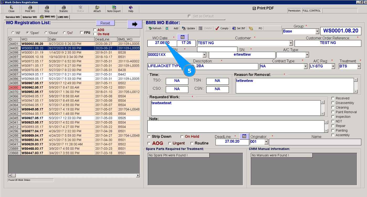 31. Check that the newly created WO is displayed in the window "WO Registration List".
