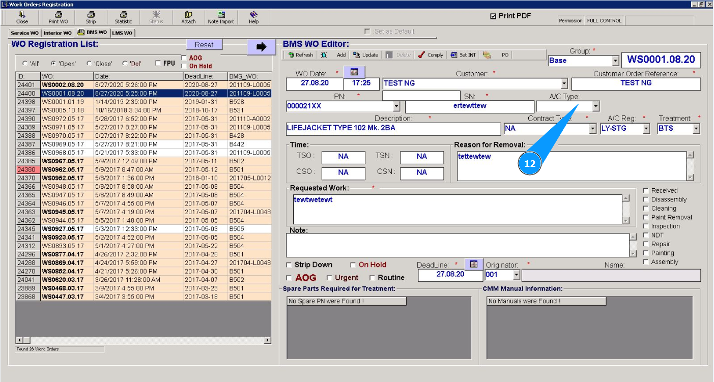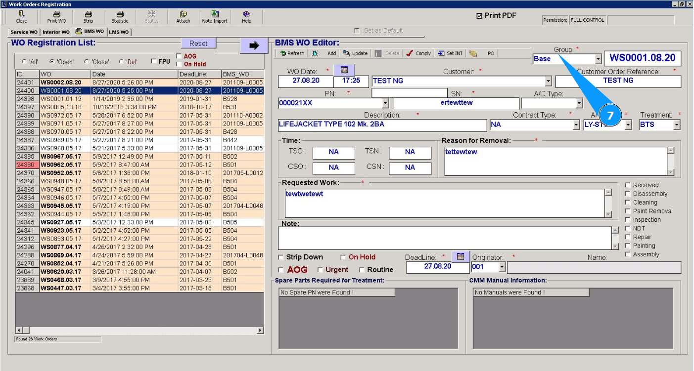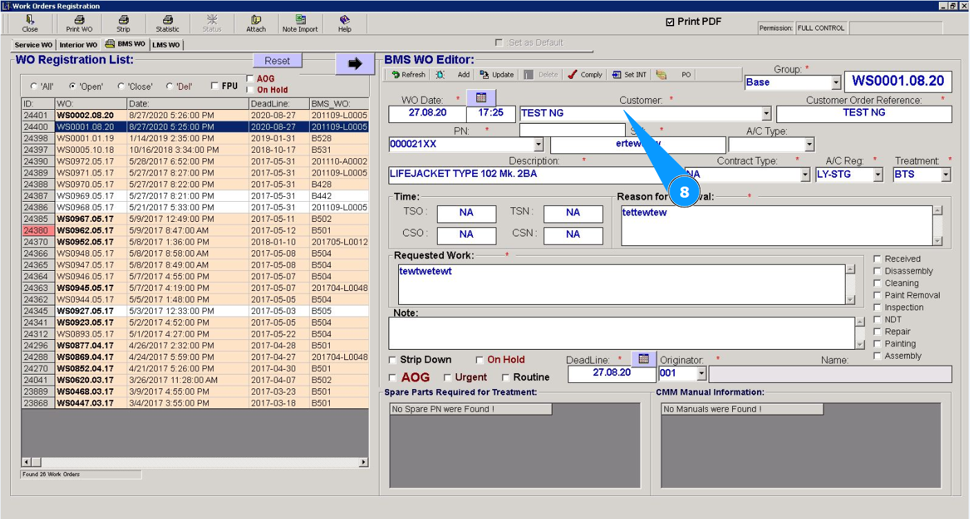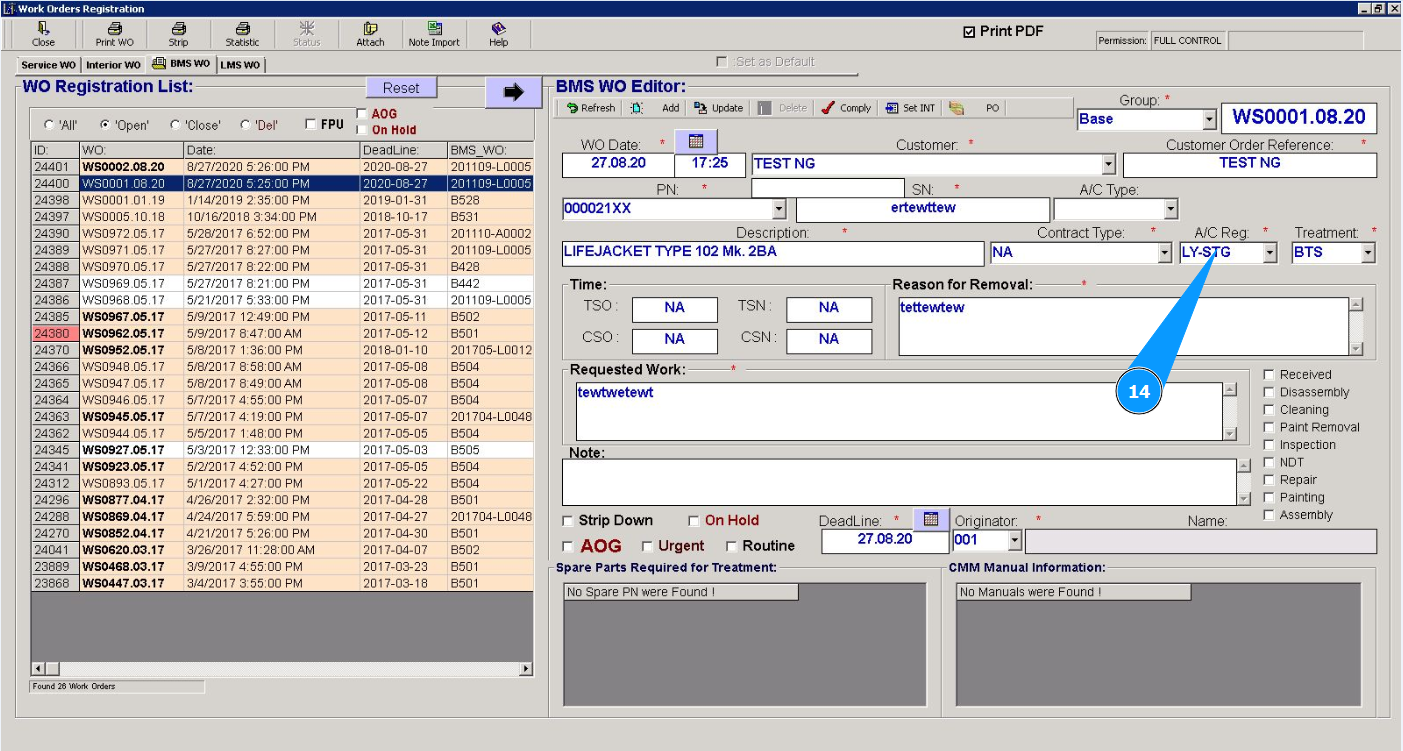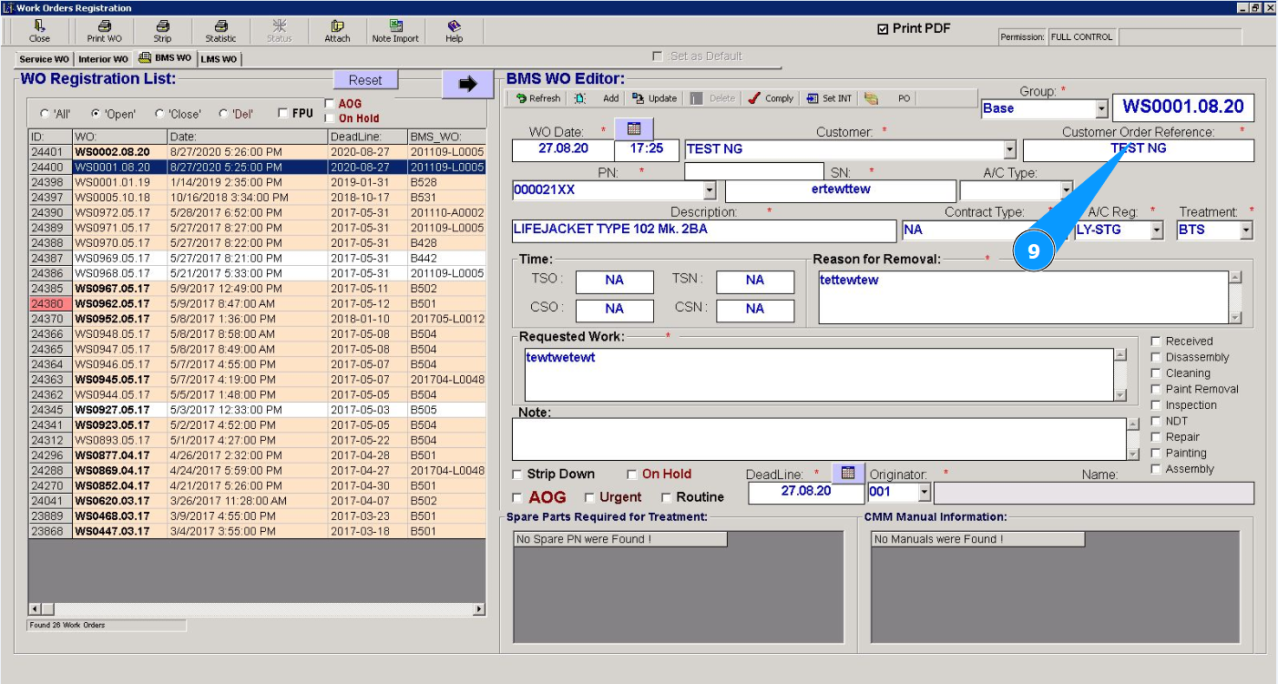 31. Check that the newly created WO is displayed in the window "WO Registration List".