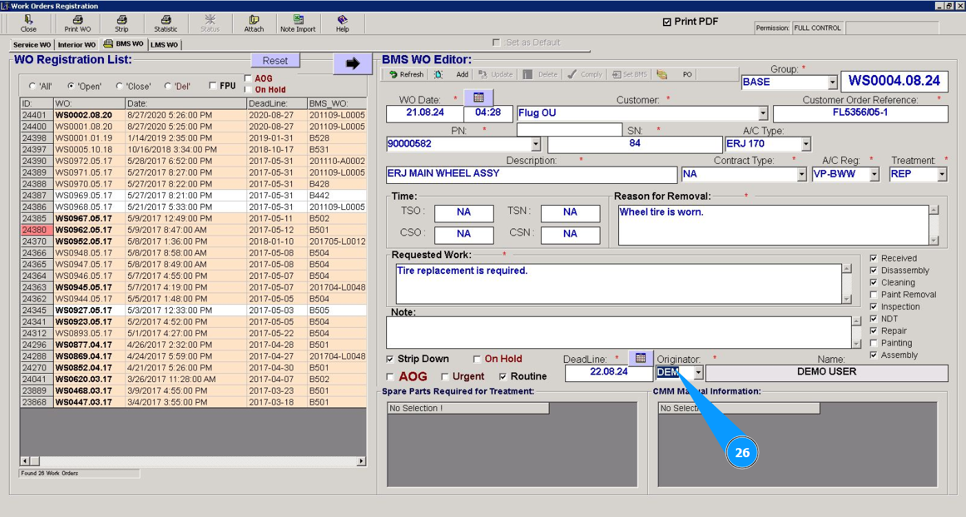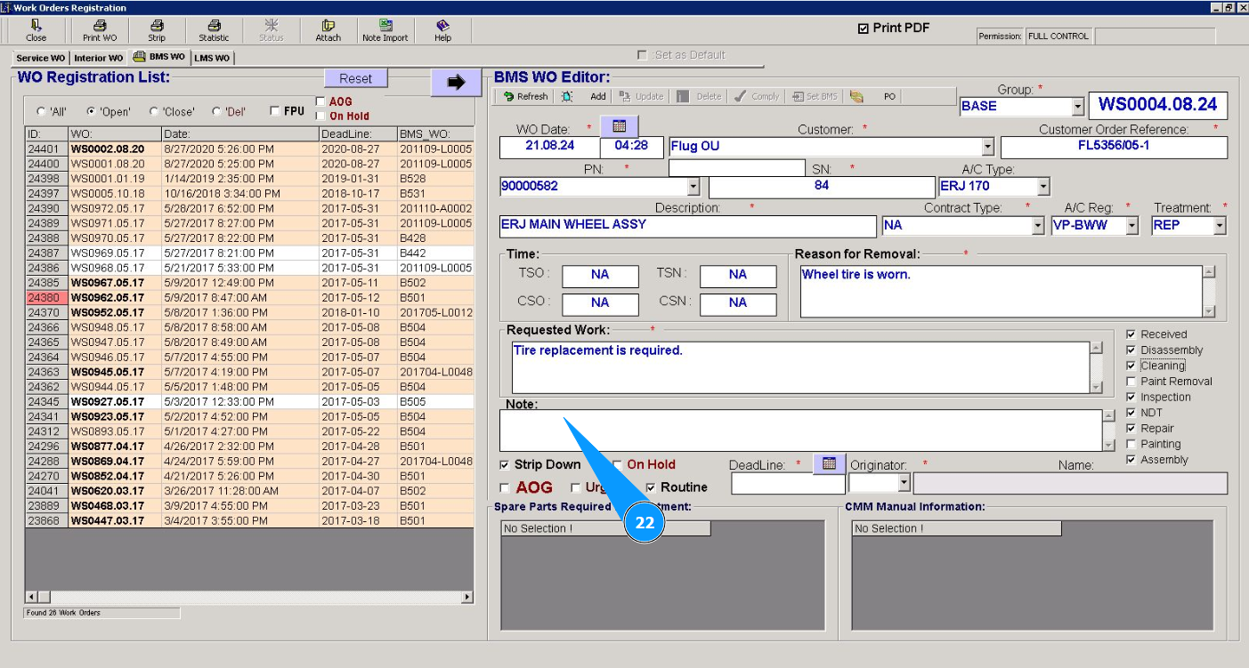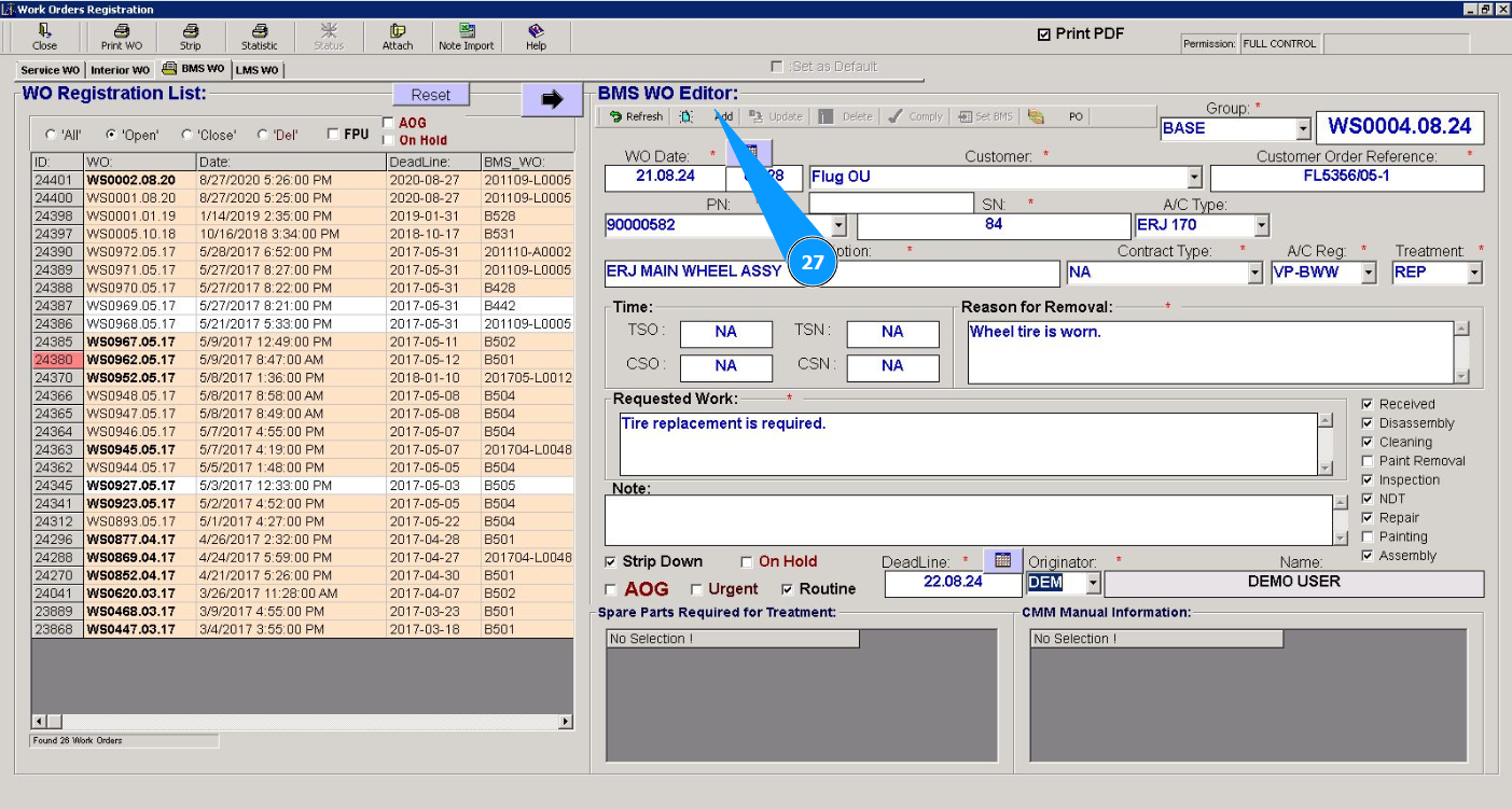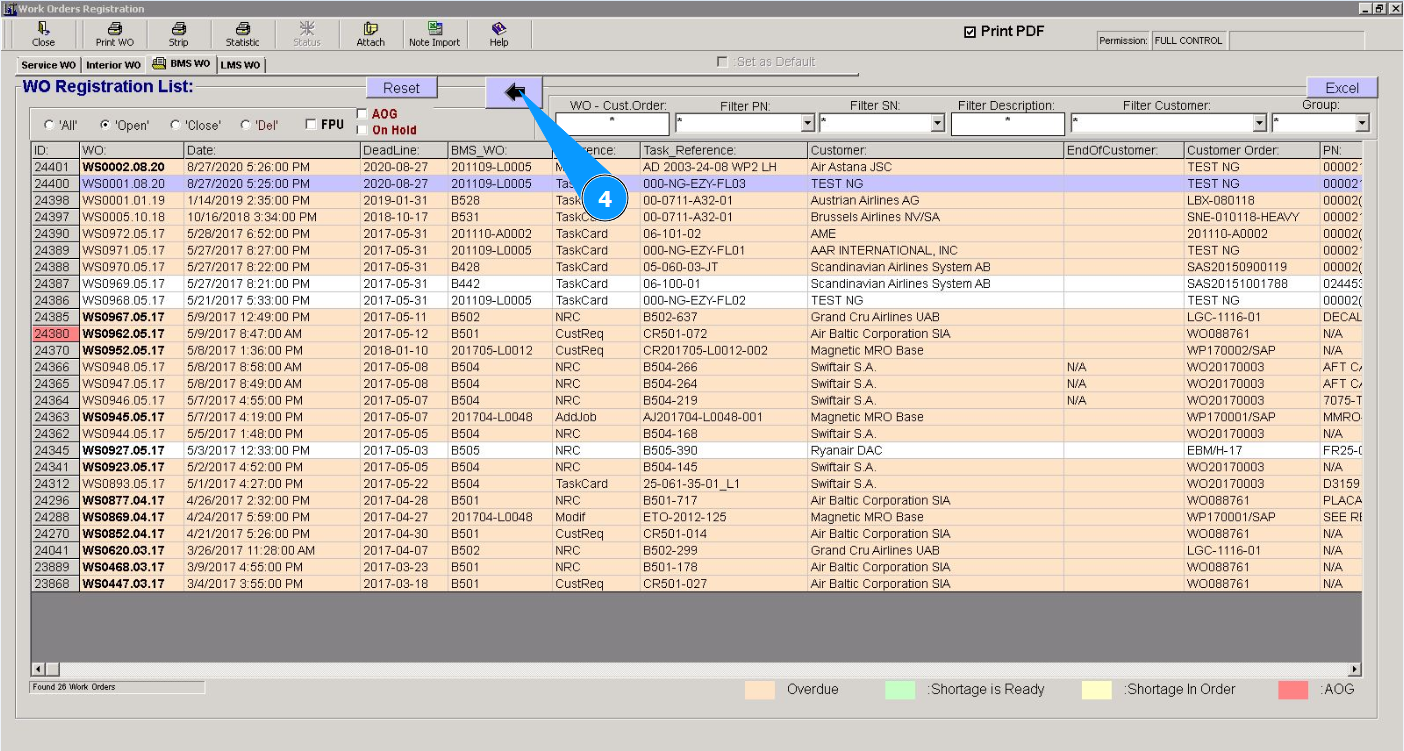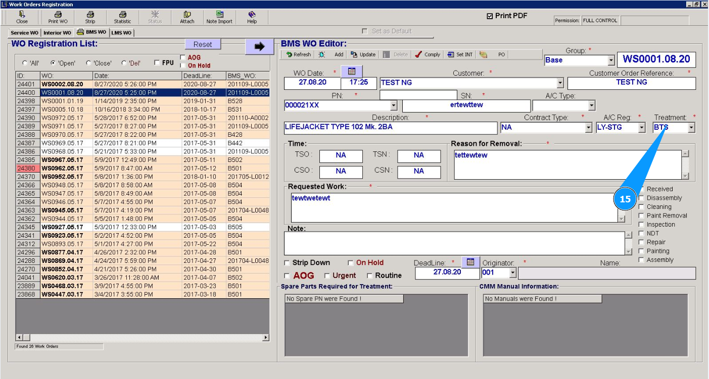 31. Check that the newly created WO is displayed in the window "WO Registration List".