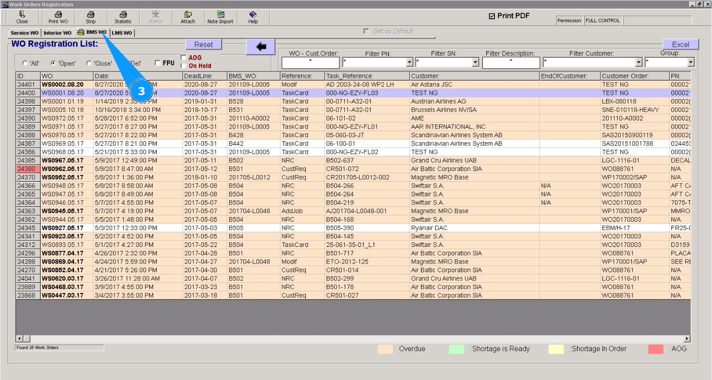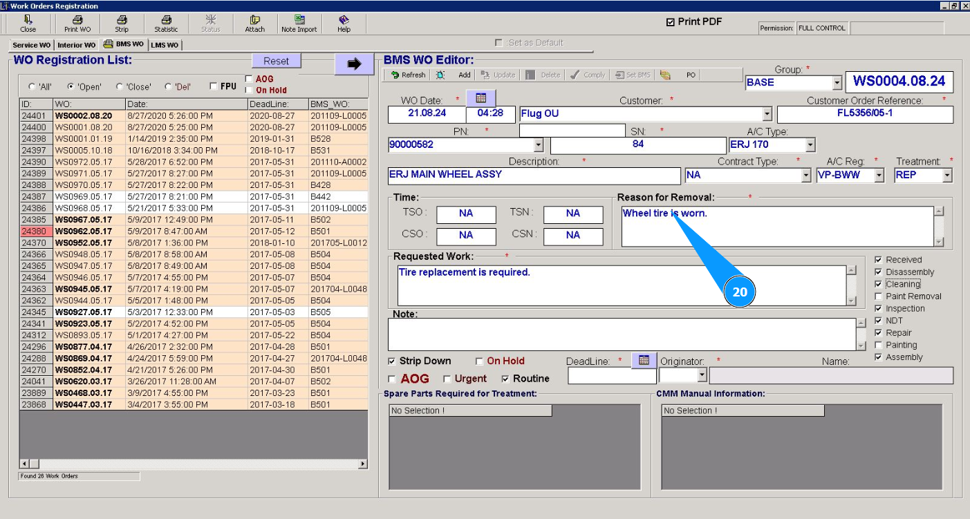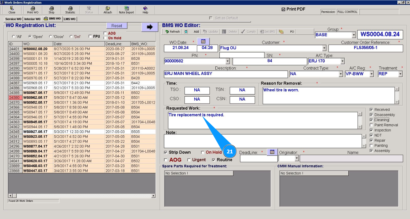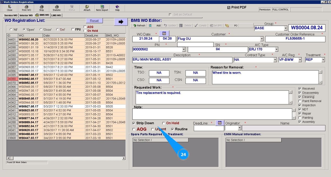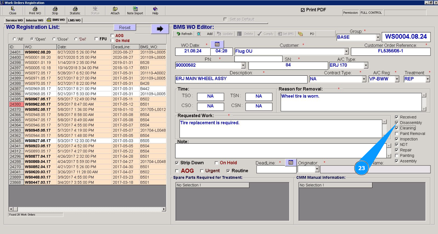 31. Check that the newly created WO is displayed in the window "WO Registration List".