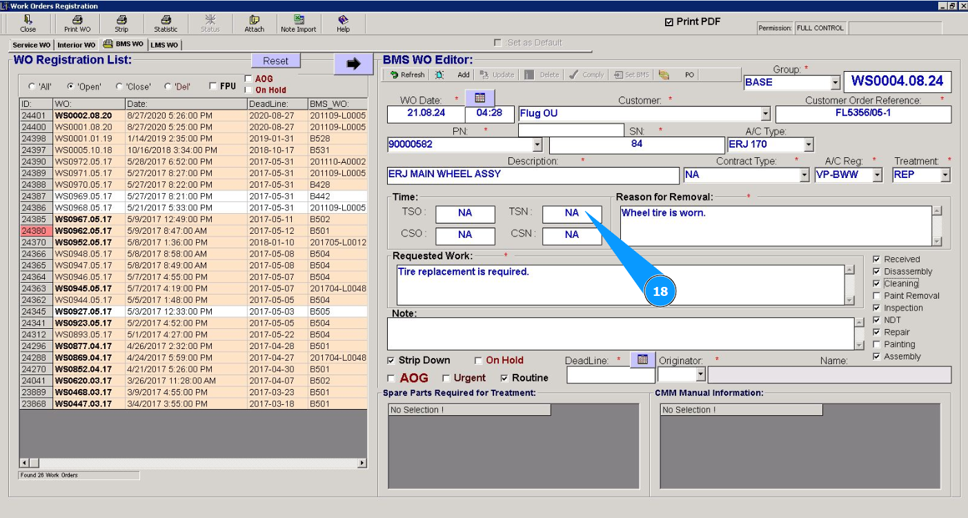 Note: Creating a Base Maintenace Shop WO is possible from the tab "WO" or via using the submodule "WO".