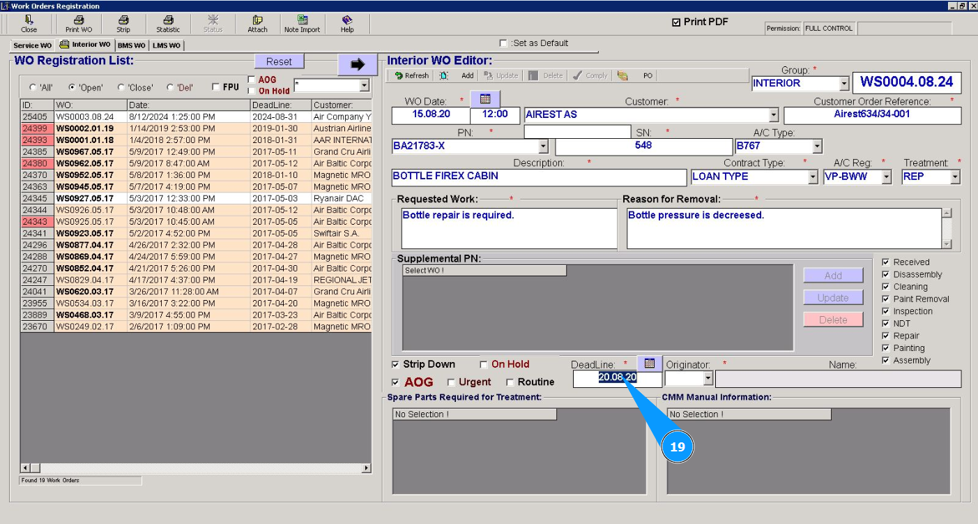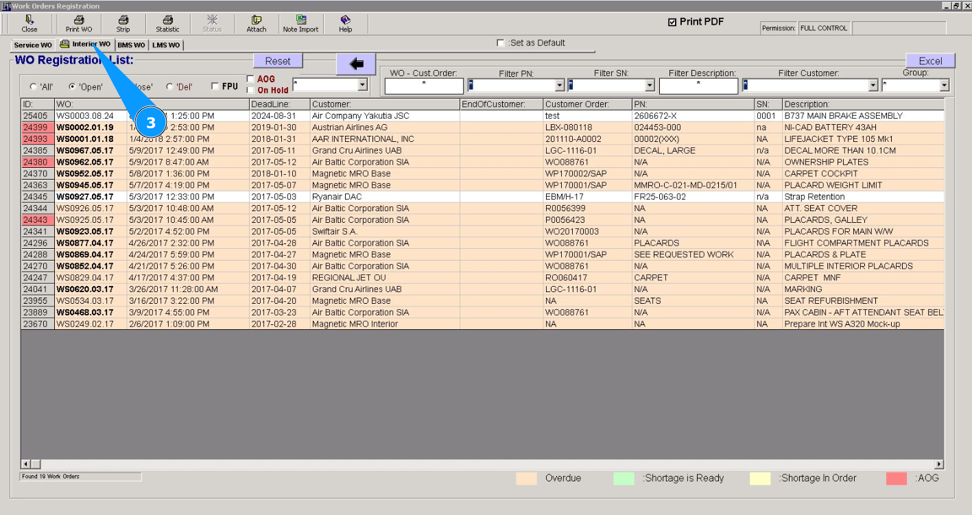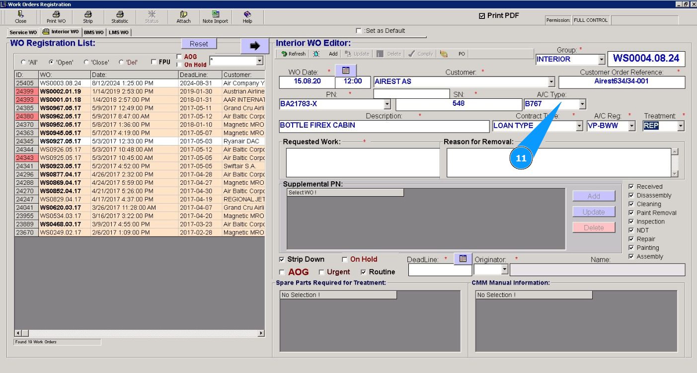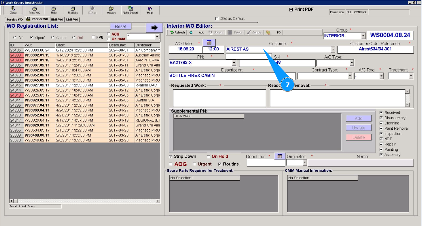 1. In order to create a working order for interior equipment (Interior WO), go to the module "Workshop".