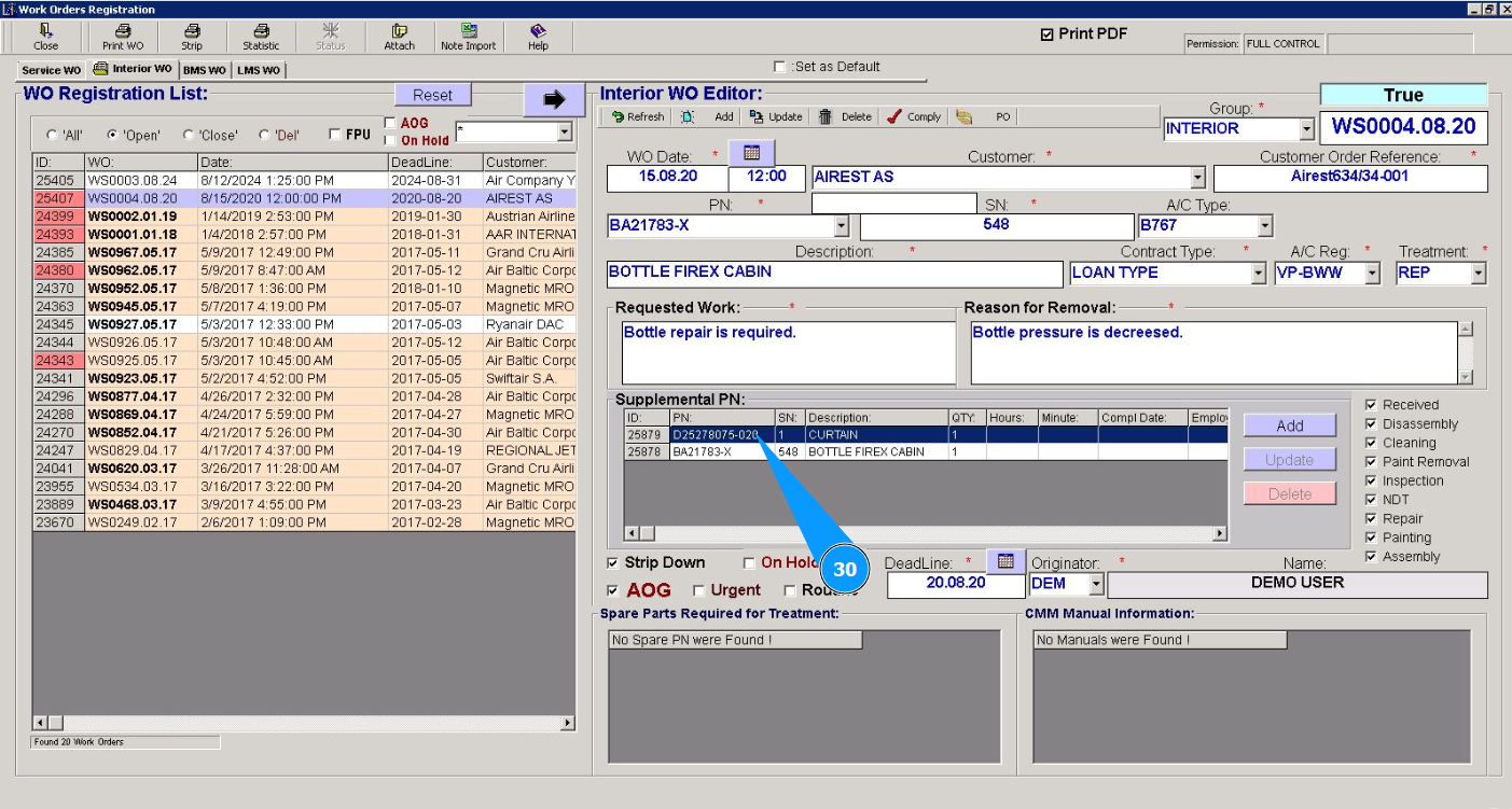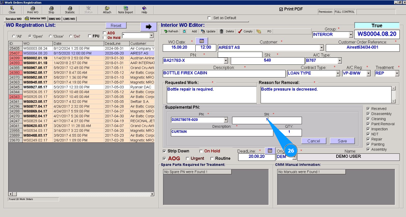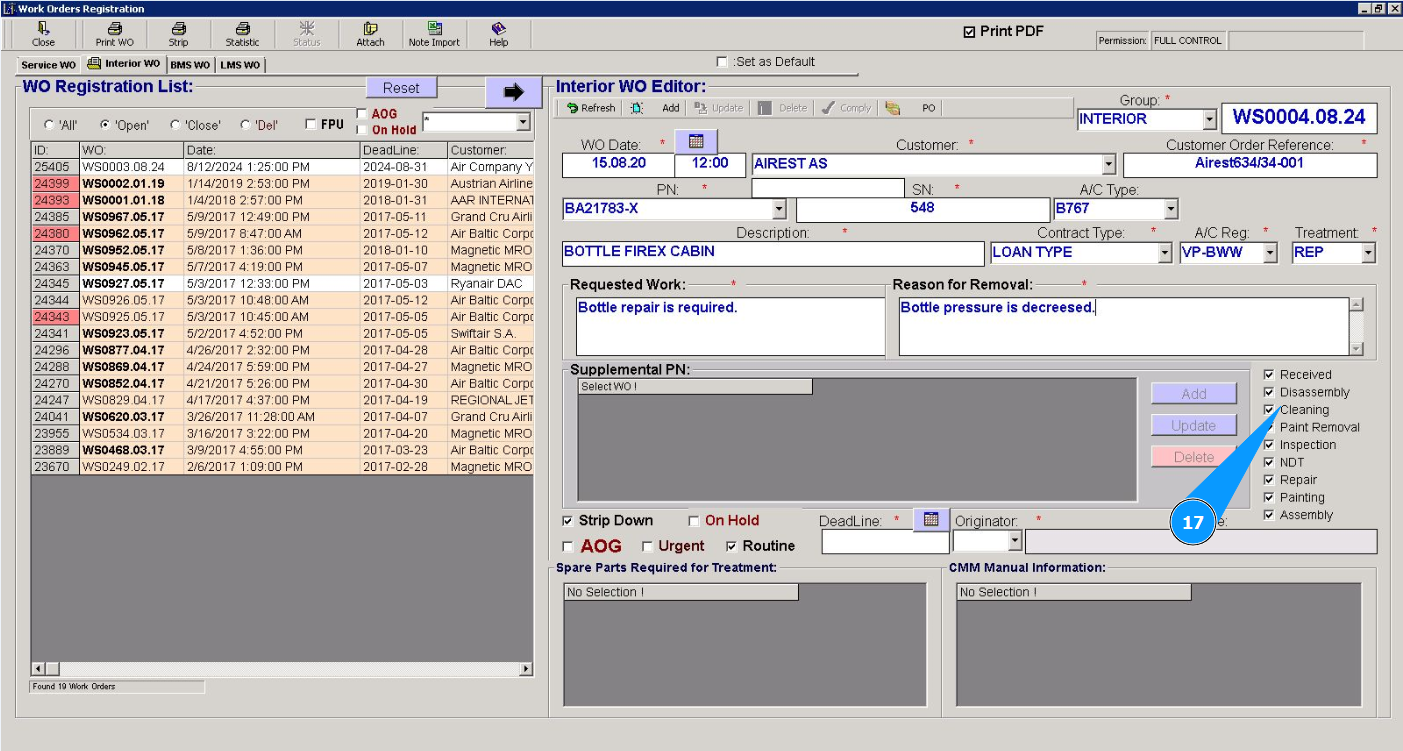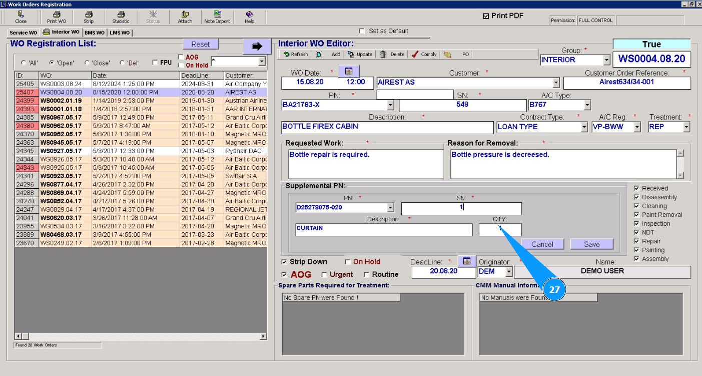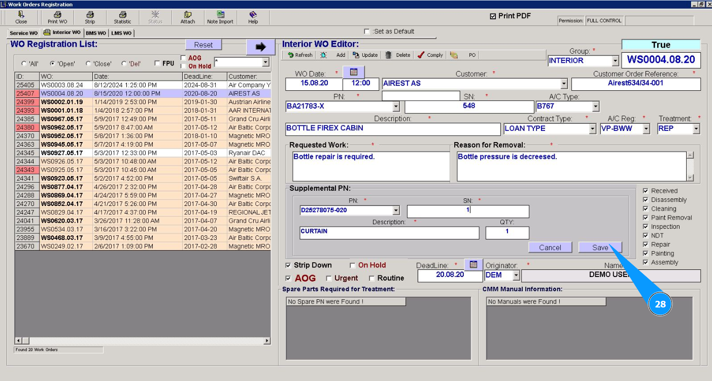 23. Check that the newly created WO is displayed in the window "WO Registration List".