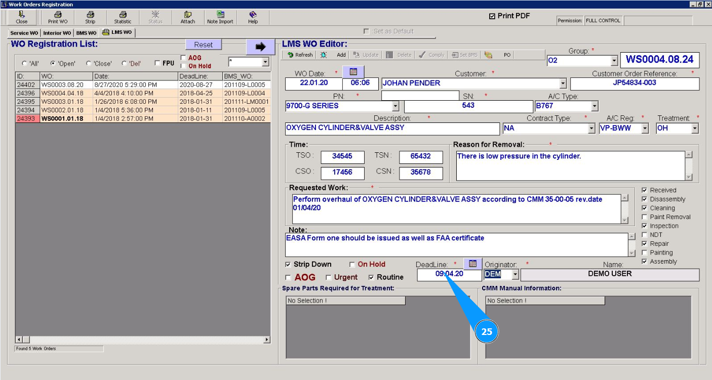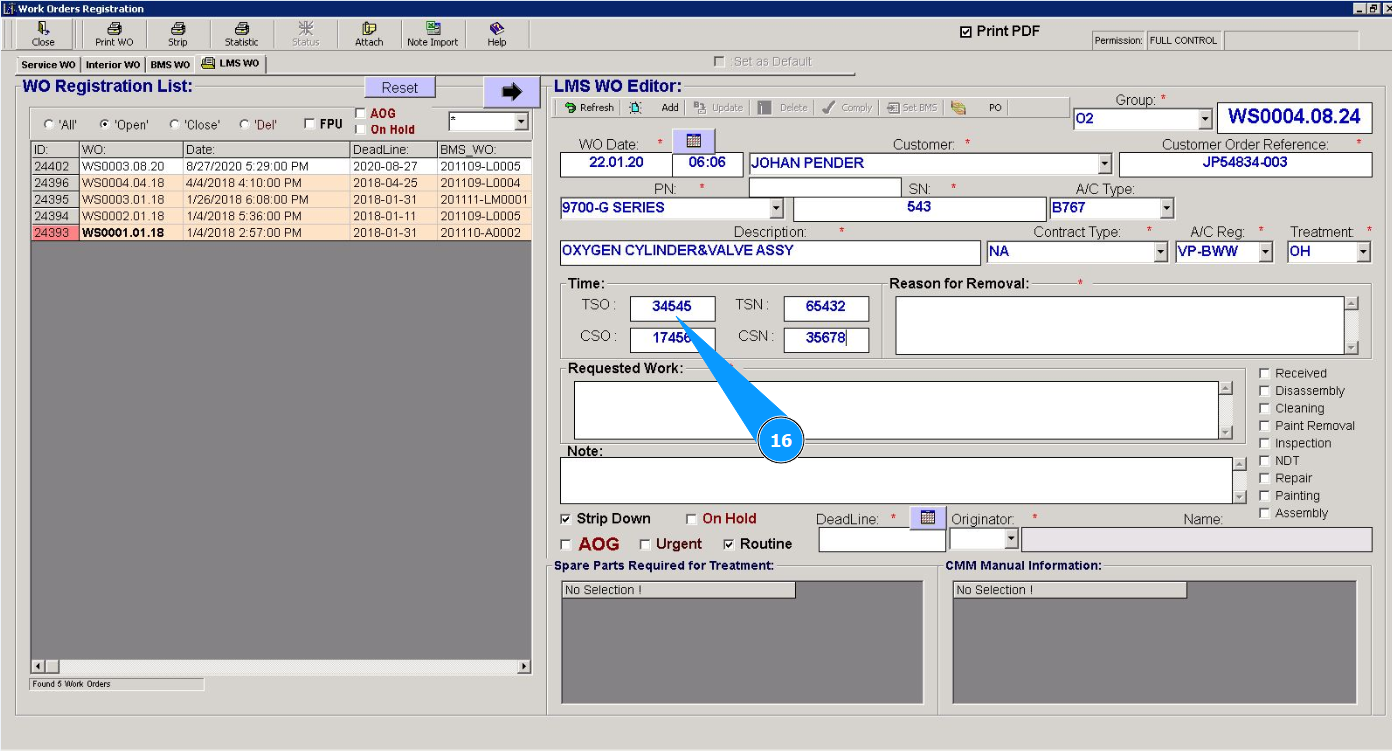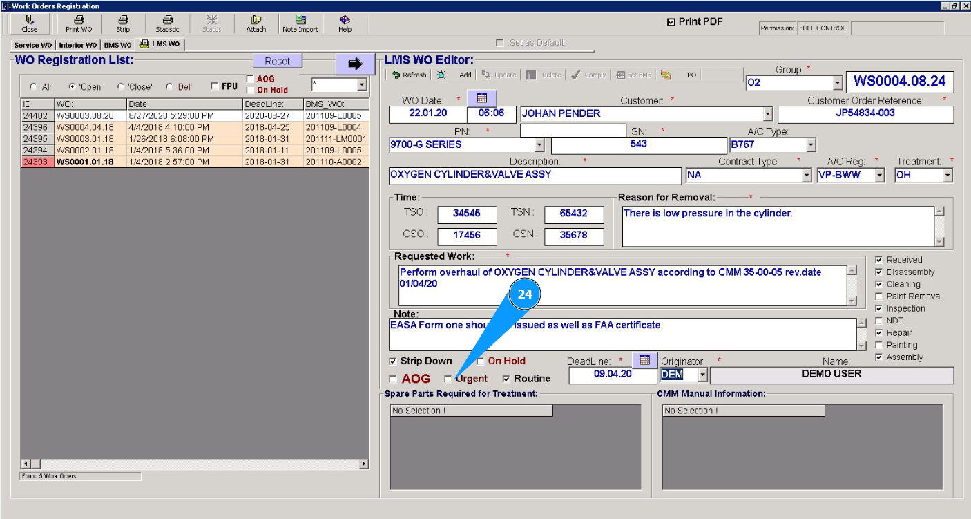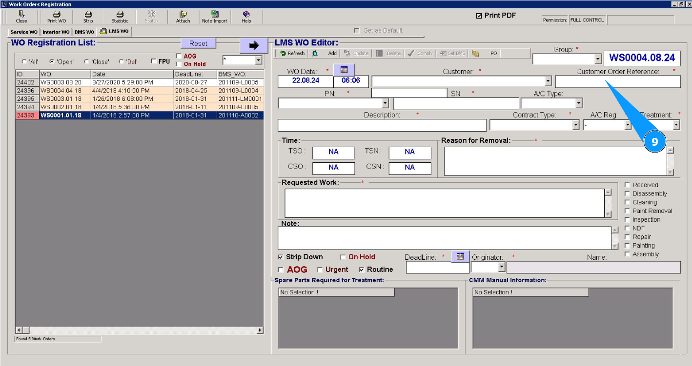 Attention: If you need to immediately close this work order for line maintenance (Line Maintenace Shop WO), go to the corresponding instructions: