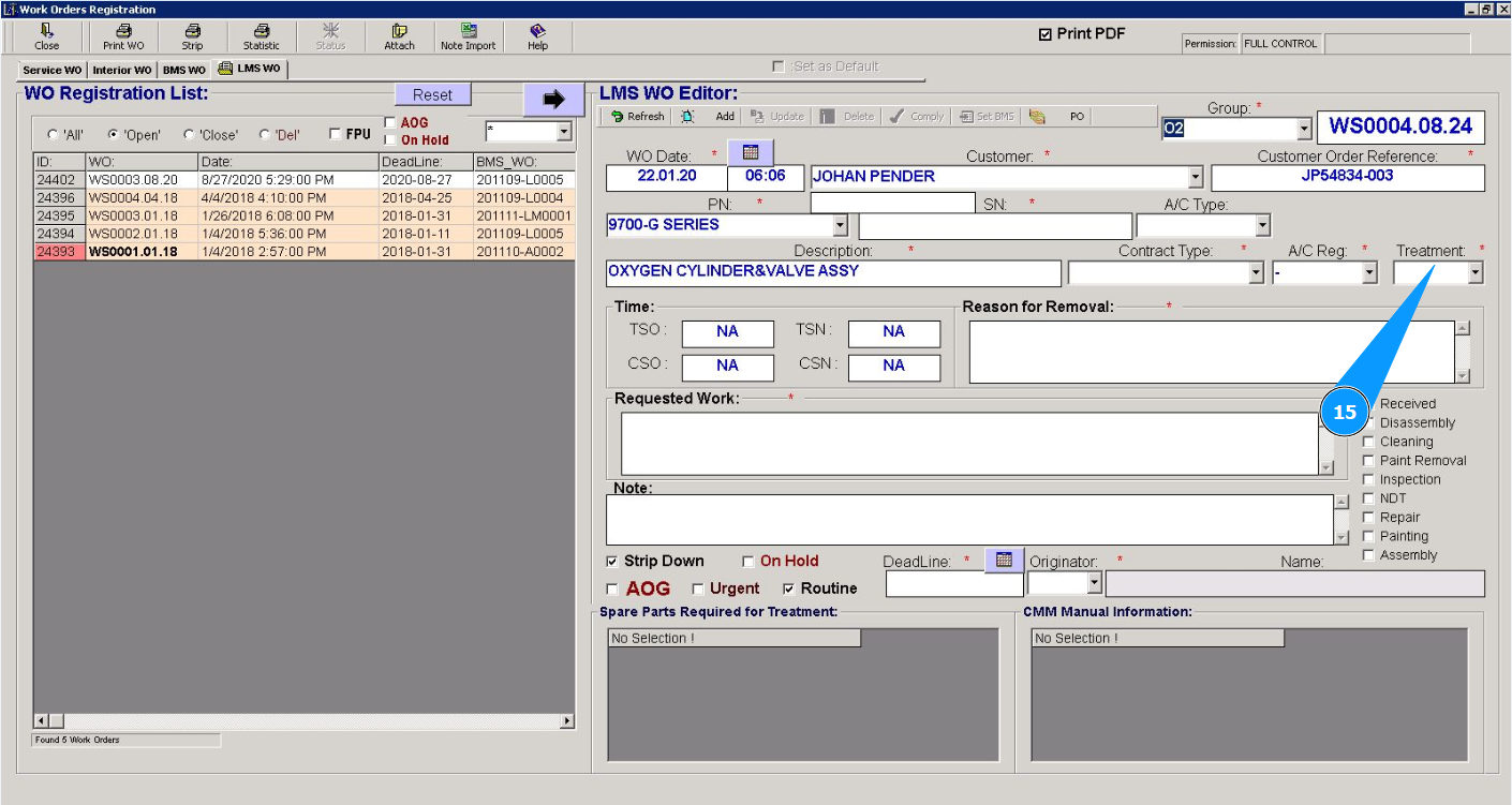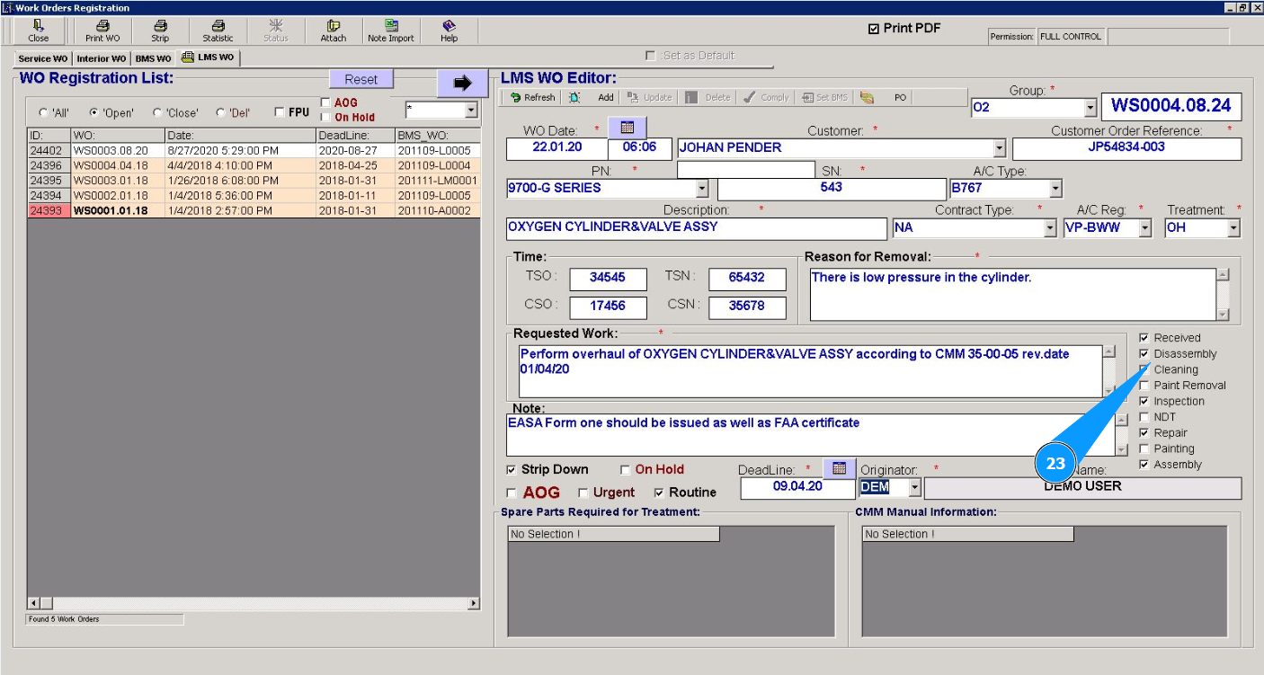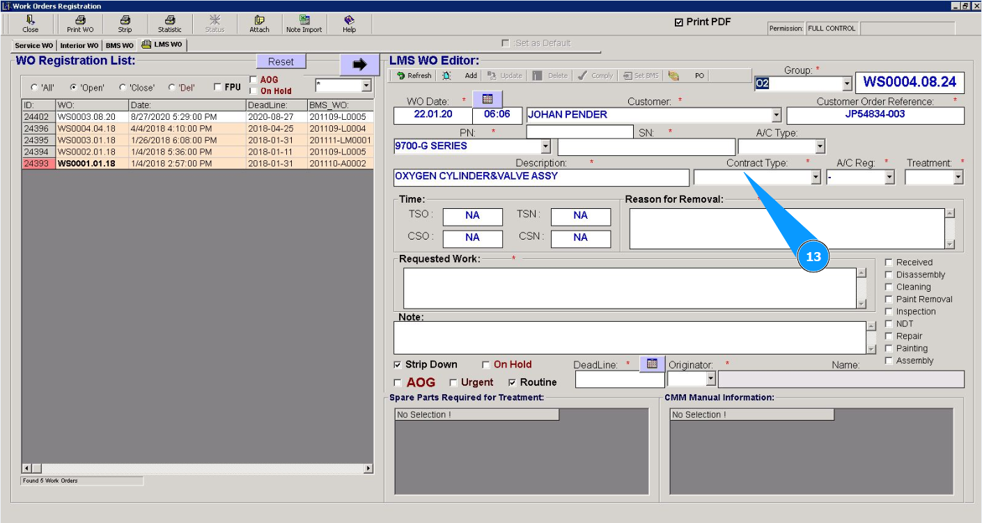 Attention: If you need to immediately close this work order for line maintenance (Line Maintenace Shop WO), go to the corresponding instructions: