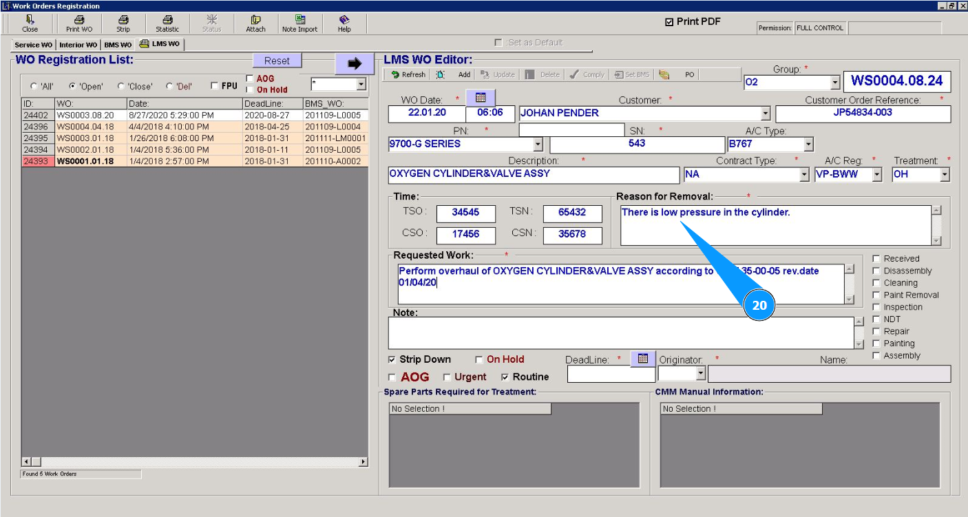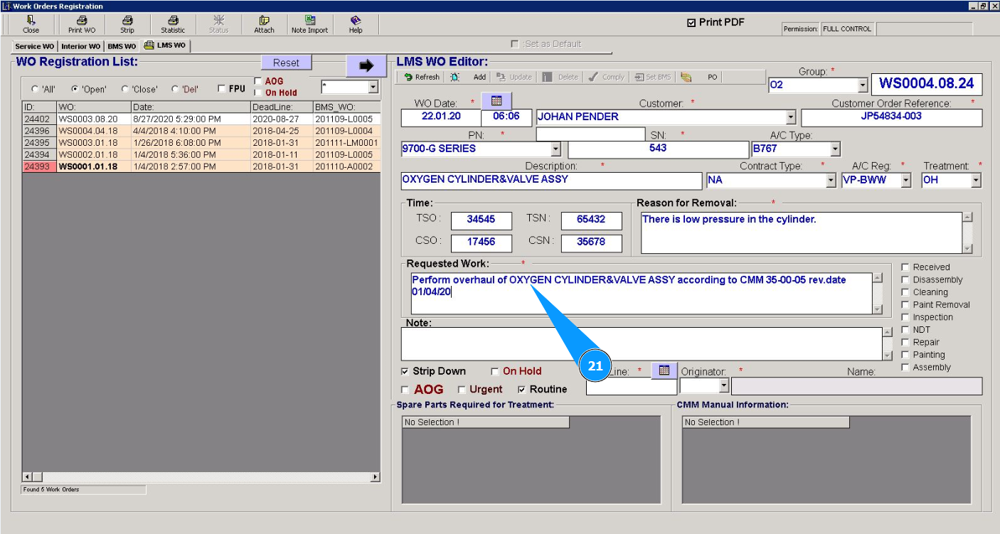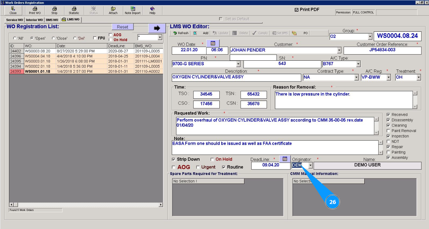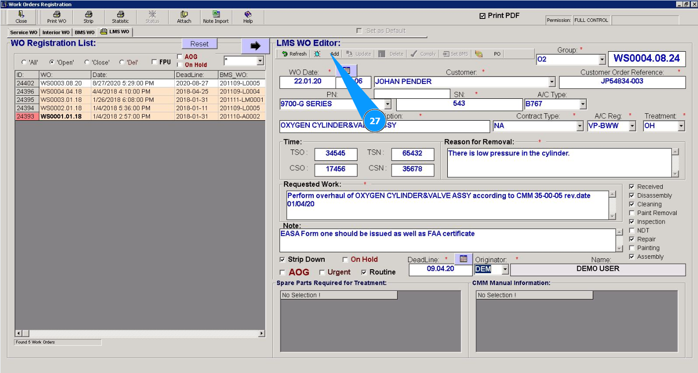 How to create a Work order for Line Maintenance Shop