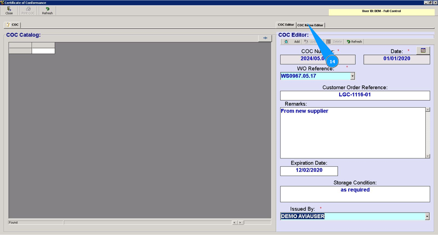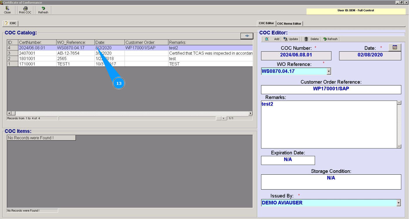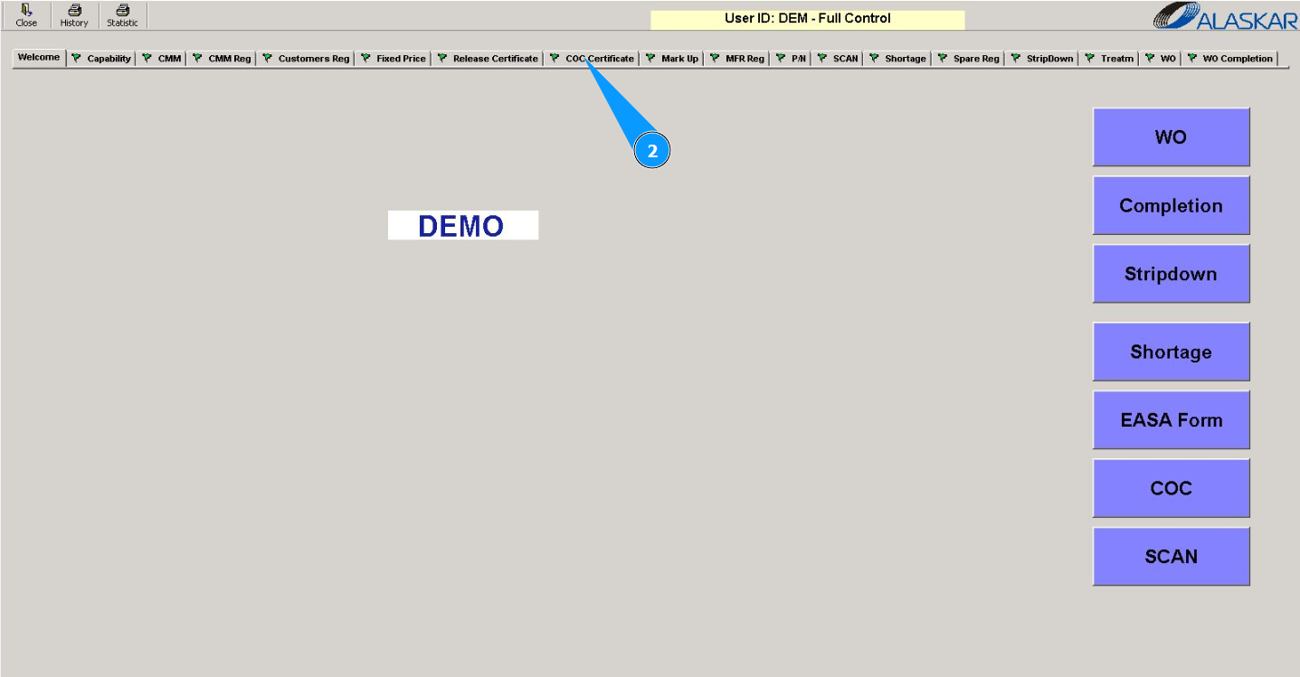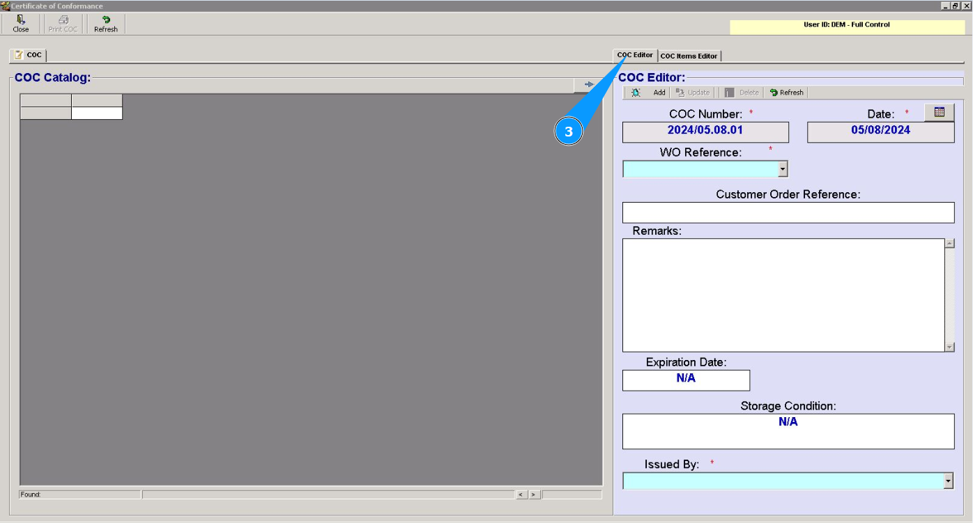 Note: You can issue a certificate of conformity from the tab "CoC Certificate" or open the submodule "CoC".