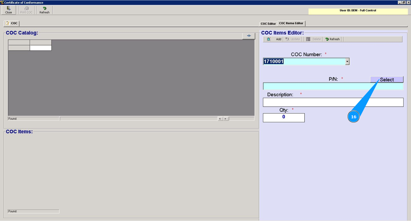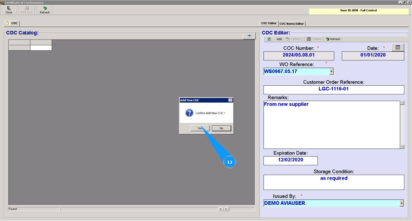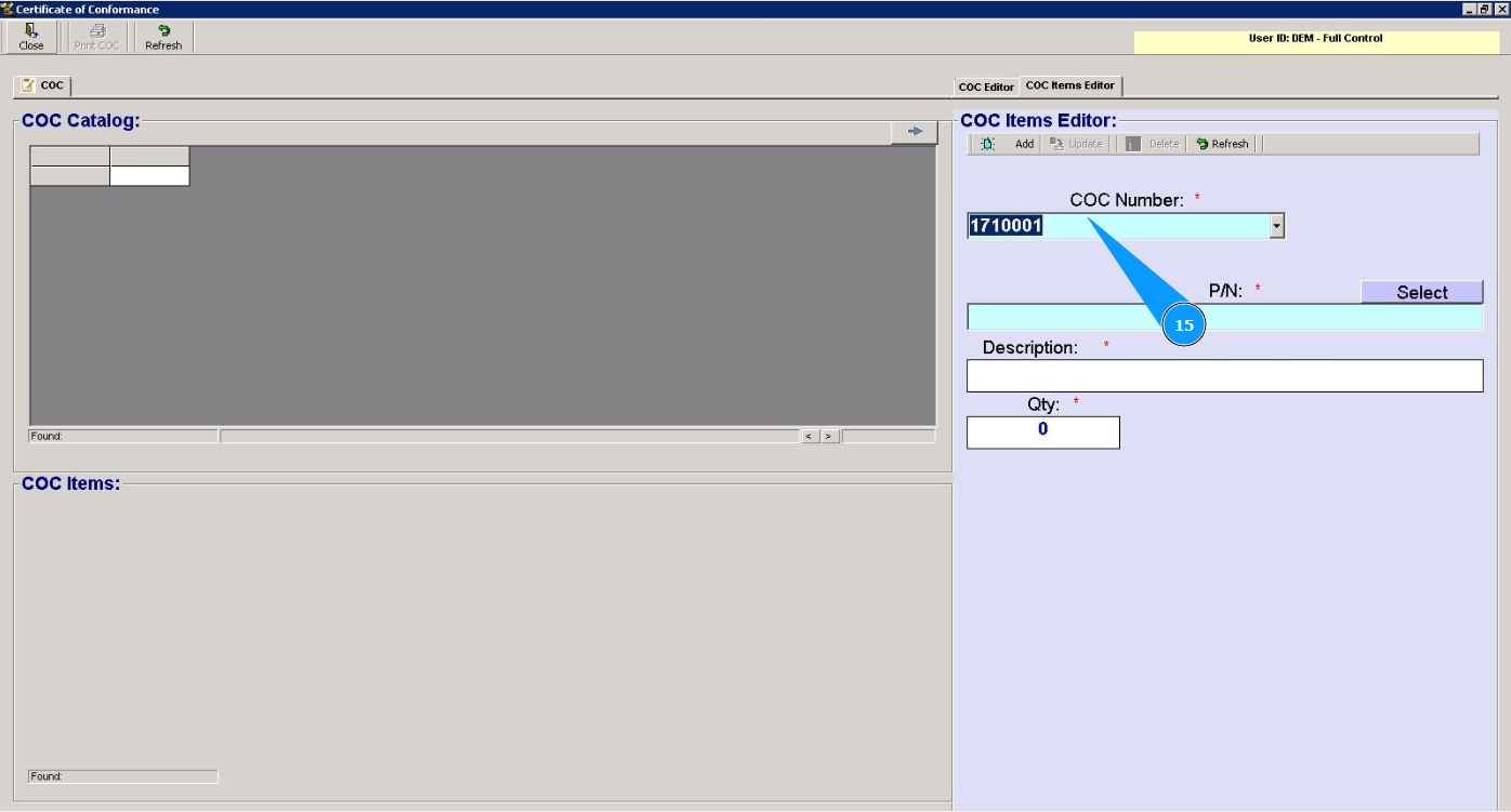 15. Select the certificate number from the dropdown list in the field "CoC Number".
