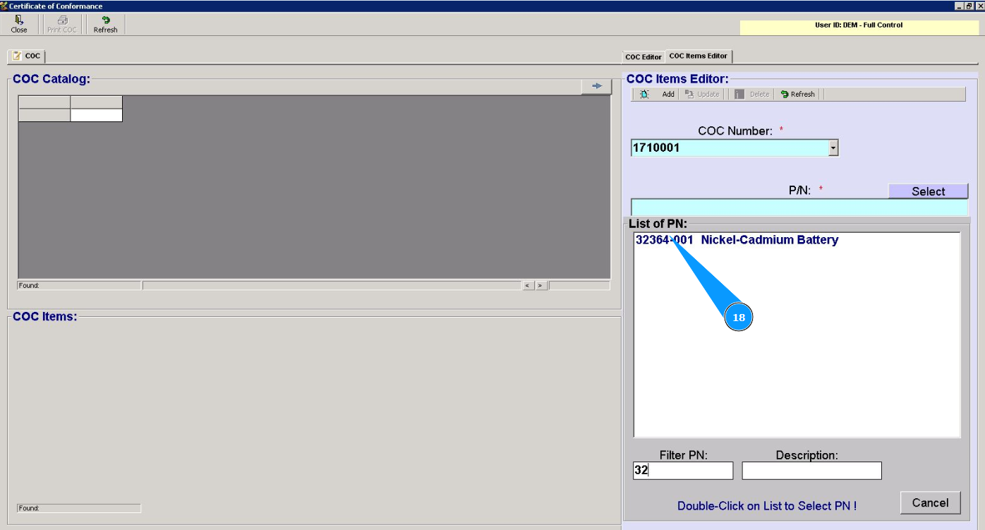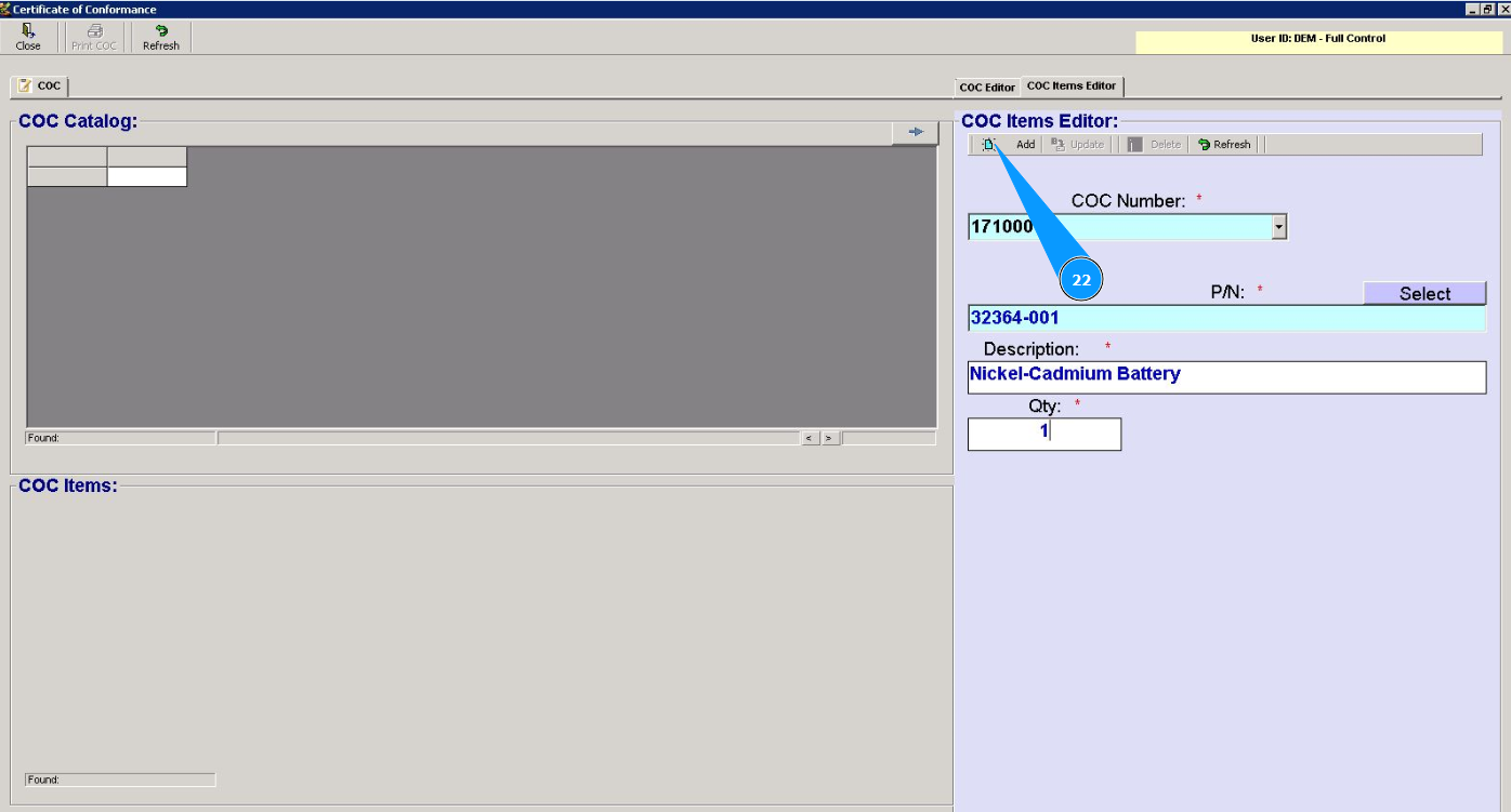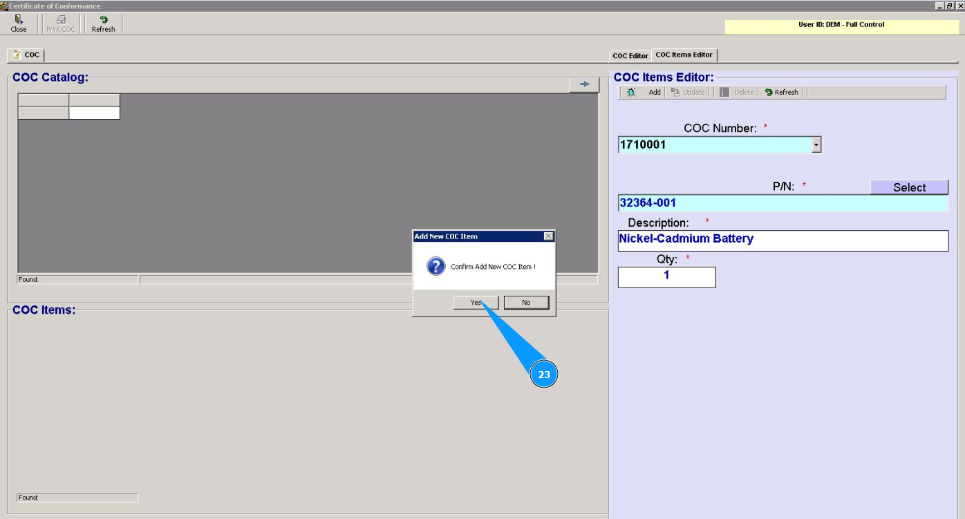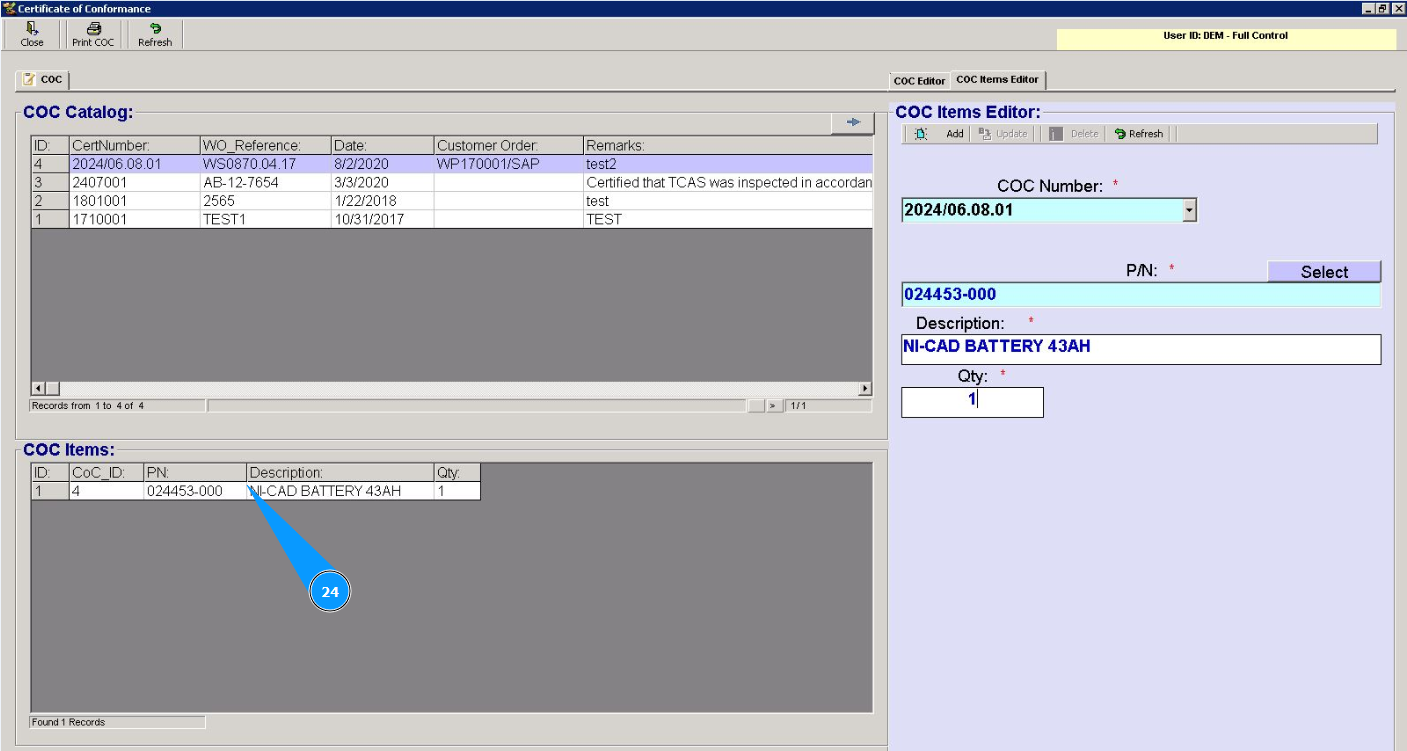 24. Check that the component is displayed in the list of the window "CoC Items".