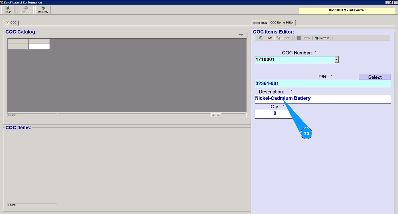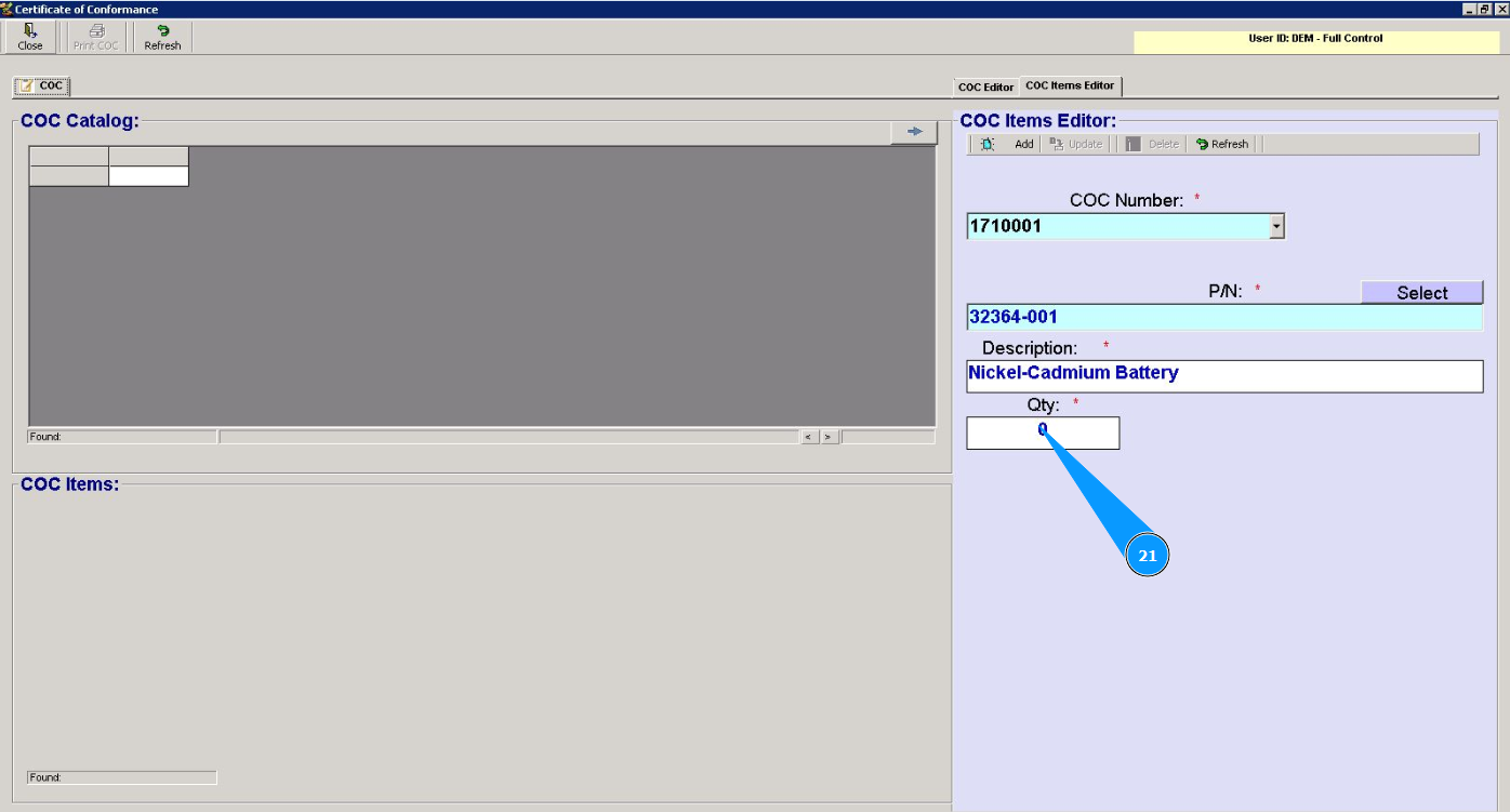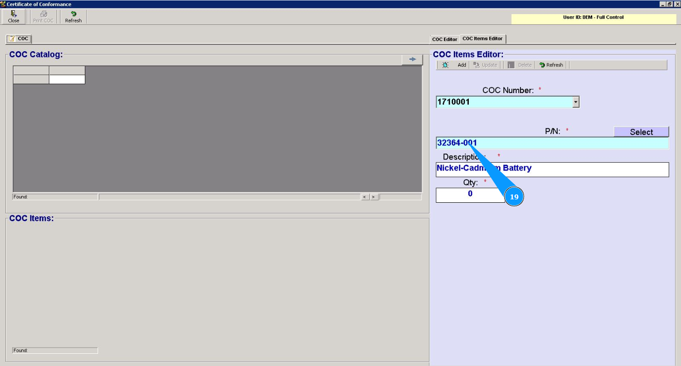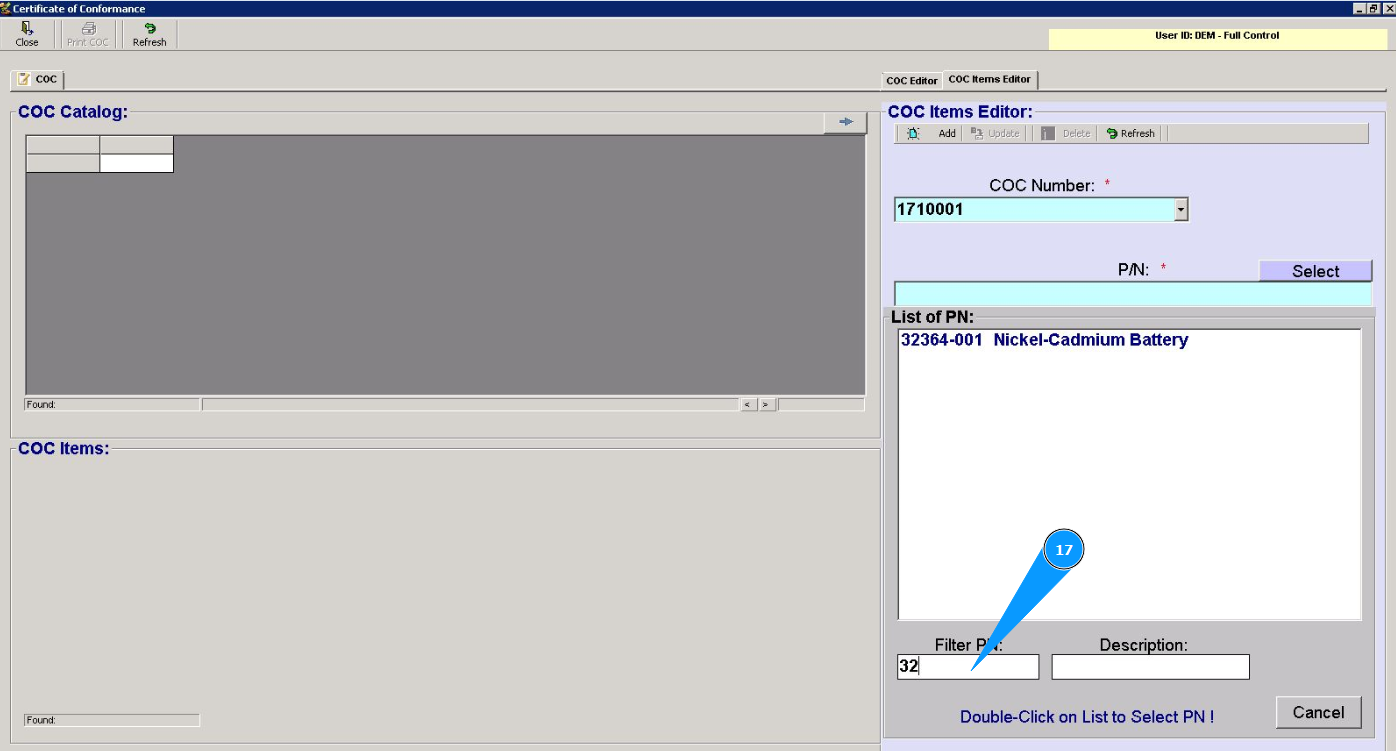 24. Check that the component is displayed in the list of the window "CoC Items".
