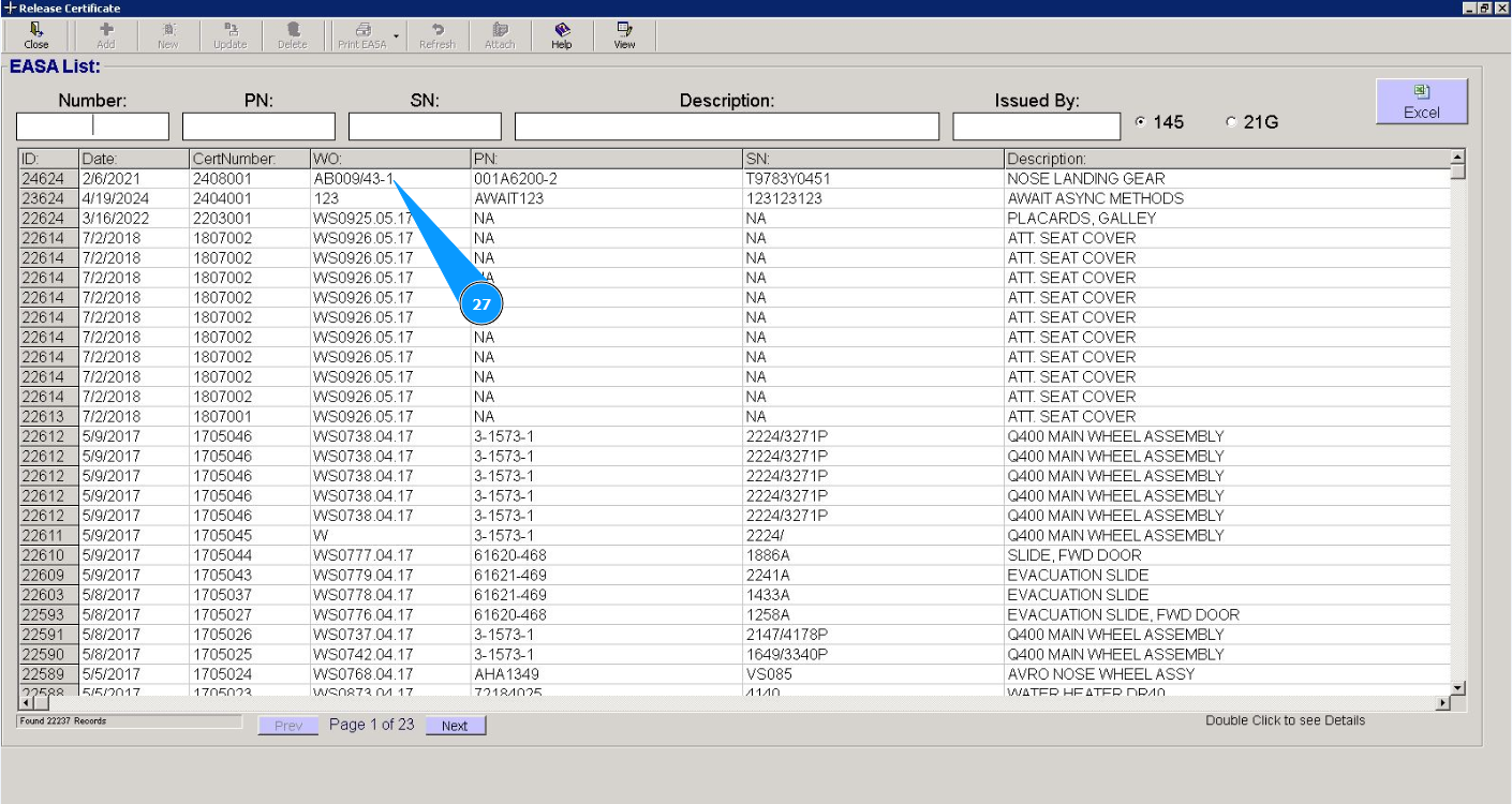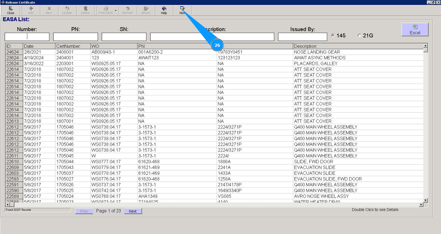 27. The component and its certificate will be at the top of the list in the window "EASA List".