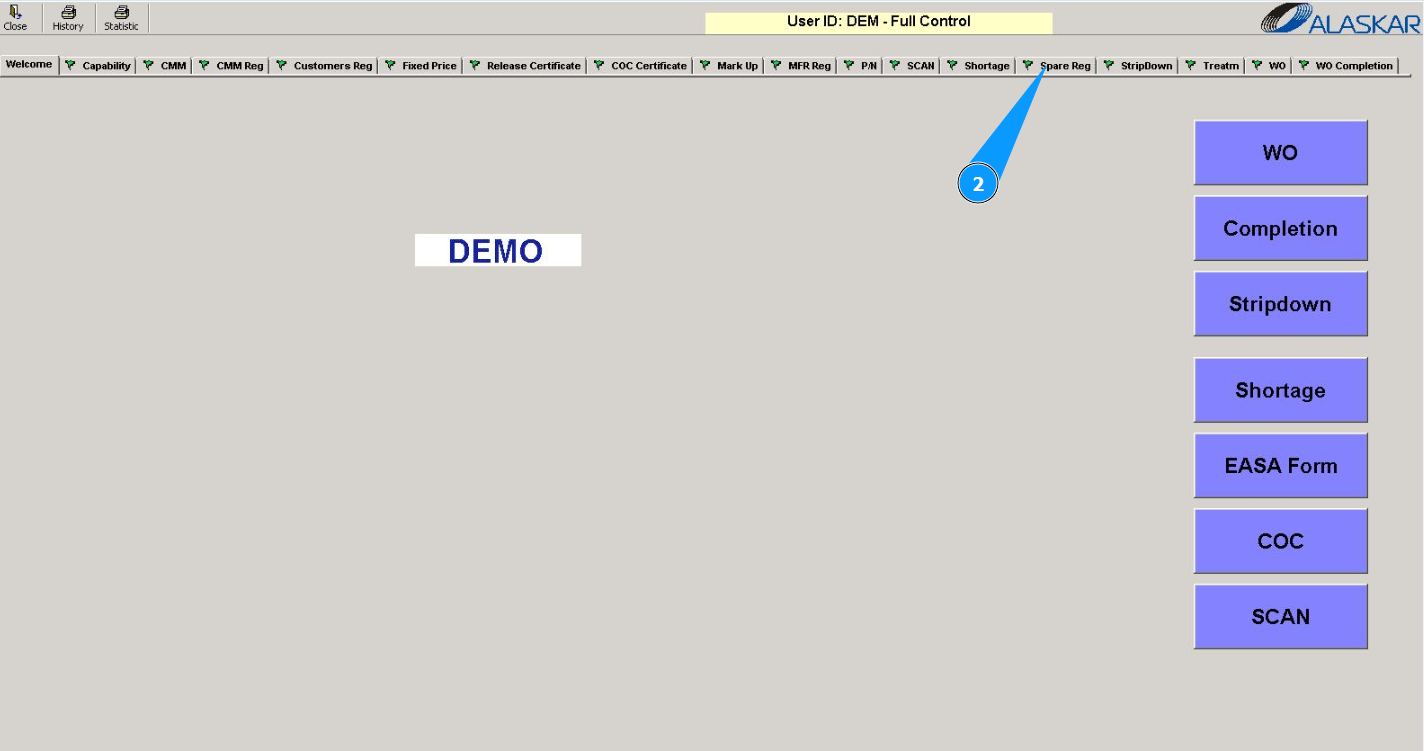 7. From the dropdown list, select the part number of the required spare part in the field "Spare PN". Note: The description of the part number will be entered automatically in the field "Spare PN Description".