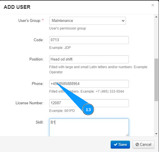 13. При необходимости, внесите телефон нового пользователя в поле "Phone".