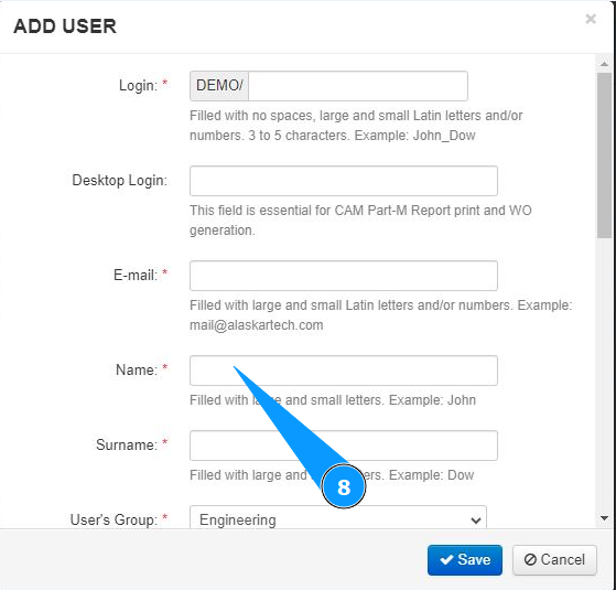 6. При необходимости, внесите логин входа на рабочий стол нового пользователя (в соответствии с политикой вашей компании) в поле "Desktop Login".